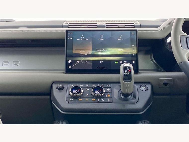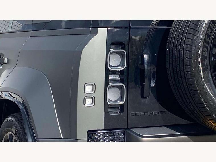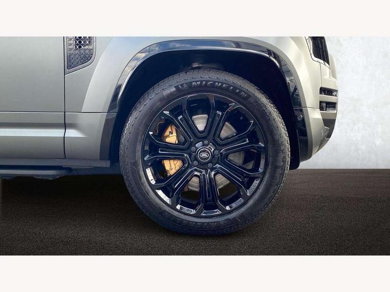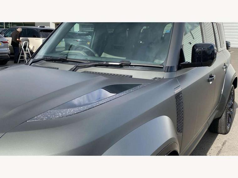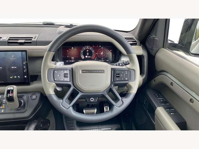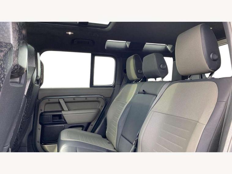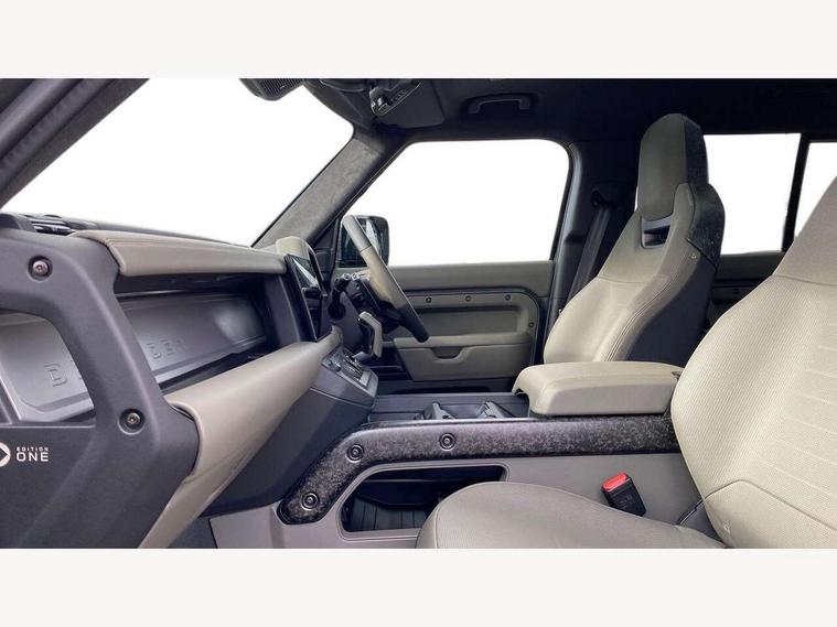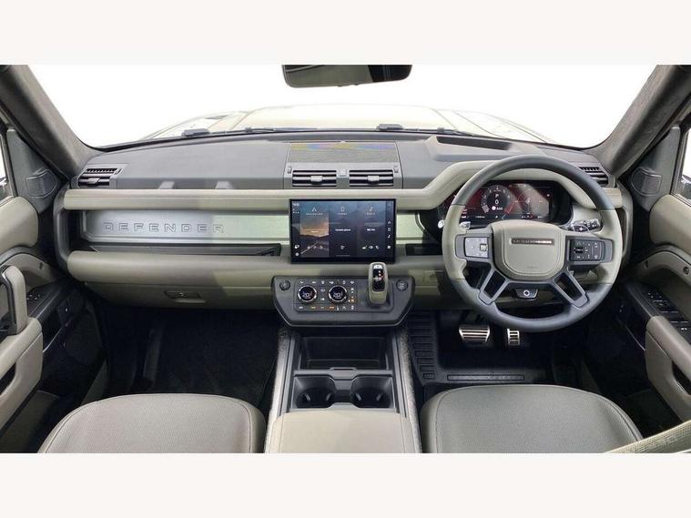 1 x USB-C (power only) & 1 x USB-C (power & data) in Row 1, 2 x USB-C in Row 2, 11.4" touchscreen, 360 degree parking aid, 3D Surround Camera with 360 View, 180 Rear View, Front Traffic Detection, Forward Vehicle Guidance, Tow Hitch Assist and clear sight Ground View, Adaptive cruise control, Android Auto, Apple CarPlay, Blind spot assist, Bluetooth system, Brake pad wear indicator, Clear exit monitor, Configurable programs, Connected navigation pro, Driver condition monitor, Electric power assisted steering (EPAS), Garage door opener (Homelink), Head up Display, Interactive driver display, Lane keep assist, Push button start, Rear collision monitor, Rear traffic monitor, Traffic sign recognition with adaptive speed limiter, Trip computer, Wade Sensing, Wireless device charging, 6D Dynamics, 8 speed automatic transmission, All terrain progress control, All wheel drive system, Electronic active differential with brake torque vectoring, Terrain Response 2 with dynamic program, Twin speed transfer box, DAB Radio (Digital Audio Broadcasting), Meridian 700w surround sound audio system with 15 speakers, Pivi pro connected, Advanced tow assist, Automatic headlight levelling, Automatic headlights, Black contrast roof, Black contrast tail door, ClearSight interior rear view mirror, Darkened LED tail lights, Electric heated/power fold door mirrors with approach lights and auto dimming driver side, Electric windows with one touch open/close and anti-trap, Follow me home lighting, Front fog lights, Graphite front undershield, Headlamp power wash, Heated rear window with timer, Heated washer jets, Heated windscreen, Illuminated metal treadplates with brand name script, LED 3rd brake light, Matrix LED headlights with signature DRL, Octa badge, Phosphor bronze exposed rear recovery eyes, Privacy glass, Puddle lights, Rain sensing windscreen wipers, Rear fog lights, Rear side wing doors, Rear wiper, Satin black exhaust finisher, Side hinged tailgate, Signature graphic (with interior storage), Sliding panoramic roof, Solar attenuating windscreen, Trailer stability assist, 12V power socket in loadspace, 14 way heated and cooled electric memory performance front seats, 3 seat bench in 2nd row, 40:20:40 folding, heated rear seats with centre armrest, Air quality sensor, Alpine lights, Body and soul seat, Bright metal pedals, Cabin Air Purification plus, Chopped carbon fibre seatback, Configurable cabin lighting, Domestic plug socket, Durable rubber cabin flooring, Durable rubber loadspace flooring, Edge illuminated paddle shifters, Electric cabin pre conditioning, Electric reach + rake adjustable steering column, Electrically adjustable steering column, Footwell lights, Front centre console refrigerator compartment, Front head restraints, Front passenger isofix child seat attachment, Heated steering wheel, Loadspace cover, Loadspace Hook, Multifunction steering wheel, No flat load floor storage, Overhead stowage for sunglasses, Rear headrests, Rear ISOFIX, Rear reading lights, Signature carpet mats, Signature interior upgrade, Single front passenger seat, Soft close tail door, Standard seat configuration, Storage glovebox, Sunvisors with illuminated vanity mirrors, Three-zone Climate Control with Rear Cooling Assist, Twin front cupholders, Chopped carbon fibre exterior pack - Defender, Non-smoker package, Online pack with data plan - Defender, 5 x 3 point seatbelts, ABS, Brake hold function, Cornering brake control (CBC), Cross car beam in metallic grey powder coat brushed finish, Customer configurable autolock, Driver and passenger airbags, DSC - Dynamic Stability Control, EBD - Electronic brakeforce distribution, Electric parking brake (EPB), Emergency brake assist, Emergency braking, ESP + traction control, Front airbags with passenger seat occupant detector, HDC - Hill descent control, Hill launch assist, Low traction launch, Phosphor bronze front brake calipers, Power operated child locks, Remote for (e-Call, Optimised assistance call, InControl app, Climate, beep and flash and door), RSC - Roll stability control, Seat belt reminder, TPMS (Tyre pressure monitoring system), Alarm, Immobiliser, Intrusion sensor, Keyless entry, Locking wheel nuts, Secure tracker pro, Chopped carbon fibre finisher,