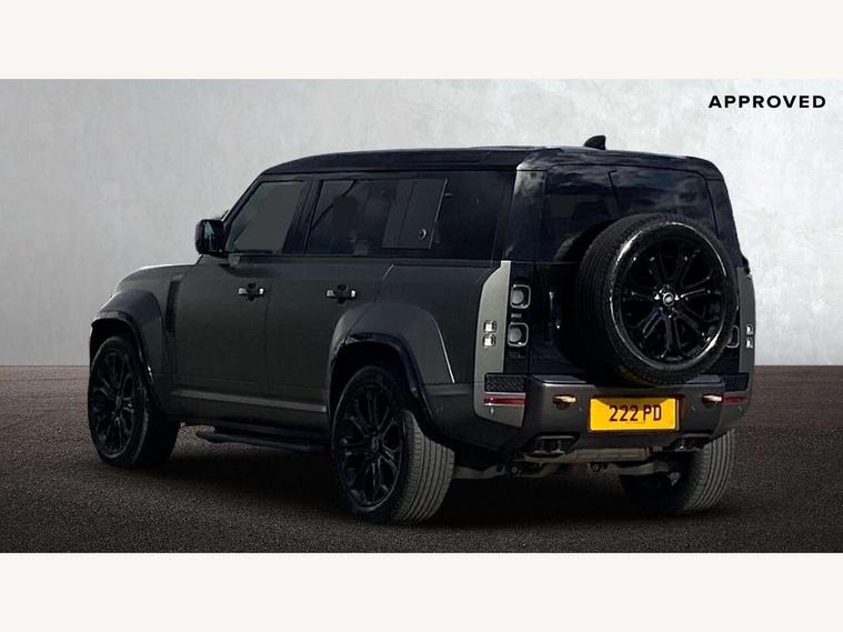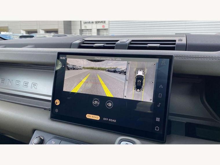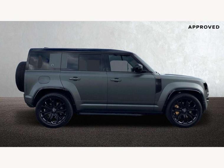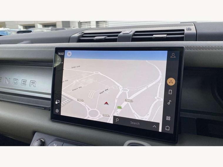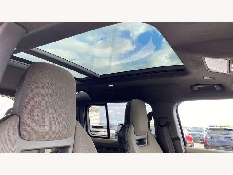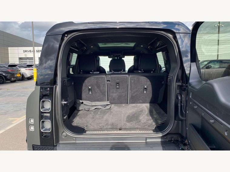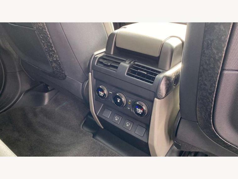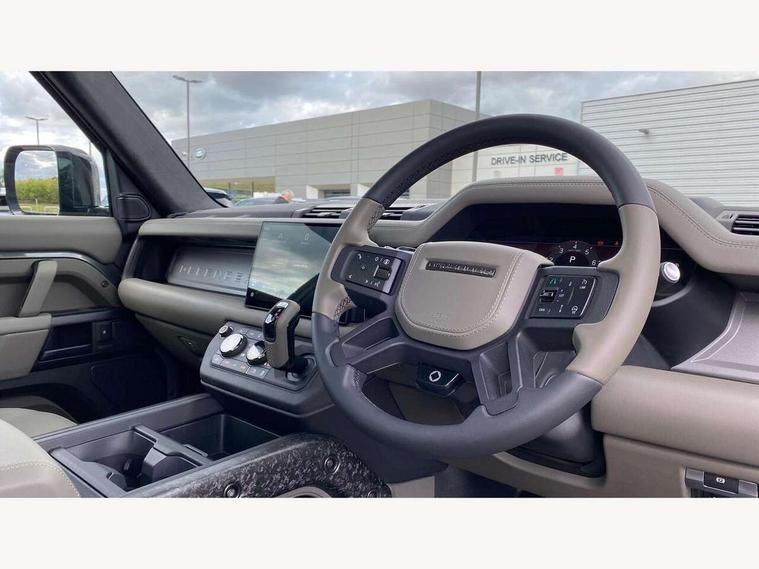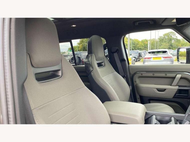 1 x USB-C (power only) & 1 x USB-C (power & data) in Row 1, 2 x USB-C in Row 2, 11.4" touchscreen, 360 degree parking aid, 3D Surround Camera with 360 View, 180 Rear View, Front Traffic Detection, Forward Vehicle Guidance, Tow Hitch Assist and clear sight Ground View, Adaptive cruise control, Android Auto, Apple CarPlay, Blind spot assist, Bluetooth system, Brake pad wear indicator, Clear exit monitor, Configurable programs, Connected navigation pro, Driver condition monitor, Electric power assisted steering (EPAS), Garage door opener (Homelink), Head up Display, Interactive driver display, Lane keep assist, Push button start, Rear collision monitor, Rear traffic monitor, Traffic sign recognition with adaptive speed limiter, Trip computer, Wade Sensing, Wireless device charging, 6D Dynamics, 8 speed automatic transmission, All terrain progress control, All wheel drive system, Electronic active differential with brake torque vectoring, Terrain Response 2 with dynamic program, Twin speed transfer box, DAB Radio (Digital Audio Broadcasting), Meridian 700w surround sound audio system with 15 speakers, Pivi pro connected, Advanced tow assist, Automatic headlight levelling, Automatic headlights, Black contrast roof, Black contrast tail door, ClearSight interior rear view mirror, Darkened LED tail lights, Electric heated/power fold door mirrors with approach lights and auto dimming driver side, Electric windows with one touch open/close and anti-trap, Follow me home lighting, Front fog lights, Graphite front undershield, Headlamp power wash, Heated rear window with timer, Heated washer jets, Heated windscreen, Illuminated metal treadplates with brand name script, LED 3rd brake light, Matrix LED headlights with signature DRL, Octa badge, Phosphor bronze exposed rear recovery eyes, Privacy glass, Puddle lights, Rain sensing windscreen wipers, Rear fog lights, Rear side wing doors, Rear wiper, Satin black exhaust finisher, Side hinged tailgate, Signature graphic (with interior storage), Sliding panoramic roof, Solar attenuating windscreen, Trailer stability assist, 12V power socket in loadspace, 14 way heated and cooled electric memory performance front seats, 3 seat bench in 2nd row, 40:20:40 folding, heated rear seats with centre armrest, Air quality sensor, Alpine lights, Body and soul seat, Bright metal pedals, Cabin Air Purification plus, Chopped carbon fibre seatback, Configurable cabin lighting, Domestic plug socket, Durable rubber cabin flooring, Durable rubber loadspace flooring, Edge illuminated paddle shifters, Electric cabin pre conditioning, Electric reach + rake adjustable steering column, Electrically adjustable steering column, Footwell lights, Front centre console refrigerator compartment, Front head restraints, Front passenger isofix child seat attachment, Heated steering wheel, Loadspace cover, Loadspace Hook, Multifunction steering wheel, No flat load floor storage, Overhead stowage for sunglasses, Rear headrests, Rear ISOFIX, Rear reading lights, Signature carpet mats, Signature interior upgrade, Single front passenger seat, Soft close tail door, Standard seat configuration, Storage glovebox, Sunvisors with illuminated vanity mirrors, Three-zone Climate Control with Rear Cooling Assist, Twin front cupholders, Chopped carbon fibre exterior pack - Defender, Non-smoker package, Online pack with data plan - Defender, 5 x 3 point seatbelts, ABS, Brake hold function, Cornering brake control (CBC), Cross car beam in metallic grey powder coat brushed finish, Customer configurable autolock, Driver and passenger airbags, DSC - Dynamic Stability Control, EBD - Electronic brakeforce distribution, Electric parking brake (EPB), Emergency brake assist, Emergency braking, ESP + traction control, Front airbags with passenger seat occupant detector, HDC - Hill descent control, Hill launch assist, Low traction launch, Phosphor bronze front brake calipers, Power operated child locks, Remote for (e-Call, Optimised assistance call, InControl app, Climate, beep and flash and door), RSC - Roll stability control, Seat belt reminder, TPMS (Tyre pressure monitoring system), Alarm, Immobiliser, Intrusion sensor, Keyless entry, Locking wheel nuts, Secure tracker pro, Chopped carbon fibre finisher,