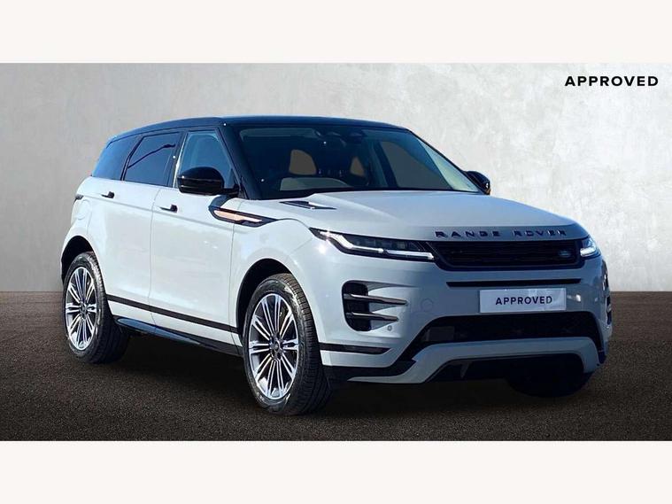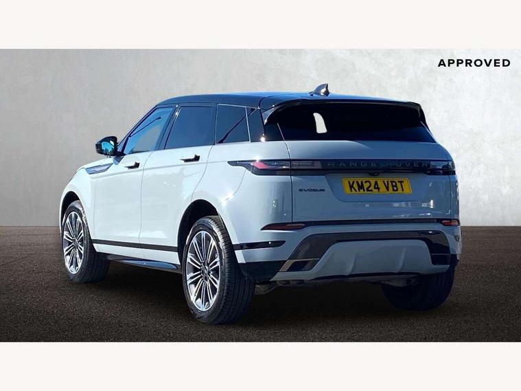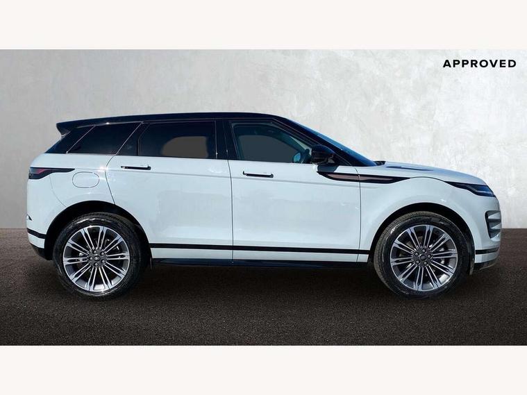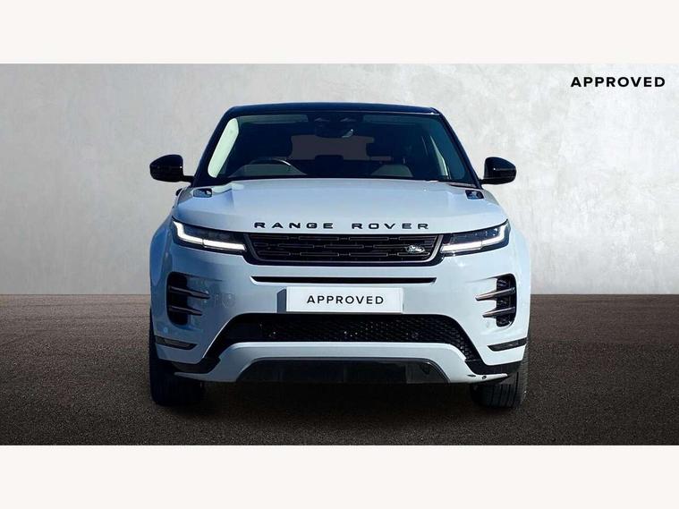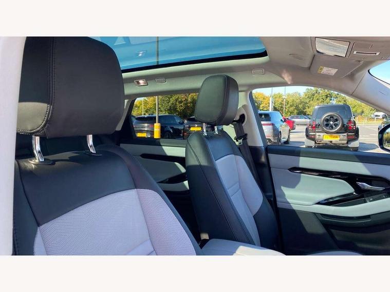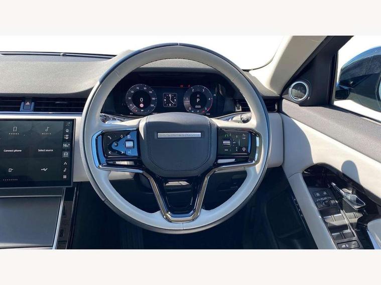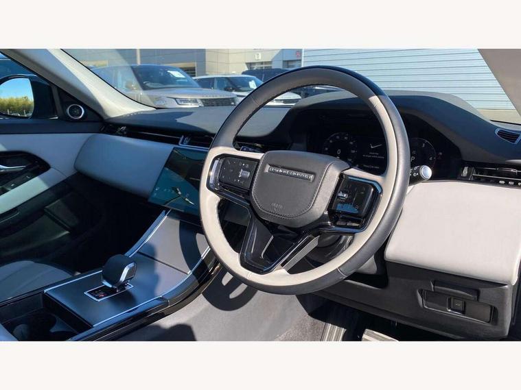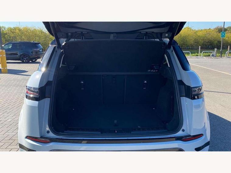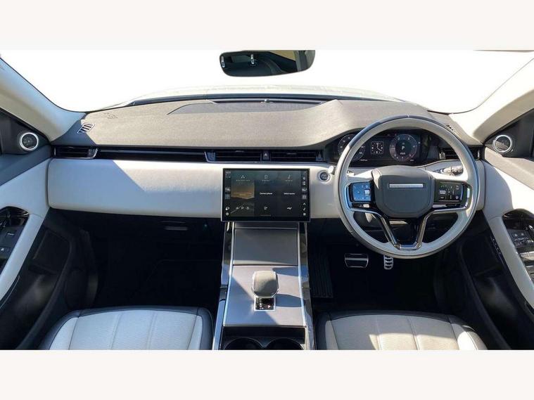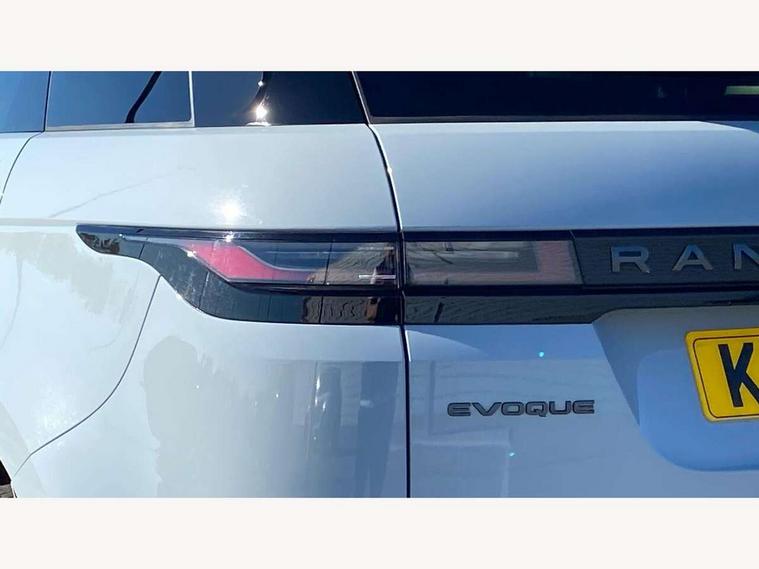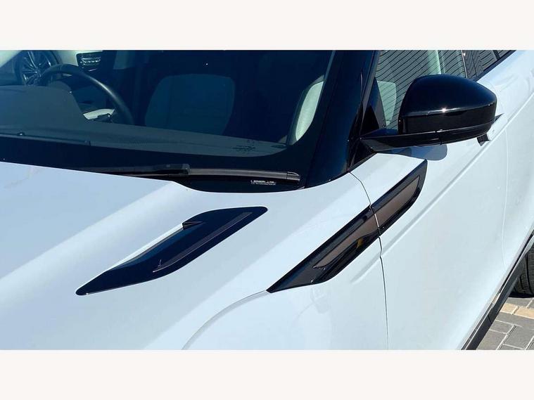 11.4" touch screen, Adaptive cruise control, Android Auto, Apple car play, Blind spot assist, Bluetooth connectivity, Brake pad wear indicator warning light, Driver condition monitor, eCall emergency system, Eco mode, Electronic power assisted steering (EPAS), Front and rear parking aid, InControl remote, Interactive driver display, Land Rover InControl apps, Lane keep assist, Pivi pro connected includes diamond pivi variant, smart settings, connected navigation pro, nuance speech licence, Powered tailgate/boot lid, Rear collision monitor, Rear traffic monitor, Traffic sign recognition with adaptive speed limiter, Voice control system, Wireless device charging, All terrain progress control, Diesel exhaust fluid (DEF) large tank, Efficient Driveline, Large fuel tank, Passive suspension, Terrain Response 2, Digital Audio Broadcast radio-DAB, Steering wheel mounted controls, Acoustic laminated windscreen, Auto headlights, Automatic headlight levelling, Electric windows with one touch open/close and anti trap, Flush deployable exterior door handles, Front and rear recovery eyes, Front fog lights, Heated rear window with timer, Heated washer jets, Heated windscreen, Pixel LED headlights with signature DRL and LED tail Lights, Power fold, auto-dimming, heated door mirrors with approach lights and auto dimming driver side, Rain sensing windscreen wipers, Rear animated directional indicators, Rear fog lights, Rear side wing doors, Rear wiper, Side repeater indicators in mirror, Tailgate spoiler, Third brake light, Winter wiper park position, 14 way driver memory electric front seats with 2 way manual headrests + 4 way lumbar support, bolsters, 40:20:40 split folding rear seats with centre headrest and armrest, Ambient interior lighting, Bright metal pedals, Carpet mats, Chrome tread plates with range rover branding Includes stainless steel loadspace scuff plate with etched graphic, Customer configurable single point entry, Electrically adjustable steering column with memory function and easy entry/exit, Front and rear cupholders, Heated steering wheel, Isofix system on outer rear seats, Overhead lighting console, Overhead stowage for sunglasses, Passive front head restraints, Rear air vents, Rear head restraints, Satin chrome gearshift paddles, Single passenger seat, Sunvisors with illuminated vanity mirrors, Twin sliding front centre armrest, Online pack with data plan - Evoque, Power socket pack 2 - Evoque, 3 rear 3 point seatbelts, Anti-lock braking system (ABS), Brake hold function, Customer configurable autolock, DSC - Dynamic Stability Control, Electronic brake force distribution, Electronic parking brake, Electronic traction control, Emergency braking, Front and rear seatbelt reminder, Hill descent control, Hill launch assist, Low traction launch, Occupant protection assist, Passenger seat occupant detector, Power operated child locks, Roll stability control, Six airbags - Driver and passenger airbags/driver knee airbag/front side airbag and curtain airbags, Torque vectoring brake, Tyre pressure monitoring system, Alarm, Immobiliser, Intrusion sensor, Keyless entry, Locking wheel nuts,
