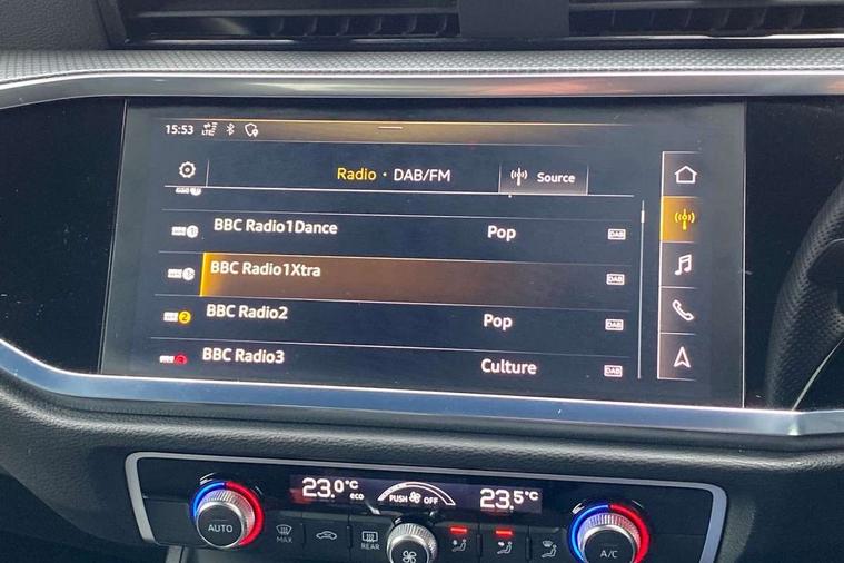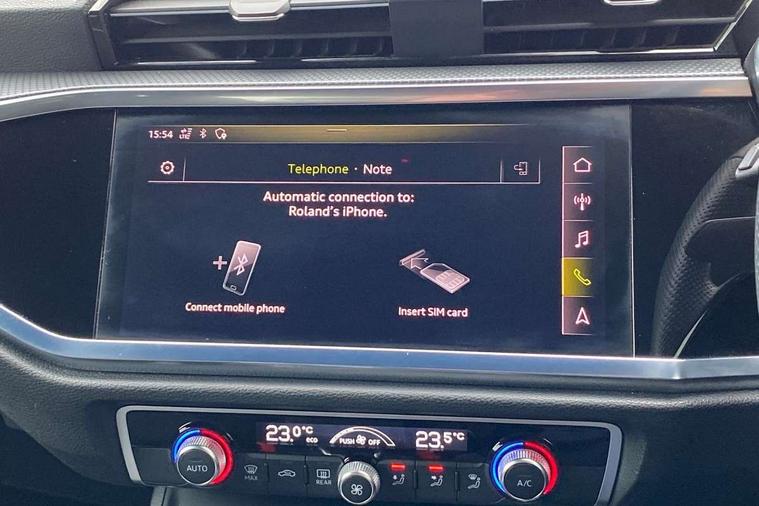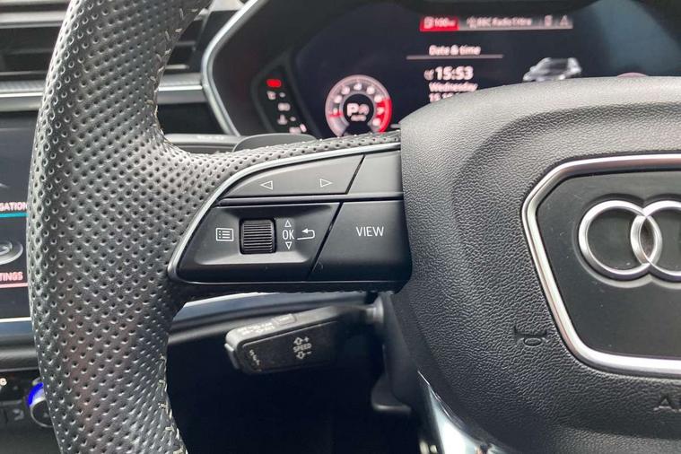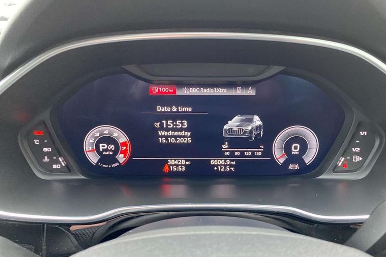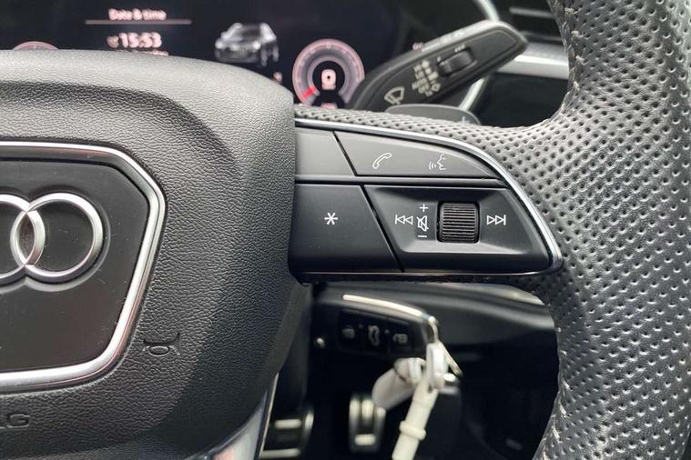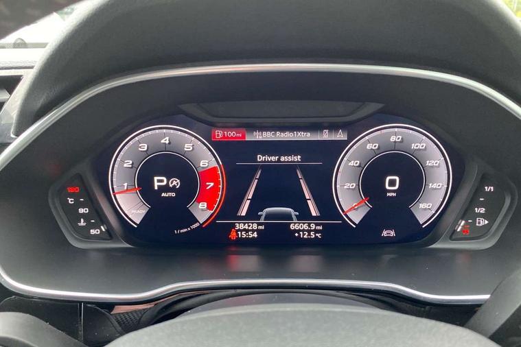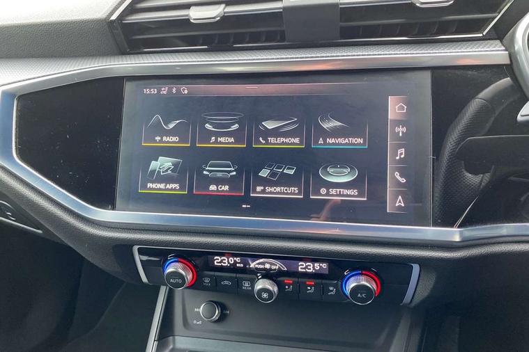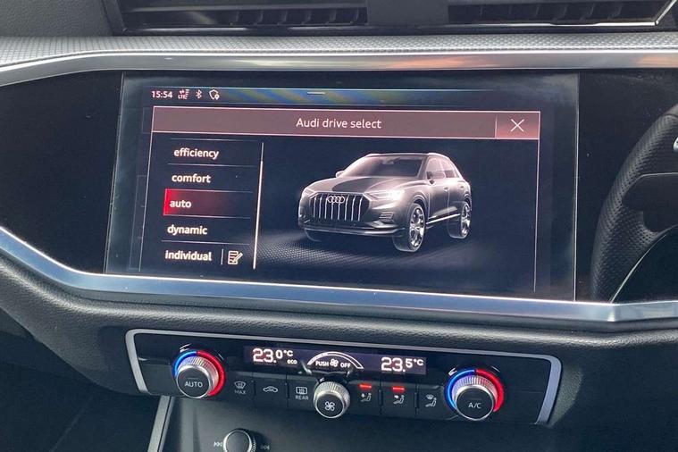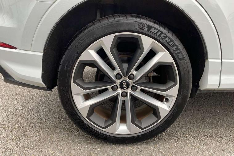 Audi connect safety and service (e-call), Audi drive select, Audi lane departure warning, Audi side assist, Audi smartphone interface, Bluetooth interface, Camera based traffic sign recognition, MMI navigation plus with MMI touch, Power opening/closing tailgate, Progressive steering, Rear parking sensors, Service interval indicator, Stop/start system, Voice control system, Sports suspension, 1 x USB type C and 1 USB type A charging points, 6 speakers, DAB digital radio module, Acoustic windscreen, Aluminium roof rails, Aluminium window trim, Auto dimming rear view mirror, Body coloured bumpers, Diffuser in matt Platinum grey, Electrically adjustable and heated door mirrors with integrated LED side indicators, Front and rear electric windows, Front fog lights, Front side air inlets in matt platinum grey, Front spoiler blade in matt platinum grey, Grille vertical bars in aluminium silver/Matt, High gloss black finish B and C pillars, LED headlights with LED daytime running lights and dynamic rear indicator, LED rear lights, Privacy glass, Rain and light sensors, Rear diffuser strip in matt titanium black, S Line badge on wings, S Line front and rear bumpers, Side skirt insert in matt Platinium grey, Titanium black radiator grille, 12V socket in rear centre console, 40:20:40 split folding rear bench seat, Adjustable rear seat bench/backrest with centre armrest and cupholder, Aluminium door sill trims, Black cloth headlining, Dual zone climate control, Front and rear black floor mats with contrast stitching in rock grey, Front and rear headrests, Front centre armrest with storage compartment and angle adjustment, Illuminated door sill trims with S logo, ISOFIX child seat mounting and Top Tether with front passenger airbag deactivation, Manual front seats with height adjustment, Perforated leather gearknob, Stainless steel luggage compartment sill finisher, Stainless steel pedals, Non smoking pack - Q3, 3x3 point rear seatbelts, 6 airbags - Driver, front passenger, curtain and side windows, Audi pre-sense front with pedestrain and cyclist recognition, Electrically operated child locks on rear doors, Electromechanical parking brake, Electronic stabilisation control including ABS, ASR and EDL, Hill hold assist, Pre sense basic, Seatbelt monitoring, Tyre pressure warning, Warning triangle and first aid kit, Anti theft alarm, Anti theft wheel bolts, Remote central locking, Dark matt brushed aluminium inlay, MMI touch colour display in gloss black with aluminium surround, Tool kit, Tyre repair kit,