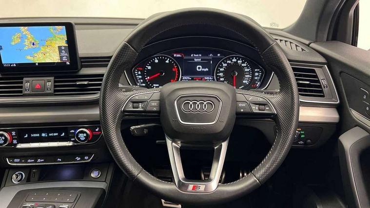 Audi connect, Audi drive select, Audi smartphone interface, Driver information centre with colour display in instrument panel, Electric power steering, Power tailgate, Remote electric boot opening/closing, SD card based MMI navigation, Service interval indicator, Voice control system, Diesel particulate filter, 2 USB ports, Audi sound system, Auxiliary input socket, CD player, DAB Digital radio, MMI radio plus with 7" colour MMI screen and MMI controller, Acoustic windscreen, Aluminium roof rails, Aluminium sill plates, Auto dimming rear view mirror, Black high gloss front air inlet in matt aluminium effect, Body colour bumpers, Body colour door mirrors, Body colour rear diffuser insert, Chrome exhaust tailpipe, Electric headlight adjustment, Electrically adjustable and heated door mirrors, Front and rear electric windows, Front fog lights, Headlight range control, Headlight washers, Honeycomb side air inlet in titan black, Light and rain sensor for auto activation of lights and windscreen wipers, Loading sill protector in stainless steel, Privacy glass with front acoustic glazing, Rear diffuser strip in matt aluminium silver, Rear spoiler, Rear wiper, S Line side skirts, Selenite silver underbody guard, Twilight grey matt radiator grille with matt aluminium horizontal chrome struts, 3 rear headrests, 3 zone climate control, 4 way electric lumbar support for driver and front passenger, 40:20:40 split folding rear bench seat, Black cloth headlining, Front centre armrest with 12v socket, Front sports seats, Front/rear floor mats, Height adjustable driver's seat, Height adjustable front head restraints, Illuminated door sills, Isofix front passenger and rear seat preparation, Jack and tool kit, Load compartment cover, Luggage compartment carpet, Matt selenite silver door inserts, Perforated leather gearknob, Reach + rake adjustable steering column, Removable luggage compartment floor, Removable net partition, Roller blind loadspace cover, Stainless steel pedals, Sunvisors with vanity mirrors, Non Smokers pack, 3 point seatbelts on all seats, ABS, Curtain airbags, Driver and passenger airbags, Driver and passenger side airbags, Electromechanical parking brake, ESC with ASR, ESP, First aid kit, Front passenger airbag deactivation, Hill descent control, Seat belt force limiter, Seatbelt warning lamp, Traction control, Tyre pressure monitor, Warning triangle, Keyless Go access/ignition system, Locking wheel bolts, Remote central locking, Thatcham category 1 alarm + immobiliser, Contrast stitching,