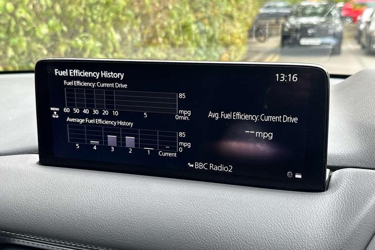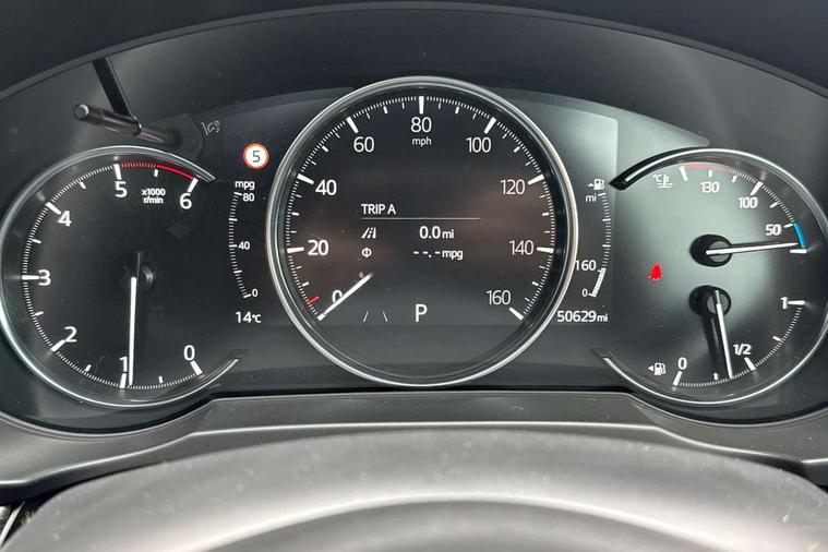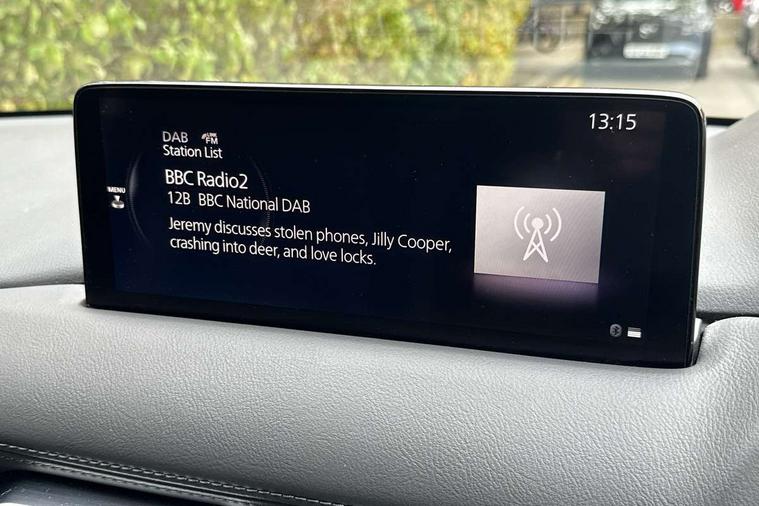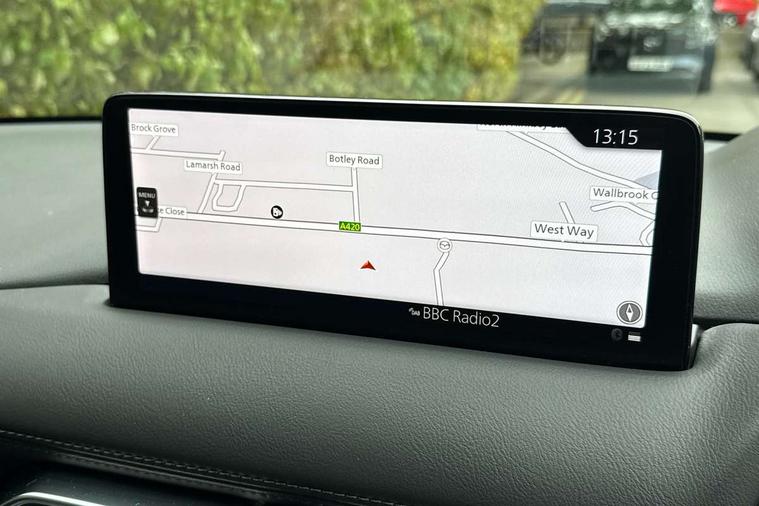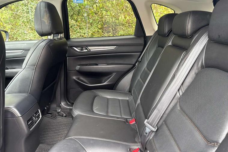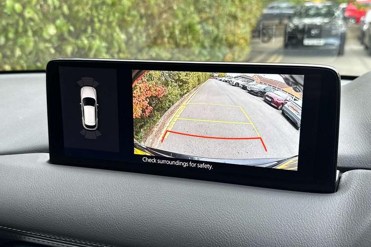 10.25" display with Mazda Connect infotainment, 7" colour TFT display, Apple car play/Android Auto, Blind spot monitoring with rear cross traffic alert, Bluetooth connectivity with voice control, Collision prevention assist, Connected services, Cruising Traffic Support, Electric power steering, Emergency stop signalling system, Engine start/stop button, Forward collision warning, Front and rear parking sensors, Integrated navigation system, Intelligent speed assist, Lane departure warning system, Lane keep assist, Qi wireless phone charging, Radar cruise control with Stop and Go, Reversing camera, Service indicator, Traffic sign recognition (TSR), Trip computer, Windscreen projected colour active driving display (HUD) with memory, i-stop, 2 USB sockets in rear, 2x USB sockets in front, AM/FM radio, Bluetooth audio streaming, Bose premium sound system with 10 speakers, DAB Digital radio, Multimedia Commander including separate volume dial, Steering wheel mounted audio controls, Adaptive front lighting system, Auto dimming rear view mirror, Automatic headlights, Black inlay dashboard panel, Body colour door mirrors, Body colour roof spoiler, Body coloured front and rear black lower bumper mouldings, Bright finish signature wing, Coming/leaving home lighting function, Door mirror integrated indicators, Dusk sensitive headlamps, Electric front/rear windows with one touch auto up/down, Front grille in gloss black finish, Gloss black B and C pillars garnish, High beam assist, Intermittent rear wash/wipe, LED auto levelling, LED daytime running lights, LED front fog lights, LED Headlights, LED third brake light, Power folding and heated door mirrors, Power tilt/slide sunroof, Privacy glass (rear side windows only), Rain sensing front wipers, Rear side wing doors, Satin black side mouldings, Scuff plates, Shark fin antenna, Signature LED rear combination lights, Single chrome tailpipes, Vinyl with wood grain metal inlay door trim panel, Windscreen wiper de-icer, 12v electrical power outlet, 3 seat bench in 2nd row, 3 stage heated front seats, 40:20:40 Karakuri fold-flat seat system, 6 way electric adjustable passenger seat, 8 way electric driver seat with lumbar support + memory, Cargo room flat floor board with waterproof undertray, Driver seat power slide, recline and height adjustment, Driver, Front passenger and two rear grab handles with coat hooks, Driver/passenger front seatback pockets, Driver/passenger sunvisors + illuminated vanity mirrors (drivers with ticket holder), Dual zone climate control, Folding centre armrest with 2 cup holders, Front and rear door pockets, Front centre storage with two cupholders, Front passenger seat power slide, recline and height adjustment, Gear shift indicator, Heated steering wheel, Humidity sensor, Illuminated glovebox, Interior dome light with integral spotlight, ISOFIX child seat anchorage points attached on outer rear seats, Karakuri tonneau cover, Leather upholstery, Leather wrapped steering wheel and gear knob, Light roof lining, Luggage compartment LED lighting, Luggage compartment power outlet, Paddle shifts, Rear air vents, Rear headrests, Rear seat recline, Roof mounted sunglasses holder, Single front passenger seat, Three height adjustable head restraints, Tilt/height adjustable steering wheel, White interior LED illumination lighting, 3 point front seatbelts with pre-tensioners, 3 rear 3 point seatbelts, ABS, Advanced Smart City Brake Support - SCBS, Child locks on rear doors, Driver and front passenger side airbags, DSTC-Dynamic Stability and Traction Control, Dual front airbags, Electronic brake force distribution, Electronic parking brake with auto hold, ESP, Front and rear curtain airbags, Front passenger airbag deactivation, G-Vectoring control, Hill hold assist, Seatbelt reminder front and rear, Single stage passenger airbags, Smart brake support with forward obstruction warning, Tyre pressure monitoring system, Automatic door locking when moving off, Deadlock, Immobiliser, Power door locks, Remote central locking, Smart keyless entry, Thatcham Cat.1 alarm, 19" diamond cut black alloy wheels, Tyre repair kit,