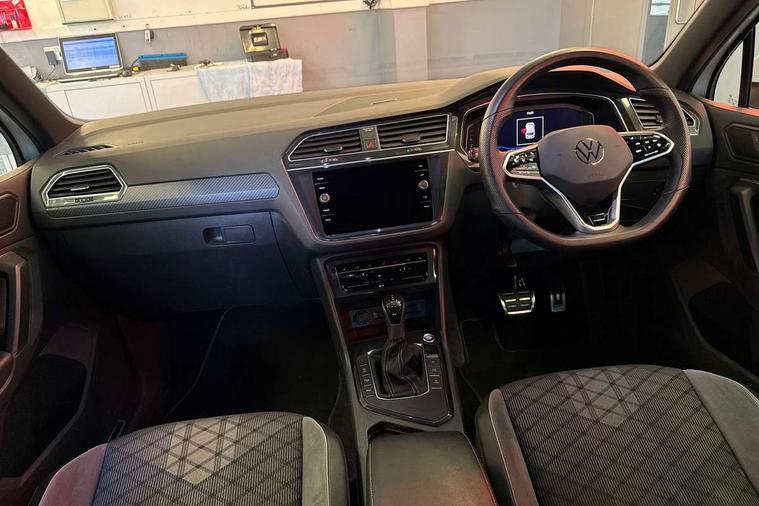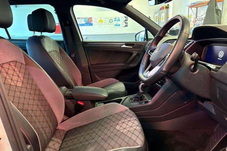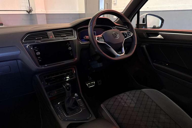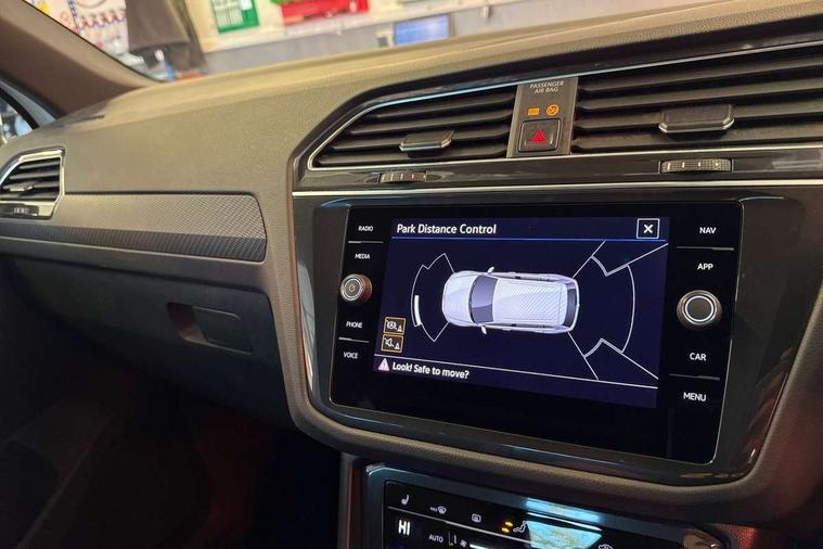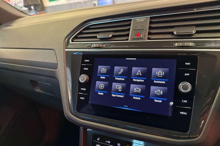 Adaptive cruise control ACC stop and go including speed limiter, App-Connect incl. App-Connect Wireless for Apple CarPlay and Android Auto, Bluetooth phone integration system, Distance control assist, Driver alert system, Driver profile selection, Dynamic road sign display, eCall emergency call system, Electromechanical speed sensitive power steering, Engine start/stop button, Lane keeping system Lane Assist, Lights on warning, Multifunction front facing camera, Outside temperature display, Premium multifunction display with multi colour display, Remote control boot opening, Rev counter, Revision / skills operating concept travel assistant, Service interval indicator, Speed limit display, Start/stop system with regenerative braking, Trip computer, Warning sound and light for doors and tailgate open, Battery regeneration during braking, Diesel particulate filter, Misfuel prevention device for diesel engine, Selective Catalytic Reduction, XDS electronic differential lock for improved traction and handling, 4 X 20 watt output, 8 Speakers, Diversity antenna for FM reception, Radio, SD card slot, Simultaneous pairing of 2 compatible mobile devices, SMS functionality - read, compose and send SMS messages using touch-screen display, Title and cover art display, USB C ports, Auto dimming interior rear view mirror, Automatic headlight control system, Body colour door handles, Chrome moldings on the side windows, Coming/leaving home lighting function, Dynamic headlight range control, Front and rear electric windows, Heated rear window, High level 3rd brake light, Laminated safety glass windshield, heat and sound insulating, LED headlamps with LED separate daytime running light and dynamic cornering light, LED rear combination lamps, LED rear number plate lights, License plate carrier in front and rear, Poor weather light and cornering light, R Line body kit, R Line side sills, Rain sensor windscreen wipers, Rear exhaust tailpipe, Rear fog lamp, Rear side wing doors, Rear spoiler in R style, Rear windscreen washer and wiper with interval delay, Side and rear windows in heat insulating glass, Trailer Stability Programme, Unique R Line badging, Windscreen wipers/ intermittent wipe + 4 position delay, 12V outlet in center console rear and in luggage compartment, 12V outlet in front and tray, 2 cup holders in front, 2 LED front reading lights, 2 LED rear reading lights, 3 bench rear seats in 2nd row, 3 rear headrests, 4 load lashing points, 40:20:40 split folding rear seats, Air Care Climatronic 3 zone automatic climate control with enhanced air filter and controls in the rear, Backrest release for left front seat, Black headlining, Brushed stainless steel pedals and footrest, Carpet mats in front and rear with decorative stitching in Gray, Climate control unit rear with touch function, Door and side trim panel in foam film, insert in leatherette, Front centre armrest, Front footwell illumination, Front seats head restraints (x-adjustment), Height adjustable front seats, Height/reach adjust steering wheel, Instrument lighting white adjustable panel illumination, Interior light with delay, Isofix Preparation 2 Rear child seats, Leather gear knob, Lockable cooled glovebox, Luggage compartment lighting, Luggage net, Rear bench seat asymetrically split folding, longitudinally movable and folding with load-through hatch and center armrest, Remote unlocking for rear seat backrest, Removable luggage cover, Removable rear headrests, Safety optimised front head restraints, Single front passenger seat, Sliding/reclining rear seats, Standard rear seat release, Storage compartment in driver's door, Storage compartment in passenger's door, Storage compartment in rear doors, Storage compartments in luggage area left and right, Storage tray on dashboard, Sun visors with illuminated vanity mirrors, Top front comfort seats, Variable boot floor, height adjustable and removable, Driver assistance pack plus - Tiguan DSG, 3 point seat belt for centre rear seats, 3 point seat belts with seat belt pretensioners for the outer rear seats, Active bonnet, Curtain airbags for front and rear passengers, Driver/Front Passenger airbags, Drivers knee airbag, Electronic parking brake with auto hold, Electronic Stability Control with driver steering recommendation, ABS, ASR, EDL, EDTC and trailer stabilization, Front assist with autonomous emergency braking (for Adaptive Cruise Control ACC up to 130 mph), Front disc brakes, Front passenger airbag deactivation, Front side airbags, Height adjustable front 3 point seatbelts + pretensioners, Hill hold control, Manual child proof rear door locks, Pedestrian monitoring system, Power assisted brakes, Proactive passenger protection system in combination with front assist, Rear disc brakes, Rigid safety cell with front and rear crumple zones, Two tone horn, Warning sound and light for front seat belts if unfastened, Anti theft alarm system with interior monitoring, backup horn and towing protection, Anti theft wheel bolts, Electronic engine immobiliser, Tool kit,