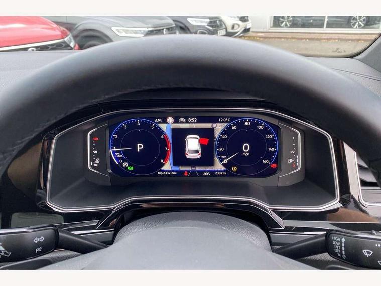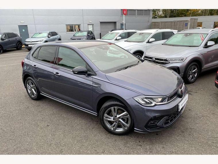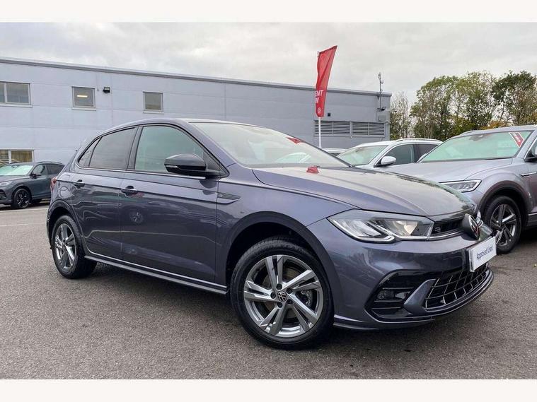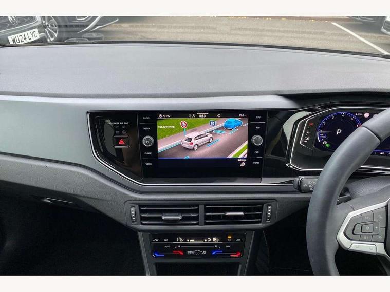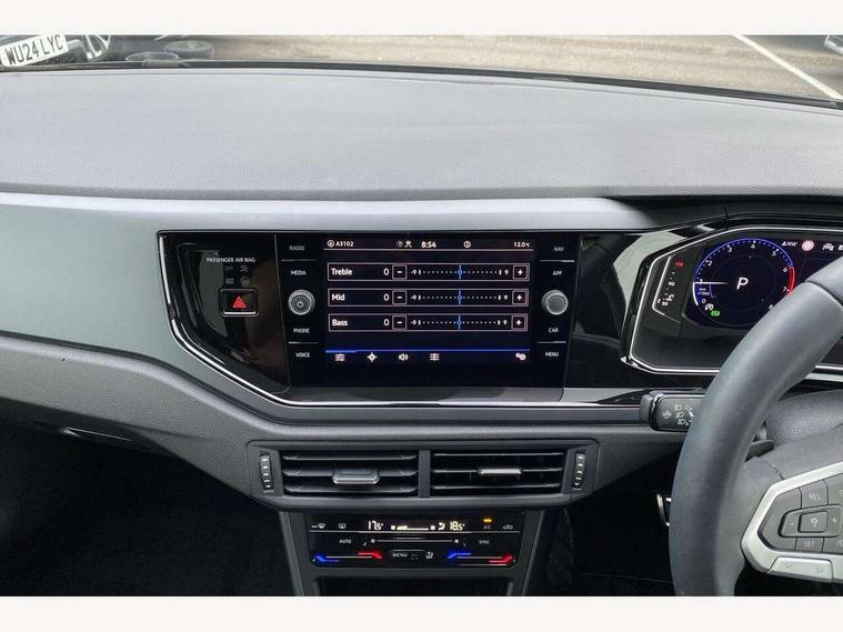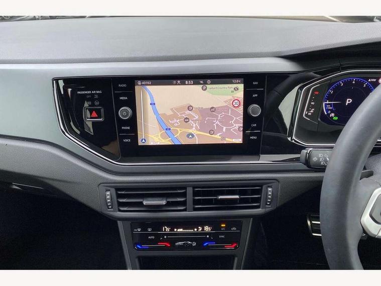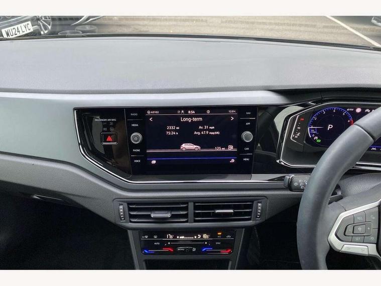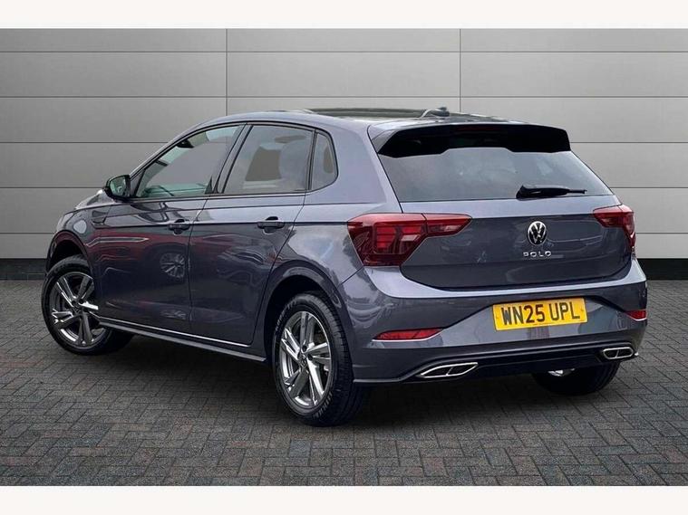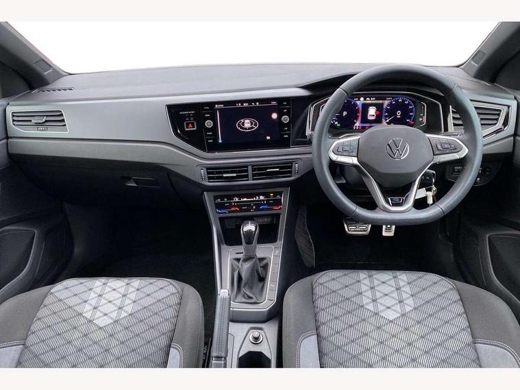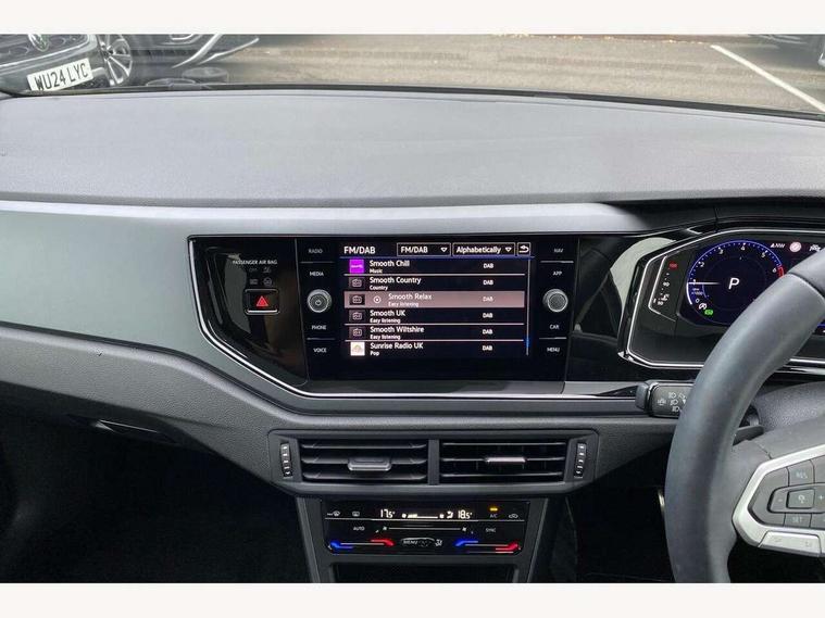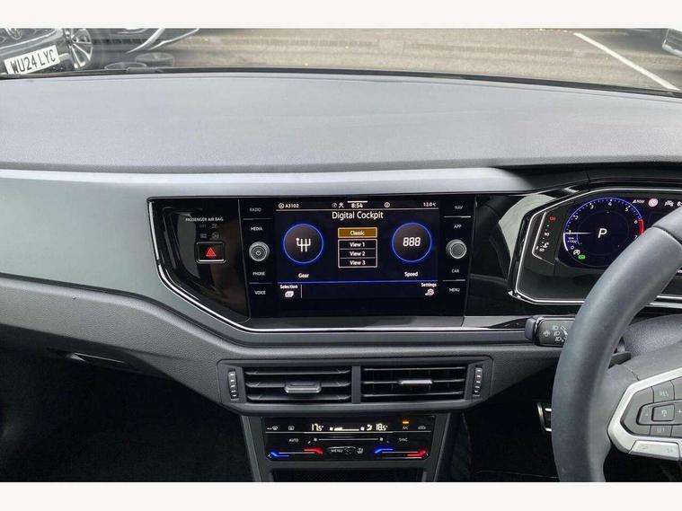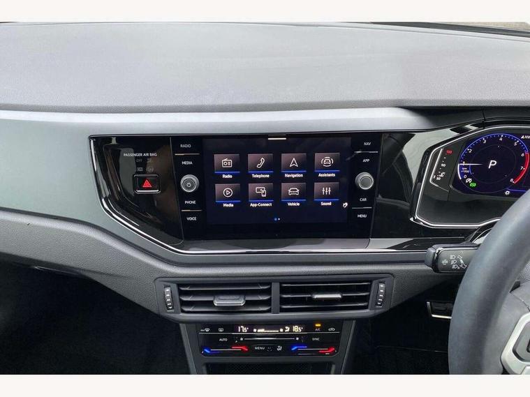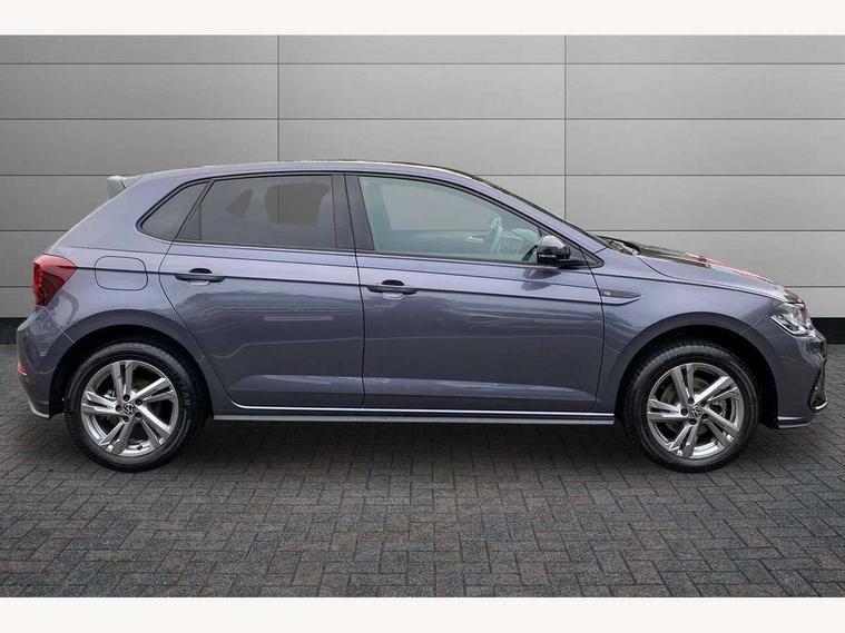 Adaptive cruise control with follow-to-stop and speed limiter, Advanced driver attention and drowsiness monitor, Bluetooth mobile phone interface, Digital Cockpit Pro with 10.25" Display, Dynamic road sign display, Emergency call service, Multifunction camera, Power assisted speed sensitive steering, Preparation for We connect and We connect plus, Speedo and rev counter, electronic odometer, trip, service interval display and fuel gauge, Standard rear axle, Travel Assist - Lane keeping system and traffic jam assist, Travel assist including emergency assist, Trip computer, Warning signal and warning light for front and rear seatbelts not fastened, Washer fluid level indicator, Wireless app connect, Front wheel drive, Rear shock absorpion, Start-stop system with battery regeneration (recuperation - energy recovery during braking), DAB Digital radio, Diversity antenna for FM reception, Front and rear 6 speakers, Body colour bumpers, Body colour door handles, Electric front windows, Front scuff plates with R-Line logo, Heat insulating glass windscreen, Power folding adjustable/heated exterior mirrors and front passenger exterior mirror lowering function, Rear electric windows, Rear fog light, Rear side wing doors, Rear windscreen washer and wiper with interval delay, Third brake light, 12V power socket in centre console, 2 USB-C ports in the front, 2 USB-C charging sockets on the center console in the rear, 3 rear head restraints, 60/40 split folding rear seat and rear seat bench not split, Air care climatronic air conditoning system with active combination filter and 2-zone temperature control, Black roof lining, Carpet mats, front and rear, Chrome plated radiator grille inserts, air vent surrounds and light switch surrounds, Door and side trim panel, Driver and front passenger seat height adjustment, Driver/passenger sunvisors with illuminated vanity mirrors, Front centre armrest, Front footwell illumination, Front seat backrest storage pockets, Front sports comfort seats, Handbrake lever handle in leather, Headliner in recycled material, Isofix child seat preparation easy-fit (for two outer rear seats, and front passenger seat) compatible with I-size, Karoso artvelours cloth upholstery, Leather trimmed gear knob, LED interior light with switch off delay and dimmer, 2 reading lights front and rear, Luggage compartment cover, Luggage compartment floor, Luggage compartment lighting, Lumbar adjustment for front seats, Single front passenger seat, Stainless steel pedals, Standard pedal cluster, Three spoke leather wrapped multifunction steering wheel with shifting paddles, Light and sight pack - Polo R-Line/Black Edition, 3 point height adj front seatbelts + pretensioners, 3x3 point rear seatbelts, ABS, Driver and front passenger airbag with front passenger airbag deactivation, Drivers and front passengers safety optimised head restraints, ESC (Electronic stability control) + EDL (Electronic Differntial lock) and ASR (Traction control), Extended and predictive pedestrian/ cyclist protection, Front curtain and side airbags with center airbag, Front/rear disc brakes, Hill hold control, Manual child lock in rear doors, Single tone horn, Tyre pressure loss indicator, Alarm with interior protection, Anti-theft alarm system with interior monitoring, backup horn, and towing protection, Anti-theft wheel bolts, Electronic engine immobiliser, Chrome applications on rotary light, mirror adjustment, window regulator switches, outlet with frame in black, Dark grey anodised matt decorative inserts in dash and front door panels, 16" Coventry alloy wheels, Low rolling resistance tyres,