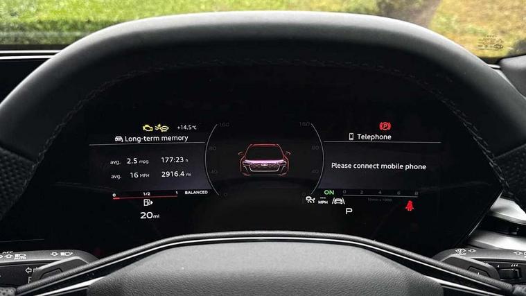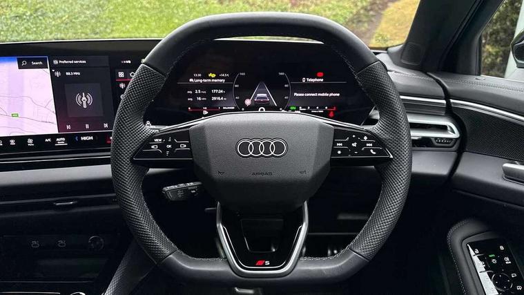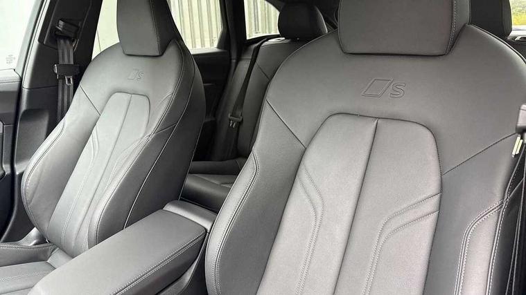 Adaptive cruise control, Advanced driver attention and fatigue montior, Audi application store, Audi assistant, Audi connect emergency call and service, Audi drive select, Audi smartphone interface, Audi virtual cockpit plus with 11.9" OLED colour display, Automatic start/stop system with coasting functionality, Camera based traffic sign recognition, Intersection assist, Lane departure warning, MMI navigation plus with high resolution 14.5" OLED touchscreen colour display, Park assist plus, Parking system plus with 360 display, Progressive steering with servotronic, Rear view camera, Swerve assist and turn assist, Traffic sign based speed limiter, Sports suspension lowered by 20mm, 2 USB-C ports in both the front and rear, Audi sound system impressive sound with 10 loudspeakers including centre speaker and subwoofer, 6-channel amplifier with a total output of 180 watts, DAB digital radio reception, Smartphone compartment with wireless charging, Aluminium roof rails, Aluminium window trims, Auto dimming rear view mirror, Body colour door mirrors, Door mirrors - electrically adjustable, heated, folding and auto dimming on both sides, Front and rear electric windows, Front door sill trims with aluminium inlays, illuminated with 'S' logo, High beam assist, LED headlights Plus incl. digital daytime running lights, turning light, all-weather light, motorway light, manouevring light and intersection light, LED rear lights pro incl. dynamic rear indicators and illuminated light strip with animated coming and leaving home function, LED third brake light, Privacy glass, Rear and side windows with heat insulating glass, Rear side wing doors, Rear wash/wipe, S Line badges on the front wings, S line bumpers, radiator grille and diffuser in phantom black and diffuser insert in matt anthracite, White rhombus logo projection light in exterior mirrors, Windscreen with acoustic glazing, 3 rear headrests, 3 seat rear bench, 3 spoke leather steering wheel with multi-function buttons with touch control, flattened on top and bottom, with S badging and contrast stitching, 3-zone automatic climate control, 40:20:40 split folding rear seat bench with centre armrest and cup holders, Comfort front centre armrest, Front and rear floor mats, Front seats with manual adjustment for position and 4-way electric lumbar support, Front sport seats with integrated headrest and S embossed logo, Headlining in black cloth, Heated front seats, i-Size child seat mounting on the front passenger side and outer rear seats, i-Size and top tether on the outer rear seats, Luggage compartment lid, electrically opening and closing, Manual steering column height and depth adjustment, Single front passenger seat, Stainless steel pedals and footrest, Steering wheel grips in perforated leather and shift paddles, Ambient lighting package plus - A5, 3x3 point rear seat belts, Driver airbag, Electric child safety locks, First aid kit with warning triangle and vests, Front emergency brake assist, Front passenger airbag, Front passenger airbag deactivation, Front side airbags with head airbag system and front interaction airbag, Hill hold assist, Seat belt monitoring with rear seat occupant reminder, Tyre pressure loss indicator, Anti theft alarm, Anti-theft wheel bolts, Keyless Go, Accent surfaces and control buttons in gloss black, Black dashboard with contrast stitching, Inlays in matt brushed aluminium with linear embossing, anthracite, Softwrap in leatherette with contrast stitching, Upper and lower interior elements in leatherette, Tyre repair kit,