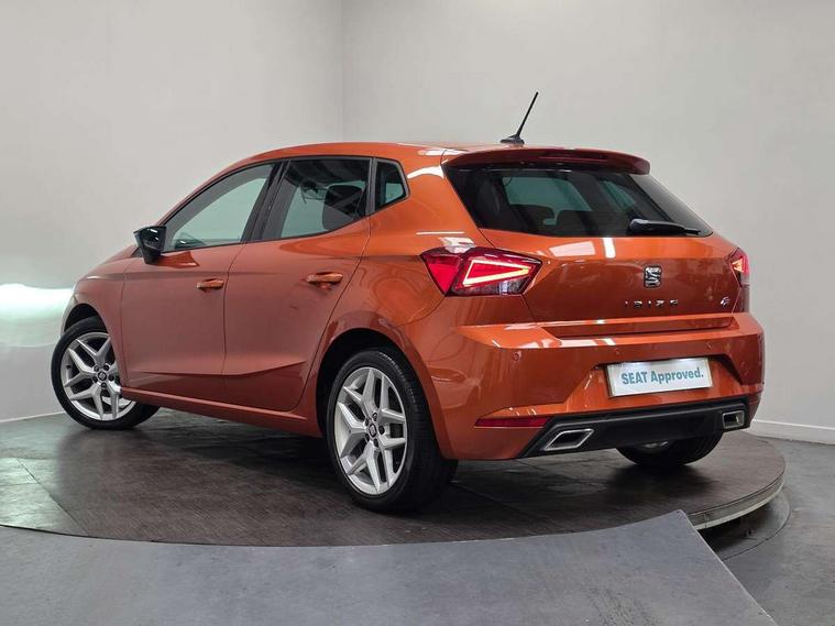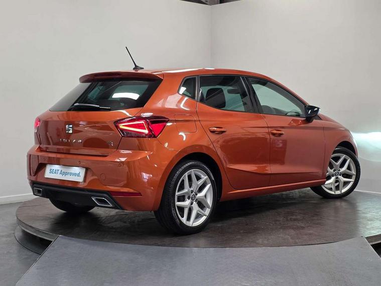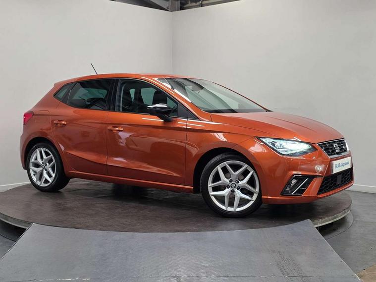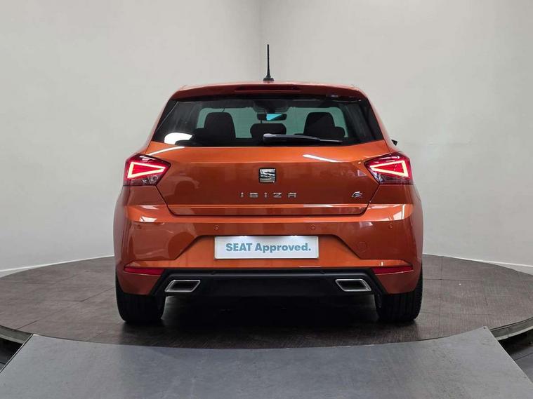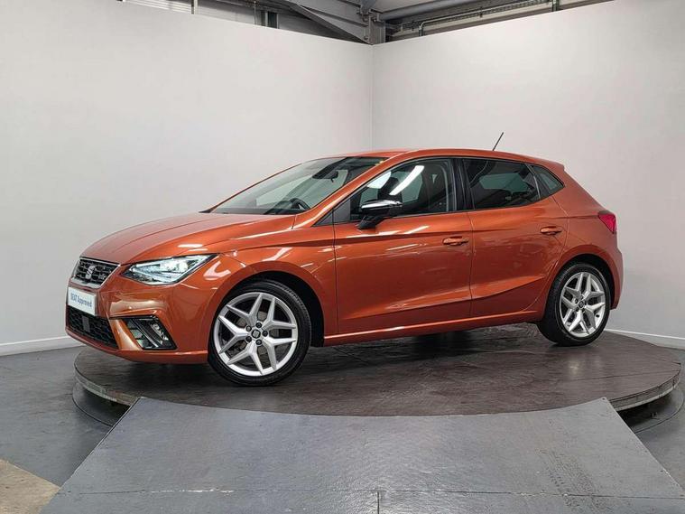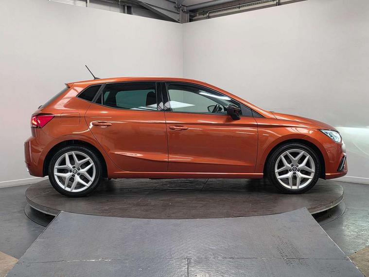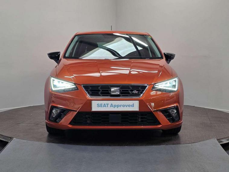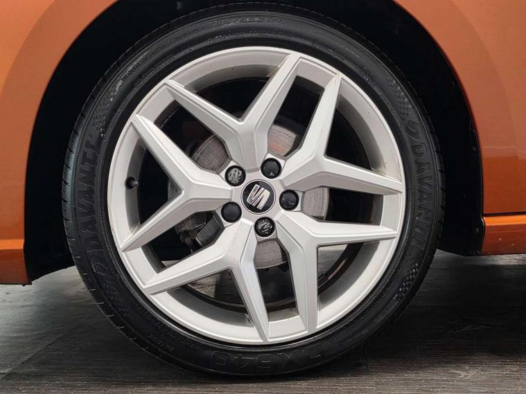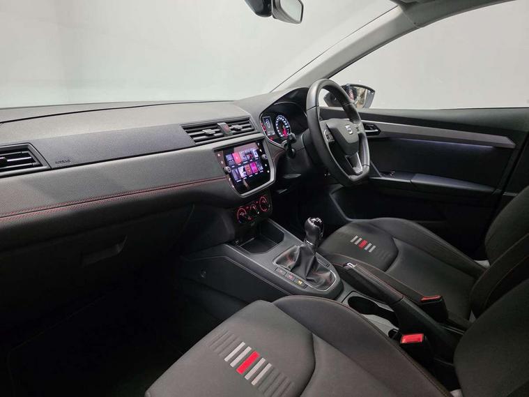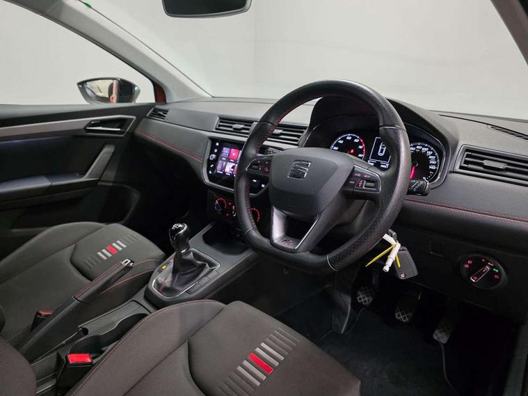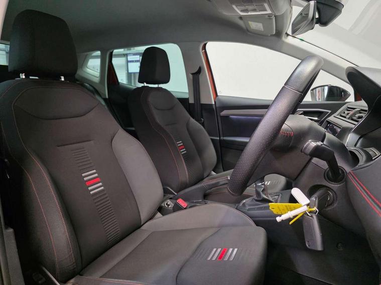 'Lights On' Reminder warning buzzer, Bluetooth Handsfree Phone Connection, Cruise control, Digital clock, Full Link Smartphone Integration with Mirror Link, Apple Car Play, Google Android Auto, Low fuel warning light, Outside temperature gauge, Satellite navigation system with 3D mapping, 8" touch screen, voice control and additional USB port, SEAT Drive profile, SEAT logo boot release, Speed sensitive power steering, Trip computer, Sports suspension, 6 speakers, Auxiliary input socket, CD player, Digital Audio Broadcast (DAB) Tuner, Radio/MP3 player, SD card slot, SEAT USB media cable, Steering wheel mounted controls, USB port, Anti theft roof antenna, Auto dimming rear view mirror, Automatic headlights, Automatic rain sensing wipers, Body colour bumpers, Body colour door handles, Brilliant black door mirrors, Chrome front grille frame, Chrome grille, Coming/leaving home lighting function, Cornering front fog lights, Dark tinted rear windows, Electric folding door mirrors, Electric front windows, Electric headlight adjustment, Electrically adjustable and heated door mirrors, Exclusive FR rear bumper, Full LED headlights, LED daytime running lights, LED tail lights, Rear fog lights, Twin exhaust pipes, 3 rear headrests, 60/40 split folding rear seat, Air conditioning, Door and steering wheel ice metal decorative inserts, Driver's sunvisor with ticket holder/vanity mirror, Dust/pollen filter, Flat bottomed perforated leather steering wheel with red stitching and FR logo, Front courtesy lights, Front cupholders x 2, Front reading lights, Gear shift indicator, Glovebox, Height adjustable driver's seat, Height adjustable front/rear head restraints, Height adjustable passenger seat, Height/reach adjust steering wheel, Illuminated boot, Instrument lighting with brightness control, Leather handbrake, Leather steering wheel and gear knob, Multi-colour ambient interior lighting, Nora cloth upholstery, Passenger sunvisor, Rear top tether child seat ISOFIX attachment, Sports seats, Full LED headlight pack - Ibiza, 3 point seatbelts on all 3 rear seats, ABS, Active front headrests, Child locks on rear doors, Curtain airbags, Driver/Front Passenger airbags, ESP+EBA, Front assist (AEB), Front passenger airbag deactivation, Front side airbags, Hill hold control, Multi-Collision braking, Seatbelt warning, Tiredness recognition system, Tyre pressure monitoring system, 2 folding remote keys with window open/close function, Electronic engine immobiliser, Locking wheel bolts, Remote central locking + deadlocks, Volumetric alarm with back up horn, Black dash trim, Leather dashboard, 17" Dynamic alloy wheels,