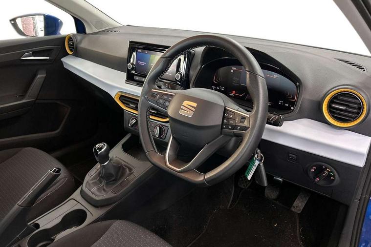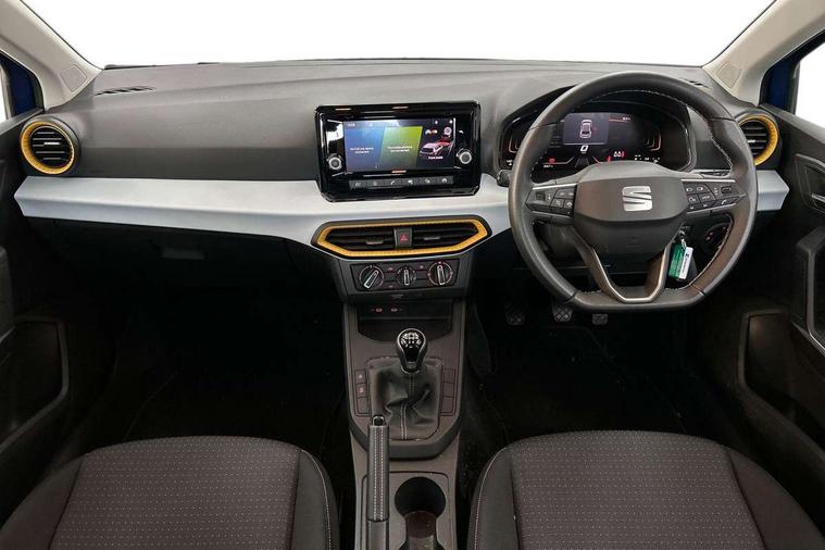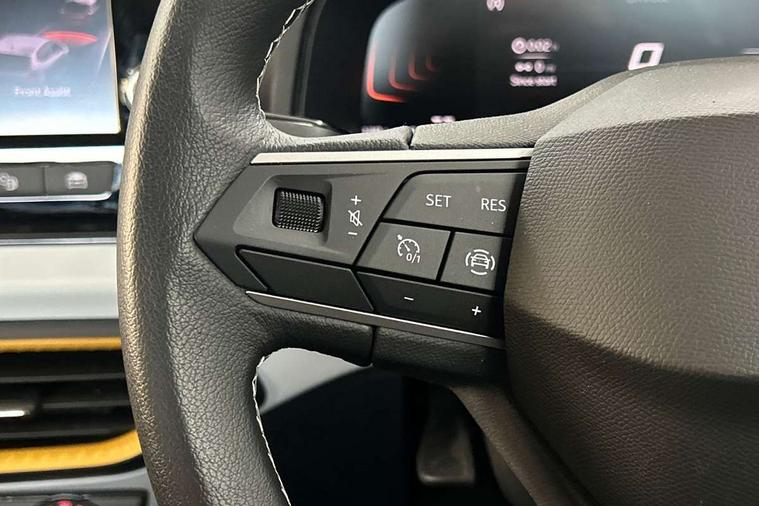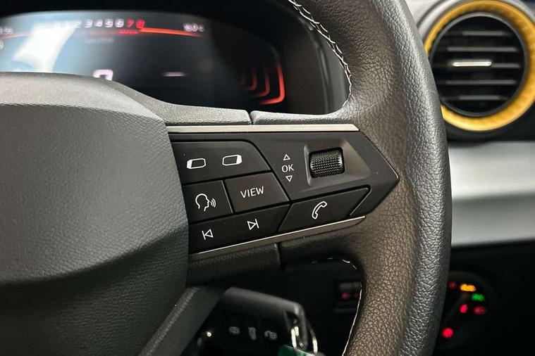 'Lights On' Reminder warning buzzer, 8" Digital cockpit, 8.25" touchscreen display with type C USB socket and DAB/AM/FM radio, Auto start and stop system, Bluetooth audio streaming with handsfree system, Cruise control, Digital clock, E-call, Full link smartphone integration with mirror link, wireless apple carplay, Google android auto + USB Type C cable for apple and android devices, Lane assist, Low fuel warning light, Outside temperature gauge, Power Steering, Seat connect with safety, service and remote, SEAT logo boot release, Speed limiter, Trip computer, Comfort suspension, Auxiliary input socket, Radio/MP3 player, Steering wheel mounted controls, Anti theft roof antenna, Body colour bumpers, Body colour door handles, Body colour door mirrors, Dimming interior rear view mirror, ECO LED automatic headlights and LED daytime running lights, Electric front windows, Electric headlight adjustment, Electrically adjustable door mirrors, Front/rear fog lights, Halogen tailights, Rain sensor, Rear side wing doors, Rear wiper, Third brake light, 3 seat bench in 2nd row, 60/40 split folding rear seat, Air conditioning with dust and pollen filter, Chrome interior detailing and grey headlining, Cloth upholstery, Comfort seats, Front courtesy lights, Front cupholders x 2, Front reading lights, Gear shift indicator, Glovebox, Height adjustable front and rear headrests (five), Height adjustable front seats, Height/reach adjust steering wheel, Illuminated boot, Instrument lighting with brightness control, Isofix, Leather multifunction flat bottomed sports steering wheel, Passenger sunvisor, Single front passenger seat, Sunvisors with mirror and driver side card holder, 3 point seatbelts on all 3 rear seats, ABS, Active front headrests, Child locks on rear doors, Electronic stability control, Energy recovery system, Front assist forward collision warning and autonomous emergency braking, Front driver and passenger side airbags with curtain airbag and front passenger airbag deactivation, Hill hold control, Multi-Collision braking, Seat belt reminder for front and rear seats, Tiredness recognition system, Tyre pressure monitoring system, Electronic engine immobiliser, Locking wheel bolts, Remote central locking + deadlocks, 15" Enjoy alloy wheels in Brilliant silver,