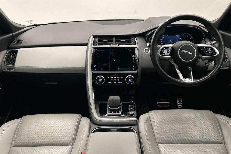 11.4" touchscreen with central ICP, Adaptive cruise control, Android Auto, Apple car play, Driver condition monitor, Eco driving style assistant, Electric power assisted steering, Emergency services call system, Front and rear parking aid, InControl remote, Jaguar drive control with adaptive surface response, Jaguar Toggle sport shift selector, Lane keep assist, Outside temperature gauge, Pivi pro connected infotainment system with smart settings and navigation pro, Push button start, Speed proportional steering, Traffic sign recognition with adaptive speed limiter, Trip computer, Voice control system, 7 kW onboard charger, Configurable dynamics, Electric rear axle drive, Home charging cable Mode 2, Large fuel tank, Passive suspension, Public charging cable Mode 3, Bluetooth connectivity including audio streaming, DAB digital audio broadcast, Dynamic volume control, 3 flash lane change indicators, Approach Illumination, Auto high beam assist, Automatic headlights, Body colour door handles, Body colour door mirrors, Body colour front and rear lower bumper main moulding and lower side cladding, Body colour upper spoiler, Body coloured side sills, Centre high-mounted stop light, Dark satin grille tips, Electric front/rear windows with one touch/auto up/down, Electric heated/power fold memory door mirrors with approach lights and auto dimming driver side, Heated washer jets, Heated windscreen, Jaguar script and leaper, LED tail lights, LED third brake light, Narvik black antenna pod and side pillar finisher, R Dynamic badge, R Dynamic body colour bumpers, Rain sensor windscreen wipers, Rear fog lights, Rear side wing doors, Rear wash wiper, Satin black grained front outer grille, low grill mesh and low bumper valence, side fender vent mesh and finisher, rear tow eye cover and grille mesh, Twin exhaust tailpipe, Variable front intermittent wipers, 3 rear head restraints, 3 seat bench in 2nd row, 40:20:40 rear seat fold, Bright metal pedals, Carpet mats, Centre console with armrest, Enhanced ambient lighting, Hooks loadspace, ISOFIX on outer rear seats, Loadspace cover, Loadspace light, Loadspace storage net, Luggage tie-downs in loadspace, Manual height/reach adjust steering wheel, Multifunction steering wheel, Overhead lighting console, Passive front head restraints, Power sockets, R-Dynamic branded leather steering wheel, Rear air vents, Rear bench seats, Satin chrome gearshift paddles, Single front passenger seat, Sunvisors with illuminated vanity mirrors, Twin front cupholders, Two zone climate control, 3x3 point rear seatbelts, ABS, All surface progress control (ASPC), Child locks on rear doors, Customer configurable autolock, DSC - Dynamic Stability Control, Electronic brake force distribution, Electronic parking brake, Emergency brake assist, Emergency braking, Front airbags with passenger seat occupant detector, Front and rear curtain airbags, Front and rear seatbelt reminder, Front passenger airbag deactivation, Front seatbelt pretensioners, Front side airbags, Height adjustable front seatbelts, Hill start assist, Low friction launch, Power child locks, Torque vectoring brake, Tyre pressure monitoring system, Intrusion sensor and alarm, Locking wheel nuts, Remote central locking,