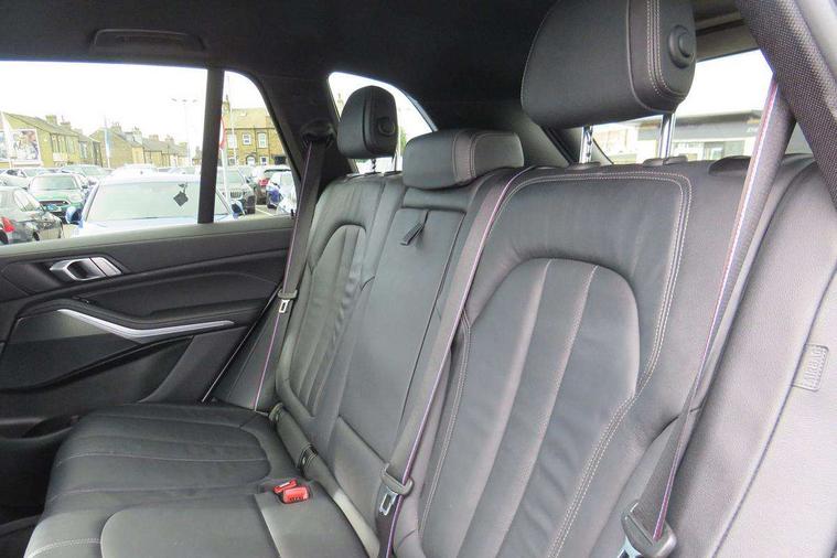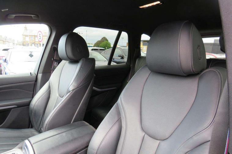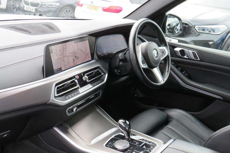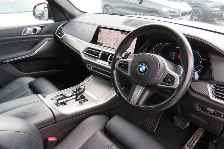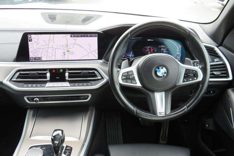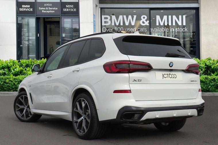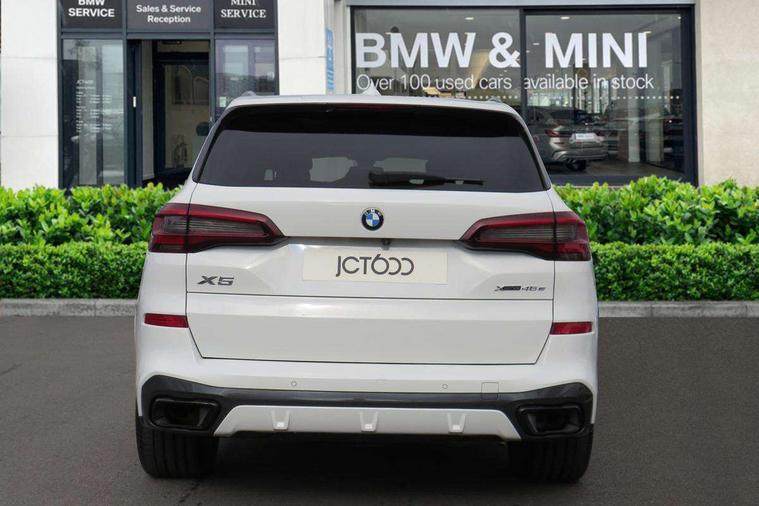 20GB hard disc drive (HDD) memory, Active guard plus, Attentiveness assist, Automatic tailgate with top hinged section open and manual bottom hinged section, BMW ConnectedDrive online services, BMW digital live cockpit professional - 12.3" digital instrument panel and 12.3" CID, with touch/voice command, BMW legal emergency call, BMW Teleservices, Brake force display, Brake pad wear indicator warning light, Cruise control with brake assist, eDrive button to select between AUTO eDrive, MAX eDrive and SAVE Battery settings, Front/rear park distance control, Galvanised plastic keyfob, Infinity symbol with line graphic on reset of average consumption, Lights on warning, Oil sensor for level and grade, On board computer inc. average speed, fuel consumption, liquid crystal Info display, journey computer, outside temperature display, personal profile, Service interval indicator, Speed limit info display, Speed limiting function, 5 metre AC Fast charge cable, Adaptive 2-axle air suspension, Double VANOS, Double wishbone front axle, Drive performance control with ECO PRO comfort + sport mode, eDrive exterior sound, Eight speed steptronic sport automatic transmission and gearshift paddles on the steering wheel, High precision injection, Petrol Particulate Filter, Safety battery terminal clamp, Standard Charging cable (Mode 2) for home socket, Twin scroll turbocharger with Valvetronic, DAB Tuner enables digital radio reception, Favourite buttons, USB connection, USB type A 1.5A in cupholder, USB Type C 3A in centre armrest, Active Air Stream kidney grille with high-gloss chrome, Adaptive air flap control bar in high-gloss black, Automatically dimming rear view mirror, BMW Individual high gloss black shadow line roof rails, Body colour bumpers, Body colour door handles, Dynamic brake lights with LED technology, Exhaust tailpipes - single, left and right with Chrome finisher, Follow me home headlight function, Front and rear electric windows with open and close fingertip control, anti trap facility and comfort closing, Heated windscreen washer jets, High beam assistant, High gloss black outer and central air intakes on front bumper with pearlescent chrome finish, High gloss black Side elements, LED daytime running lights, LED rear lights, Left charging flap on the front side, M aerodynamic body styling, M designation on left and right front side panels, Pearlescent chrome front grille bars, Rain sensor with automatic headlight activation and windscreen wiper control, Satin aluminium side window graphic, Third brake light in rear spoiler, Variable intermittent rear wash/wipe, Welcome light carpet, X5 on left tailgate, xDrive designation on right tailgate, 12V - Power sockets with 2x centre console and 1x luggage compartment, 40:20:40 split folding rear seats, Ambient interior lighting with 6 pre-designed selectable lights including dynamic function, Centre and rear interior light, Child seat ISOFIX attachment with rear outer seats includes top tether, Compartment in front of cupholder, Electric front seat adjustment with driver and front passenger memory function, Electrical steering column with adjustable height and length with activation and control on the steering column, Foldable rear centre armrest with 2 cupholders and storage compartment, Front and rear cupholders x 2, Front and rear door pockets, Front and rear door sill inlays with illuminated BMW M designation, Front and rear side armrest integrated into door trim, Front footwell lights, Front reading lights, Light inside glove compartment, Lockable glove compartment, Luggage compartment floor panel with integral storage tray, Luggage compartment lighting, M leather steering wheel, M specific key, M specific pedals, M specific steering wheel, M specific velour floor mats, Make-up mirror lights, Multifunction controls for leather steering wheel, Multifunctional hooks, Rear head restraints, Seat back with flap pocket, Securing rings in luggage compartment, Storage bins on all doors, Storage tray and compartment with cover in centre console, Sunvisors with illuminated vanity mirrors, Toolkit located in luggage compartment, Connected Package Professional - X5 xDrive45e, Expanded exterior mirror pack - X5/X5 M, Non-smokers pack - X5, Acoustic protection for pedestrians, Airbags - driver/front passenger, rear and side, first and second row seats head airbags, front passenger seat airbag deactivation + knee airbag, Anti-lock braking system (ABS), Automatic Stability Control (ASC), Brake drying, Brake energy regeneration, Brake fade compensation, Braking pre-tensioning, Cornering brake control (CBC), Crash sensor activating central locking release, hazard warning lights, fuel cut off, interior lighting + activation of safety battery terminal clamp, Deformation zones - front and rear with door reinforcements and bumpers up to 2.5 mph, DSC - Dynamic Stability Control, Dynamic brake control, Dynamic Traction Control - DTC, Electromechanical parking brake with automatic drive away release and auto hold function, Electronic brake force distribution, Front and rear seatbelts with seatbelt stopper, seatbelt tensioner for front and outer rear seats and belt force limiter, Front head restraints with anti-whiplash, Height adjustable front seatbelts, Hill start assistant, Integrated brake system, M Sport braking system in blue high gloss + blue painted brake calipers with M designation, Mechanical child proof lock on rear doors, Passive protection for pedestrians, Seat occupancy detection for driver and passenger side, Side impact protection, Three 3 point inertia reel seatbelts, Two tone horn, Tyre pressure monitoring system, Ventilated front and rear disc brakes, Warning triangle and first aid kit, Closing system with central locking, Driver and front passenger door centre lock switch, Locking wheel bolts, Thatcham 1 alarm system with remote control and engine immobiliser, Start/stop toggle diamond shaped trim finisher in pearl chrome,