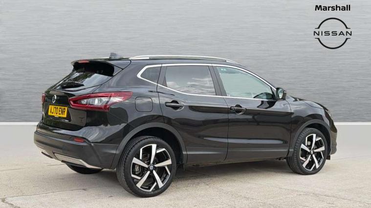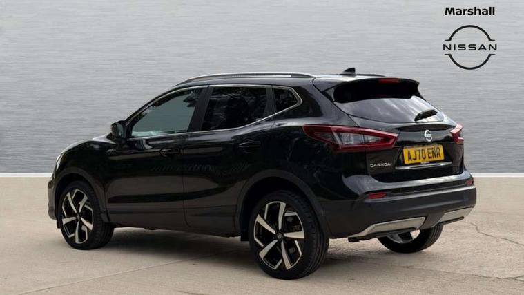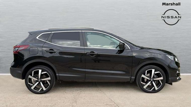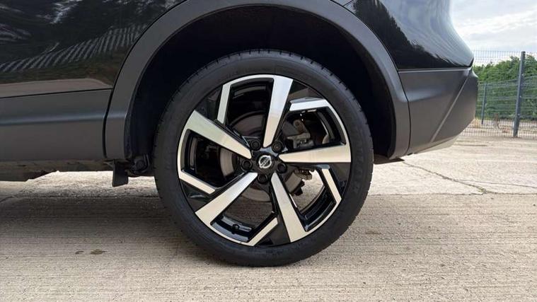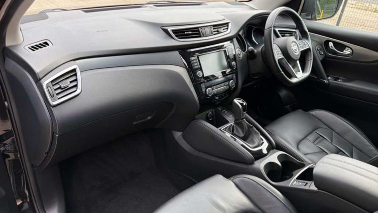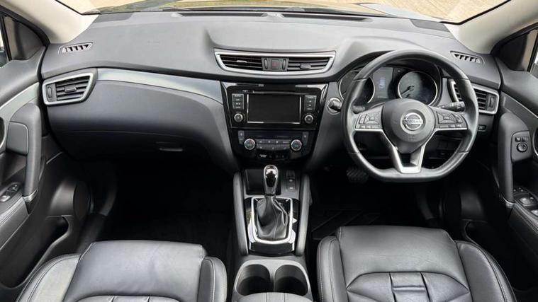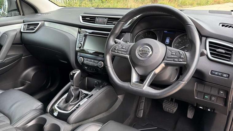 360 degree Intelligent around view monitor, Advanced drive assist display 5'' TFT coloured screen, Apple car play/Android Auto, Bluetooth connectivity, Cruise control + speed limiter, Electric speed sensitive power steering, Front parking sensors, Idle stop/start system, Intelligent park assist, Lane departure warning system, Nissan connect evo 7" touchscreen navigation and entertainment system, Normal or sport selectable steering, Outside temperature sensor, Premium Tomtom connected services, Push button starter, Rear parking sensors, Service interval indicator, Smartphone integration, Traffic sign recognition, Trip computer, Voice control system, Nissan chassis control (intelligent ride control, intelligent trace control, intelligent engine brake), 6 speakers, AM/FM radio, CD audio system, Aux-in socket, DAB Digital radio, Steering wheel mounted audio controls, USB port, Anti dazzle rear view mirror, Auto wipers, Body colour bumpers, Body coloured door handles, Body coloured door mirrors, Chrome window surround, Daytime running lights dip function when turn signal applied, Electric adjustable heated door mirrors with memory, Electric folding door mirrors, Electric front and rear windows with one touch illuminated window controls, Front fog lights, High beam assist, Intelligent auto headlights, LED indicators in door mirrors, Matt silver roof rails, Privacy glass, Rear roof spoiler, Rear wiper with reverse link, Shark fin antenna, Silver rear styling plate, Underbody vortex generators, 2 X front 12v power sockets, 3 height adjustable rear headrests, 60/40 split folding rear seat, Ambient interior lighting, Ambient lighting around centre console, Boot lighting, Centre console storage box/armrest, Chrome interior door handles, Dual zone climate control, Electric 4-way lumbar support for drivers seat, Electrically adjustable driver seat with memory, Electrically adjustable passenger seat, Front and rear door pockets with bottle holders, Front and rear seat belt pre-tensioners with load limiters, Height adjustable front headrests, Individual rear seat reading lights, ISOFIX restraints on outer rear seats x2, Leather D shaped steering wheel, Leather gear lever, Leather knee pad, Luggage board system, Luxury floor mats, Manual height adjustable passenger seat, Manual lumbar support on passenger seat, Monoform front sport seats with plastic backboard, Nappa leather upholstery with 3D quilted, Parcel shelf stow function under luggage board, Pollen filter, Rear armrest with 2 cupholders, Synthetic leather wrapped door handle with contrasting stitching, Tilt/telescopic adjustable steering wheel, Glass roof pack - Qashqai, Heat package - Qashqai, LED pack - Qashqai, 6 airbags - Driver, front passenger, curtain and side airbags, ABS, ESP, EBD and brake assist, Auto hold function, Child locks on rear doors, Electronic parking brake, Front and rear seat belt warning, Height adjustable front seatbelts, Hill start assist, Intelligent emergency braking with pedestrian recognition, Passenger airbag deactivation system, Three 3 point rear seatbelts, Tyre pressure monitoring system, Anti-theft immobiliser, Intelligent Key, Remote central locking, Thatcham Cat.1 alarm, Carbon graphite dash trim, 19" Alloy wheels,