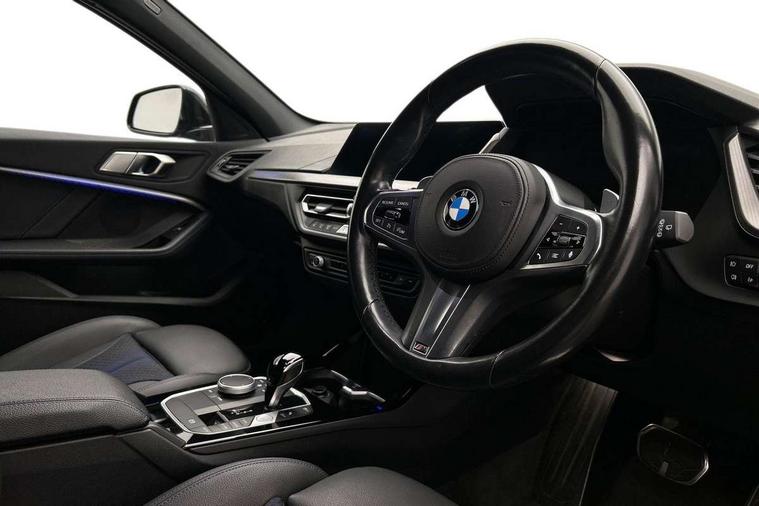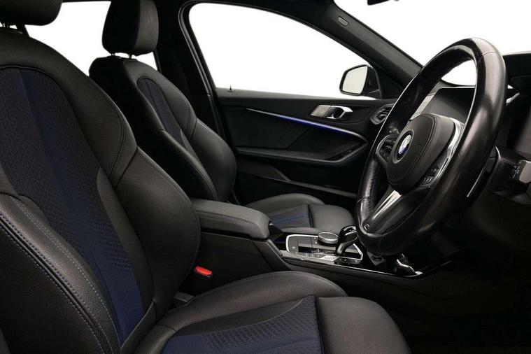 Active guard plus, Attentiveness assist, BMW ConnectedDrive online services, BMW Teleservices, Characteristic map controlled oil pump system, Check Control warning system for monitoring of lights and door/luggage compartment open warning, Cruise control with brake assist, Eco pro mode, Electro hydraulically controlled multi-plate clutch transfers drive to rear axle and with power take-off device located on the front differential., Energy efficient operating strategy, Front axle single joint with specific axle kinematics to minimise drive influences on steering + provide increased rigidity agile driving behaviour, Integrated owners handbook, Lane departure warning system, Oil sensor for level and grade, On board computer, Optimum shift indicator, Personal Profile, Pull away assistant, Rigidly mounted rear subframe - Multi link construction with separate spring / damper configuration and excellent driving characteristics, Speed limit Info including no-overtaking indicator, Speed limiter, AdBlue tank, Aluminium lightweight construction, Anti roll bar front and rear, Balancer shaft, Diesel particulate filter, DOHC valve train with two overhead camshafts, Drive Performance Control, Eight speed sport automatic transmission with gearshift paddle switches, Electronic differential lock, Larger fuel tank capacity (50 litres), Single turbo charger with variable vane geometry, Twin tube gas filled shock absorbers with degressive characteristic curve, Two-stage charging, Variable, stepless and infinitely adjustable distribution of drive torque between the front and rear axles, xDrive intelligent all wheel drive, DAB Digital radio, Auto dimming rear view mirror, Automatic headlight beam throw control, Automatic windscreen wipers and automatic headlight, Body colour door handles, Body colour mirror caps, Body colour roof trims, Chrome 'M' logo side designation, Chrome exhaust twin tailpipes round 90mm in left and right split, Chrome kidney grille frame with Satin Aluminium struts, Direction indicator side lights in exterior mirrors, Fading support, Folding side mirrors with auto dimming/folding wing mirrors with auto dimming, Follow me home headlights, Front and rear bumper system with replaceable deformation elements, Front and rear electric windows with open and close fingertip control, anti trap facility and comfort closing, Front door sill finishers in black plastic with M designation in metallic look, Green tinted heat protection glazing, Heated, electrically adjustable exterior mirror aspheric on driver side, convex on passenger side, High gloss shadowline window frame, Recess cover mirror frames and B/C pillar embelisher trim, High level third brake light, Integrated front windscreen with washer jets, LED daytime running lights, LED eyebrow turn indicators, LED front fog lights, LED Headlights, Lightweight engineering, Matt black air guide grilles, Matt black wheel arch trim, Model designation on electric bootlid includes xDrive designation for 120d xDrive, Nearside reverse light in rear light cluster, Preparation for high beam assistant, Rear fog lights, Rear side wing doors, Rear window wiper, Shark fin antenna, Trailer stabilisation logic, Visible VIN plate, Welcome lighting, 12V power socket in front centre console with blanking plug, 3 rear seat head restraints, 3 seat bench in 2nd row, 3 spoke sports leather steering wheel with black leather and stitching, pearl chrome decorative finish, specific M Badge, Anthracite headlining, Black boot net with lashing eyes, Cargo function on 2nd seat row, Child seat ISOFIX attachment for two outer rear seats and front passenger seat with anchorage points, Conditioned based service, Driver and front passenger seat heating, Folding rear clothes hook, Four grab handles integrated in roof lining, Front and rear door pockets with bottle holders, Front and rear side armrest integrated into door trim, Front armrest, Front sports seats, Glove compartment, Height adjustable front head restraints, Luggage compartment for bag hooks on left and right, foldable luggage compartment liner and four lashing eyelets, Manual adjust steering wheel, Multi-function controls for steering wheel, Single front passenger seat, Storage compartment in centre console, Sun visors with vanity mirrors and insert tab, Two front centre console cupholders, Two zone automatic air conditioning, Velour floor mats, Additional interior lighting pack - 1 Series, BMW live cockpit professional pack- 1 Series, Connected pack professional - 1 Series, Interior lights pack - 1 Series, M Sport exterior styling aerodynamics pack - 1 Series, 2 tone horn, 3 point seatbelts on all seats, front pyrotechnic belt tensioners, stopper and belt force limiters, rear coded belt buckles, Airbags - Front driver/passenger, front and rear curtain head protection, front side, manual deactivation of front passenger airbag, Anti lock braking system (ABS) with brake assist, BMW emergency call, Brake drying, Braking readiness, Child proof locking system in rear door, City braking function, Comfort modes, Cornering brake control, Crash sensor activating central locking release, hazard warning lights, fuel cut off, interior lighting + activation of safety battery terminal clamp, Driver and front passenger seat belt security check, Dynamic stability control + (DSC+), Dynamic Traction Control - DTC, Electrically operated hand brake including automatic hold function, Front and rear disc brakes, Seatbelt warning, Side impact protection, Tyre pressure monitoring system, Warning triangle and first aid kit, Central locking switch for all doors, fuel filler cap and luggage compartment, Deadlocking function system to all doors, Drive away locking system on all doors and luggage compartment, Incorrect fuel protection system, Locking wheel bolts, Remote control with integrated key with High-gloss Black inlay and M designation and 1 button for open/ close lock, window, open luggage compartment, Start/stop button illuminated in centre 