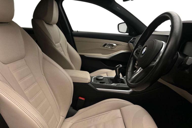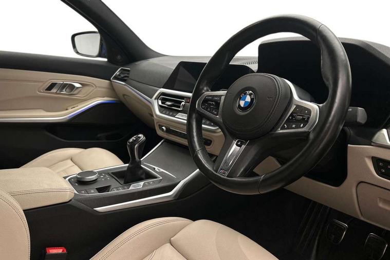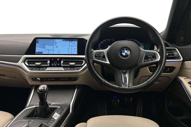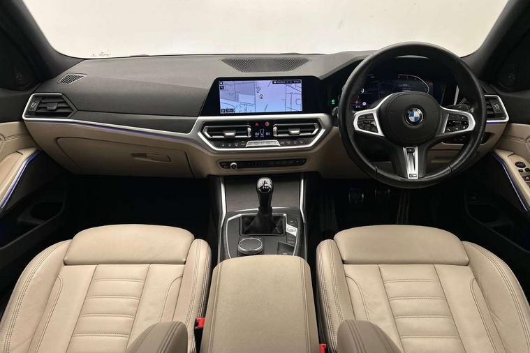 Active guard plus, Attentiveness assist, Auto start-stop, BMW ConnectedDrive online services, BMW iDrive controller on centre console, BMW Live Cockpit Professional sat nav system including 10.25" high resolution display and Intelligent Voice Assistant, BMW service history, BMW Teleservices, Brake pad wear indicator in front and rear, Check Control warning system for monitoring of lights and door/luggage compartment open warning, Condition based service, Cruise control with brake function + speed limiter, Electric power steering with Servotronic steering optimised at all speed ranges, Gearshift time display in manual mode, Instrument cluster with speedometer with mph readout, tachometer, fuel gauge and oil temperature gauge, Integrated owners handbook, Oil sensor for level and grade, warning by check control system, On board computer - average speed+fuel consumption, service interval, clock/date, odometer/trip meter, outside temperature display and ice warning, Optimum shift indicator, Personal Profile - automatic lock when driving away selectable, Variable sport steering, Balanced 50/50 weight distribution, Battery cut-out switch, Diesel particulate filter, Drive performance control - ECO PRO, comfort and sport modes, Incorrect fuelling protection, Larger capacity fuel tank, M sport suspension, Manual transmission, Stroke dependent dampers, DAB tuner, Electronic service booklet, Acoustic glazing, Active airstream chrome frame kidney grille with 8 high gloss black vertical slats, Automatic headlight beam throw control with load dependent regulating reaction, dynamic compensation of braking dive and acceleration squat, Black roof mouldings, Body colour - fuel filler flap, front and rear bumpers, door handles and mirror caps with integrated turn indicator + bottom segment in matt black, Dynamic brake lights, Electric windows - front and rear, with open/close fingertip control, anti-trap facility and comfort closing, Exhaust tailpipe - split left and right, Extended LED headlights, Exterior mirrors - electrically folding with anti-dazzle, Fading support, Front and rear bumper system with replaceable deformation elements, Front black door sill finishers with BMW designation, Green tinted heat protection glazing, High gloss shadow line exterior trim, Interior rear view electrochromatic mirror with automatic anti dazzle function, LED front fog lights, Lightweight engineering, M designation on front side panels, left and right, Matt black exterior B pillar, Model designation on right side of tailgate, Rain sensor with automatic headlight activation, Rear wiper, Shark fin antenna, Two part LED tailights in L-shape with components in smoked glass, brake light, LED turn indicator and rear fog light, Visible VIN plate, Welcome lights in interior and door handle area, Windscreen wipers with integrated washing jets, 12V power socket in front storage compartment, 2 front cupholder in centre console with clamping elements and matt black inlay, 3 rear seats with non folding headrests with 3 point seat belts, 3 zone automatic air conditioning, 4 pieces lashing eyelets in luggage compartment, 40:20:40 split folding rear seat with loading system, Ambient lighting with welcome carpet light, Anthracite headlining, Armrest integrated in front and rear door trim + front centre console armrest, Centred top Luggage compartment lights, Four grab handles integrated in roof lining, Front and rear door exit lighting (left / right), Front and rear door pockets, Front and rear reading lights, Front and rear velour floor mats, Front head restraints, Front sport seats, Gear selection lever with M specific designation, Heated driver and front passenger seats, Height adjustable mechanically and infinitely variable steering column, Illuminated armrest storage compartment, Illuminated glove compartment with separate small compartment, Interior lighting - front centre over interior mirror with soft light, rear centre and front and rear footwell lighting, M Sport multifunction leather steering wheel, Make-up mirror lights, Rear centre armrest with 2 cupholders, Rear centre console with storage compartment and ventilation grille, Sunvisors with vanity mirrors and ticket pocket, Toolkit located in luggage compartment, Connected pack professional - 3 Series Saloon/Touring, M Aerodynamics pack - 3 Series Saloon/Touring, 2 tone horn, BMW emergency call, Brake energy regeneration, Braking pre-tensioning, Child proof locking system in rear door, Child seat ISOFIX attachment rear outer seats, Coasting in idle in ECO PRO mode, Crash sensor activating of airbags, Unlocking doors, hazard warning lights, interior light, safety battery terminal, Driver and front passenger side airbags, integrated in the door side seat backrest bolsters for all seat variants, Driver/Front Passenger airbags, Dry braking, Dynamic brake control, Dynamic stability control + (DSC+) - Anti-lock Braking System (ABS) with brake assist and cornering brake control + Automatic Stability Control (ASC), Dynamic Traction Control - DTC, Electric parking brake including automatic hold function and automatic release of the parking brake when driving off, Electronic differential lock control (EDLC), Front passenger manual airbag deactivation, Head airbags for all 4 outer seats, Hill start assist, Seat belt security check for driver and front passenger, Side impact protection, Three 3 point seat belts on all seats including front belt stopper, pyrotechnic belt tensioners and belt force limiters, Tyre pressure monitoring with three level warning strategy, Ventilated front and rear disc brakes, Warning triangle and first aid kit, Alarm system (Thatcham 1) with remote control and electronic engine immobiliser, Central locking switch for all doors, fuel filler cap and luggage compartment, Remote control with integrated key one button open/close vehicle and windows, sole opening of the luggage compartment lid and panic mode, Start/stop button with Comfort Go keyless engine start 