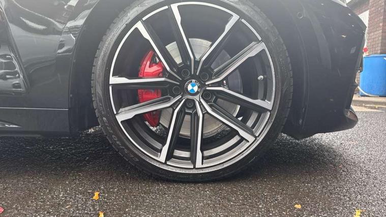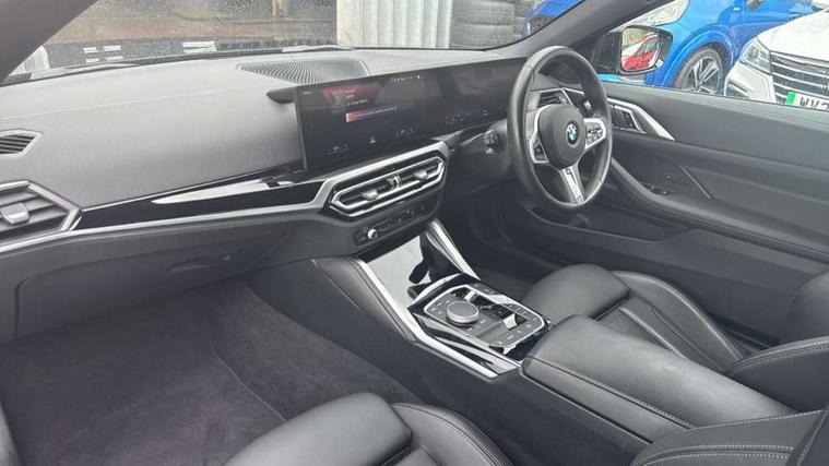 Active guard plus, Attentiveness assist, Auto start-stop, Bluetooth hands free facility with USB audio interface with audio streaming, BMW ConnectedDrive online services, BMW iDrive controller on centre console, BMW Live Cockpit Plus Nav-12.3" instrument&14.9" control Widescreen curved display/Intelligent Voice Assist/iDrive touch/Access 3rd party app/4G LTE, BMW service history, BMW Teleservices, Brake pad wear indicator in front and rear, Check Control warning system for monitoring of lights and door/luggage compartment open warning, Condition based service, Electric power steering with Servotronic steering optimised at all speed ranges, Gearshift time display in manual mode, Instrument cluster with speedometer with mph readout, tachometer, fuel gauge and oil temperature gauge, Integrated owners handbook, Oil sensor for level and grade, warning by check control system, On board computer - average speed, fuel consumption, outside temp display with acoustic warning, clock/date, service interval, odometer/trip meter, Optimum shift indicator, Run flat indicator, Shifting point display, Smartphone integration compatible with Apple CarPlay and Android Auto, Variable sport steering, 8 speed automatic steptronic transmission with gearshift paddles, Balanced 50/50 weight distribution, Double joint spring strut front axle, Double VANOS, Drive performance control - ECO PRO, comfort and sport modes, High precision injection, Low centre of gravity, Petrol Particulate Filter, Stroke dependent dampers, VALVETRONIC engine management, 1x USB type A with data transfer and 1.5 Amp charging function in the centre console, 1x USB type C with 3 Amp charging function in the front centre armrest, DAB tuner, Electronic service booklet, Acoustic glazing, Automatic headlight beam throw control with load dependent regulating reaction, dynamic compensation of braking dive and acceleration squat, Automatic windscreen wipers and automatic headlight, Automatically dimming electrochromatic rear view mirror, BMW emblem on engine compartment lid and tailgate, BMW kidney grille with mesh grille front side of the nuggets in matt aluminium and frame in chrome high gloss, Body colour fuel filler flap, Body colour roof fin, Brushed aluminium inserts in the front door sill finishers with BMW designation, Door sill strips, Dynamic brake lights, Electric windows - front and rear, with open/close fingertip control, anti trap facility and comfort closing function all round, Exterior mirrors - electrically folding with anti-dazzle, Fading support, Follow me home headlights, Front and rear bumper system, Front apron plastic in body colour, Green tinted heat protection glazing, High gloss shadow line exterior trim, Illuminated bow type door handles in body colour drivers side with door lock, Interior rear view electrochromatic mirror with automatic anti dazzle function, LED daytime running lights, LED front fog lights, LED front indicators, Licence plate panel integrated into front bumper and tailgate, Lightweight engineering, M designation on front side panels, left and right, One piece front bumper cover including towing eye cover in body colour, Preparation for high beam assistant, Rear boot, Reversing light, Side frame decorative moulding black matt, Third brake light, Two part LED tailights in L-shape with components in smoked glass, brake light, LED turn indicator and rear fog light, Visible exhaust tailpipe finisher, Visible VIN plate, Welcome lights in interior and door handle area, Widened track and increased camber values for max transverse dynamics, agility and steering precision, Wind deflector, Window recess finisher strip in matt black, Windscreen wipers with integrated heated washing jets, 12V power socket in front centre console, 2 2nd row folding seats, 2 front cupholder in centre console with clamping elements and matt black inlay, 2 Rear seat headrests, 2nd row centre armrest with built-in cupholders, 3 spoke flat bottom M sport leather multifunction steering wheel, 3 zone automatic air conditioning, 4 pieces lashing eyelets in luggage compartment, Anthracite headlining, Armrest integrated in front and rear door trim + front centre console armrest, Battery in luggage compartment, BMW ID, Driver seat backrest width adjustment, Electric seat adjustment with memory, Extended storage - Luggage compartment partition net on left side trim panel, Bag hook on both sides of the luggage compartment, Front and rear door pockets, Front and rear reading lights, Front sport seats, Heated driver and front passenger seats, Height adjustable front headrests, Height adjustable mechanically and infinitely variable steering column, Illuminated armrest storage compartment, Illuminated glove compartment with separate small compartment, Luggage compartment light, Make-up mirror lights, Single front passenger seat, Storage compartment in rear centre console, Sunvisors with illuminated vanity mirrors and ticket pocket, Toolkit located in luggage compartment, Velour front floor mats, Ambient lighting pack - 4 Series, Connected professional package - 4 Series, M sport exterior styling pack - 4 Series, 2 x 3-point rear seatbelts, Battery safety cut-off, BMW emergency call, Brake energy regeneration, Braking pre-tensioning, Child seat ISOFIX attachment for the two outer rear seats, Coasting in idle in ECO PRO mode, Cornering brake control (CBC), Crash sensor activating of airbags, Unlocking doors, hazard warning lights, interior light, safety battery terminal, Driver and front passenger side airbags, integrated in the door side seat backrest bolsters for all seat variants, Driver/Front Passenger airbags, Dry braking, Dynamic brake control, Dynamic stability control + (DSC+) - Anti-lock Braking System (ABS) with brake assist and cornering brake control + Automatic Stability Control (ASC), Dynamic Traction Control - DTC, Electric parking brake including automatic hold function and automatic release of the parking brake when driving off, Electro