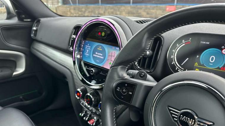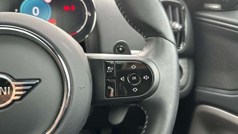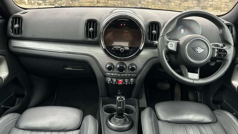Active Guard incl speed limiting and lane departure functions with auto steering, and front collision warning with brake intervention, Automatic start/stop function with brake energy recuperation, Electro-mechanical speed dependant steering assistance, Instrument cluster, MINI Driving Modes - centre toggle switch to control driving setting (sport, mid and green), Mini E-call, MINI TeleServices, On board computer, Double Vanos system, Fully variable valve control, High precision injection, Performance Control, Steptronic sport transmission with double clutch and steering wheel paddles, FM tuner and DAB digital radio, 3rd brake light, Bonnet scoop, Chrome fuel filler cap, Day time driving lights, Dynamic brake lights, Electric windows, Heated rear window, Heated windscreen washer jets, LED fog lights, Metal door sill strips with Cooper S imprint, MINI yours exterior badge in C-Pillar, driver and passenger side, Model logo, Model logo on Tailgate, Rain sensor with auto headlights, Rear fog lights, Rear side wing doors, Rear window wiper, Side scuttle panel with integrated indicator, Split rear doors, Sun/heat protection glass, White indicator lenses, 12V socket in centre console, 3 seat bench in 2nd row, 360L luggage compartment capacity, 4 lashing eyes in luggage compartment, 40:20:40 split folding rear seats, Anthracite headlining with grab handles and clothes hooks, Chrome interior highlights, Colour line - Carbon black, Cupholders, English handbook, Front headrests, Glove compartment, Height and length steering column adjustment, Interior lighting with 12 basic colours selectable via toggle switch in roof, Isofix rear child seat preparation, Leather gearshift lever and handbrake gaiters, LED reading lights, vanity mirror lights, front foot well light and spotlight on front seats, MINI Yours fine walk nappa leather steering wheel with contrast stitching in silver and MINI Yours badge, Multifunction steering wheel, Rear headrests, Single front passenger seat, Storage compartments in doors, Sunvisors with vanity mirrors, Excitement pack - Countryman, Navigation plus pack - Countryman, 2 tone horn, 3 point seatbelts on all seats, 6 Airbags - front, side, head and seat belt tensioners, Anti-lock braking system (ABS), DSC - Dynamic Stability Control, Electronic handbrake, Front and rear disc brakes, Hill start assist, Manual rear child locks, Tyre pressure monitoring system, Alarm system with tilt sensor, monitoring doors, bonnet interior and tailgate, Auto drive away locking, Deadlocking function, Electronic vehicle immobiliser, Locking wheel bolts, Start/stop toggle with keyless go, Tool kit,