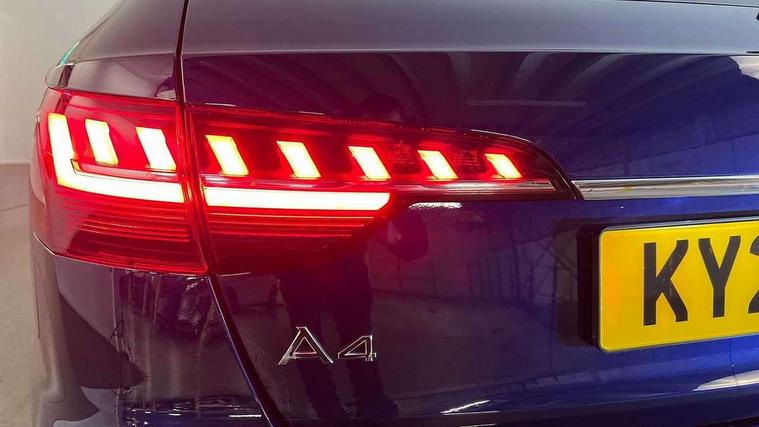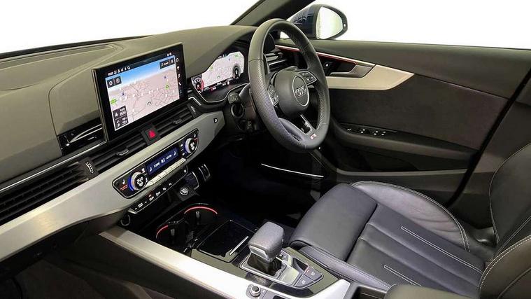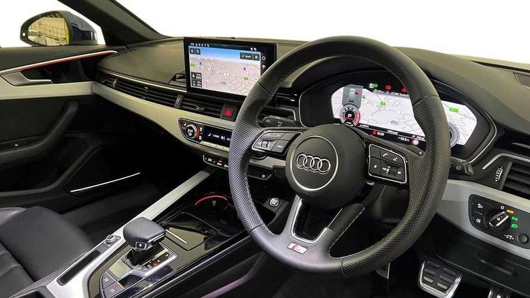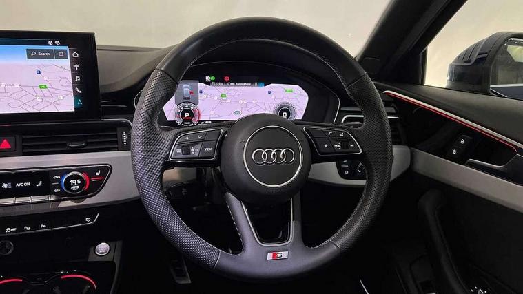 Audi connect safety and service (e-call), Audi drive select, Audi smartphone interface, Audi virtual cockpit, Automatic start-stop system with coasting functionality and efficiency programme, Bluetooth interface, Camera based traffic sign recognition, Electromechanical power steering, Email, calendar and text messages displayed via MMI, Front and rear parking sensors, Lane departure warning, MMI Navigation plus with MMI touch includes 10.1" high resolution colour MMI display, 3D map, Power operated tailgate, Rear view camera, Voice control system, 54 litre fuel tank, Sports suspension lowered by 23mm, 2 USB charging ports, 8 passive loudspeakers, DAB digital radio reception, Aluminium roof rails, Auto dimming rear view mirror, Body colour door handles, Body colour front spoiler lip, Body colour side sill trim, Body coloured door mirrors, Electric adjustable/heated/folding door mirrors with auto dimming, Grained matt black side air inlets with matt aluminium silver inlay, High beam assistant, Honeycomb structure radiator grille in grained matt black, LED headlights with LED rear lights + dynamic rear indicators + headlight adjustment and high beam, turning light + LED daytime running lights, LED third brake light, Matt aluminium silver tailpipe trim, Privacy glass, Rain and light sensors, Rear side wing doors, Rear wiper, S Line badges on the front wings, S line front and rear bumpers with side skirts, S Line rear diffuser in matt anthracite black with trim strip in matt aluminium silver, S Line roof edge spoiler, Variable intermittent front wash/wipe, Windscreen with acoustic glazing, 3 spoke high multi-function sports leather steering wheel grips in perforated leather with S badging including paddle shift, 4 way electric lumbar support for driver and front passenger, 40/20/40 split folding 3 rear seat bench in 3 parts with rear centre armrest, Black carpets, Black cloth headlining, Black perforated leather gearknob, Contrast stitching on seats, steering wheel and gear lever gaiter, Deluxe 3 zone electronic climate control, Electric load area cover, Front and rear head restraints, Front centre armrest, Heated front seats, Illuminated door sill trims with S logo, ISOFIX child seat mounting and top tether, Manual seat adjustment, Single front passenger seat, Stainless steel pedals and foot rest, High gloss package - A4, LED Interior light pack - A4/S4, 3 rear seatbelts, 6 airbags - Driver, front passenger, curtain and side windows, Attention and drowsiness assist, Electronic Stabilisation Control (ESC) including ABS, ASR and EDL, Hill hold assist, Multi collision brake assist, Pop-up bonnet for pedestrian protection, Pre sense city, Rear door child safety locks, Seatbelt monitoring, Warning triangle and first aid kit, Anti theft alarm, Anti theft wheel bolts, Central locking, Keyless Go, Matt brushed aluminium inlays, Tool kit, Tyre repair kit,