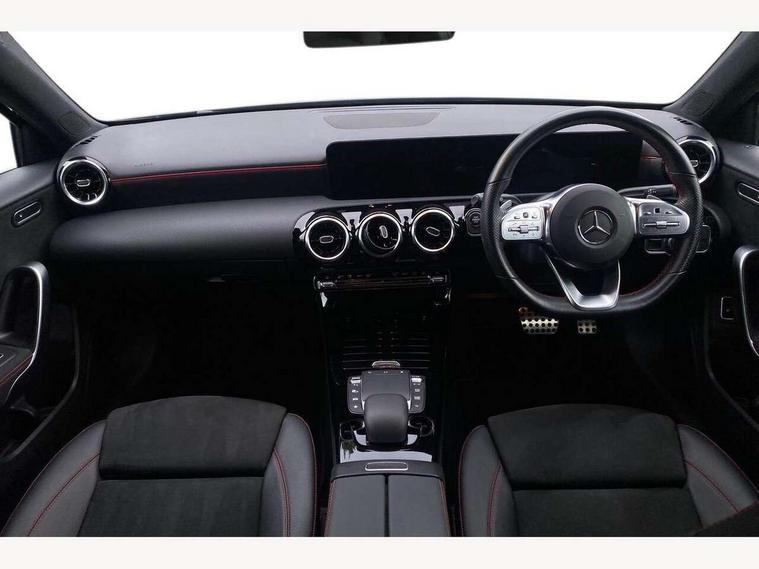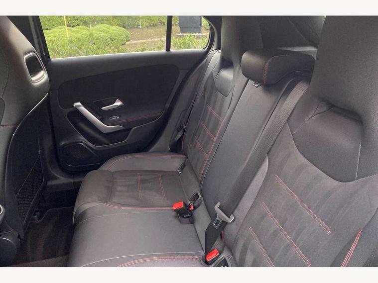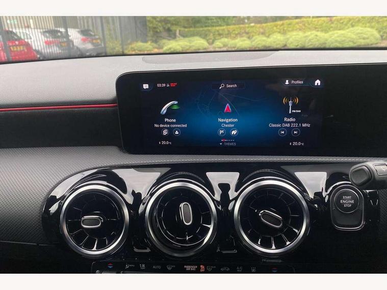 10.25" media display, 180 degree rear view camera with parking guidelines, 7" colour screen in instrument panel, Acoustic ambient protection, Active lane keep assist, Active park assist with parktronic system including front and rear parking sensors, Attention assist, Brake pad wear indicator warning light, Car wash mode, Cruise control + speed limiter, Direct steering, Dual bluetooth interfaces, DYNAMIC SELECT with a choice of driving modes (ECO, Comfort, Sport and Individual), ECO start/stop function, Fluid level warning indicator for fuel, oil, coolant and washer fluid, Hard-disk navigation, Hey Mercedes Voice activation, Lamp failure indicator, Mercedes me connect including emergency call system, accident recovery, breakdown management and maintenance, Outside temperature gauge, Owners manual in English, Pre-installation for car sharing, Pre-installation for Vehicle Monitoring, Pre-installation for Vehicle Setup, Preinstallation for Mercedes Benz link, Service indicator (ASSYST), Smartphone integration with Apple CarPlay and Android auto, Speed sensitive power steering, Trip computer, Wireless charging, 7.4 kW monophase on board charger, Comfort suspension, Mode 3 charging cable 11 kW, Rear axle multi-link, 2 USB ports (type C) in rear stowage compartment and one in front of center console, 6 speakers, DAB Digital radio, MBUX multimedia system with DAB digital radio and touchpad including satellite navigation, Mercedes-Benz sound system - 100W, 4 Electric Front and Rear windows, Adaptive brake lights, AMG bodystyling - Front apron with splitter in chrome, rear apron with chrome trim and chrome visible trim elements in tailpipe, Black weather strip, Body colour bumpers, Body colour door handles, Body colour side skirt, Body coloured door mirrors, Chrome beltline trim, Diamond radiator grille with chrome pins and silver louvre + chrome insert, Electric adjustable and heated door mirrors with integrated LED side indicators, EQ badging, Exhaust system - Twin visible tailpipes in polished stainless steel, Headlamp assist automatic headlamp activation, Heated glass rear windscreen + timer control, LED high performance headlamps with integrated LED daytime running lights, LED tail lamp, LED third brake light, Privacy glass, Radio aerial, Rain sensing windscreen wipers with two sensitivity settings, Rear fog lights, Rear wiper, Window line trim strip in chrome, 3 Spoke flat bottom leather multi function steering wheel with perforated leather in grip area, 40:20:40 split folding rear seats, Artico man-made leather/Microfibre Dinamica upholstery with red contrast stitching, Auto Mercedes-Benz child seat recognition sensor, Black air vents with surround in silver chrome, Black roof lining, Brushed stainless steel sports pedals with rubber studs, Charging socket, Controller on centre console with chrome surround, Floor mats with stitched edging and AMG lettering, Front centre armrest with storage compartment, Front door sills with Mercedes Benz lettering, Front seat backs luggage nets, Front seat cushion length adjustment, Galvanished gear shift paddles on steering wheel, Heated front seats, Height/reach adjustable steering column, Interior mirror with reading lamps in black and frameless, ISOFIX and top tether child seat fixing points in two outer rear seats, Manual height adjustable front seats, Pre-entry climate control, Rear head restraints, Seat occupancy sensor for front passenger seat, Sports seats with integrated headrests, Stowage compartment in centre console with retractable cover, Sunvisors with illuminated vanity mirrors, Touchpad on center console, Twin front cupholders, Two zone thermotronic luxury automatic climate control, Light and sight pack - A Class, Mirror package - A Class, Seat comfort pack - A Class, 3 rear 3 point seatbelts, ABS with Brake Assist, Active bonnet, Active brake assist includes forward collision warning system with autonomous braking, Adaptive brake assist with hold function and hill start assist, Black seatbelts, Childproof locks manually operated for rear doors and electrically operated for rear power windows, Crash responsive emergency lighting, Driver and passenger head and side airbags, Drivers knee airbag, Dual stage driver/passenger airbags, Electronic parking brake, ESP curve dynamic assist, ESP with ASR, Front and rear seatbelt reminder, Front brake callipers with Mercedes Benz lettering, Perforated front brake discs, Radar based regeneration, Tyre pressure monitoring system, Warning triangle and first aid kit, Window airbags, Alarm system/interior protection/immobiliser, Keyless Go, Remote central locking and crash sensor with emergency opening function, Urban guard vehicle protection system with immobiliser and interior protection, Dinamica microfibre trim in black, 18" AMG 5 twin spoke light alloy wheels in titanium grey with highsheen finish, Summer tyres, Tirefit sealant kit,