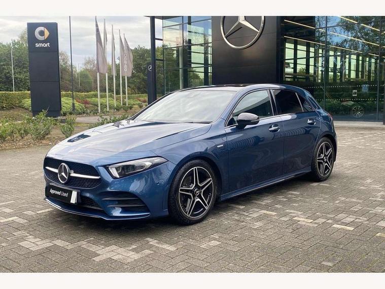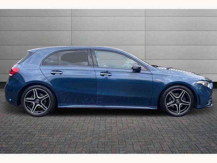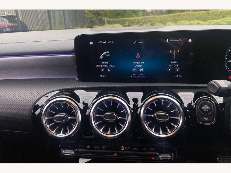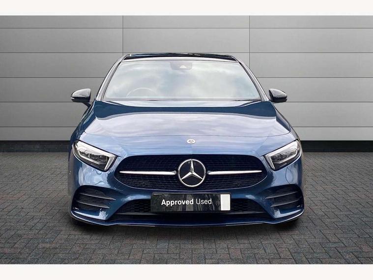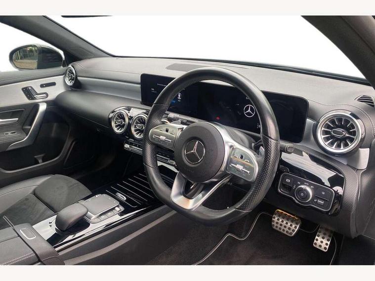 10.25" Digital instrument cluster display screen, 10.25" media display, 180 degree rear view camera with parking guidelines, Active parking assist with visual and audible warning of detected obstacles, Attention assist, Brake pad wear indicator warning light, Car wash mode, Direct steering, Dual bluetooth interfaces, DYNAMIC SELECT with a choice of driving modes (ECO, Comfort, Sport and Individual), ECO start/stop function, Fluid level warning indicator for fuel, oil, coolant and washer fluid, Hard-disk navigation, Hey Mercedes Voice activation, Lamp failure indicator, Lane keeping system, Mercedes me connect including emergency call system, accident recovery, breakdown and maintenance management, Mercedes me remote services, Outside temperature gauge, Owners manual in English, Pre-installation for private car sharing, Preinstallation for Mercedes Benz link, Service indicator (ASSYST), Smartphone integration with Apple CarPlay and Android auto, Traffic sign assist, Trip computer, Ultrasonic sensors positioned in the front and rear bumpers, Lowered comfort suspension, Rear axle torsion beam, 10 speakers, 2 USB ports (type C) in rear stowage compartment and one in front of center console, DAB Digital radio, MBUX multimedia system with DAB digital radio and touchpad including satellite navigation, Mercedes-Benz sound system - 100W, 4 Electric Front and Rear windows, Adaptive brake lights, AMG bodystyling - Front apron with splitter in chrome, rear apron with chrome trim and chrome visible trim elements in tailpipe, Black weather strip, Body colour bumpers, Body colour door handles, Body colour side skirt, Body coloured door mirrors, Electric adjustable and heated door mirrors with integrated LED side indicators, Exclusive diamond radiator grille, Exhaust system - Twin visible tailpipes in polished stainless steel, Headlamp assist automatic headlamp activation, Heated glass rear windscreen + timer control, High gloss black beltline, LED High level third brake light, LED tail lamp, Multibeam LED with adaptive highbeam assist plus, Panoramic sliding sunroof, Privacy glass, Radio aerial, Rain sensing windscreen wipers with two sensitivity settings, Rear fog lights, Rear wiper, Window line trim strip in high gloss black, 3 Spoke flat bottom leather multi function steering wheel with perforated leather in grip area, 40:20:40 split folding rear seats, Artico man-made leather/Microfibre Dinamica upholstery with contrast stitching in light grey, Auto Mercedes-Benz child seat recognition sensor, Black air vents with surround in silver chrome, Black roof lining, Brushed stainless steel sports pedals with rubber studs, Controller on centre console with chrome surround, Floor mats with black top stitching and embroidered edition logo and piping in light grey, Front centre armrest with storage compartment, Front seat backs luggage nets, Front seat cushion length adjustment, Galvanished gear shift paddles on steering wheel, Heated front seats, Height/reach adjustable steering column, Illuminated front door sills with changeable cover, Interior lighting - 64 colour Ambient lighting, Interior mirror with reading lamps in black and frameless, Rear armrest with 2 cupholders, Rear head restraints, Seat occupancy sensor for front passenger seat, Sports seats with integrated headrests, Stowage compartment in centre console with retractable cover, Sunvisors with illuminated vanity mirrors, Touchpad on center console, Twin front cupholders, Two zone thermotronic luxury automatic climate control, Light and sight pack - A Class, Mirror package - A Class, Night pack - A Class Saloon/Hatchback, Seat comfort pack - A Class, 3 rear 3 point seatbelts, ABS with Brake Assist, Active bonnet, Adaptive brake assist with hold function and hill start assist, Black seatbelts, Childproof locks manually operated for rear doors and electrically operated for rear power windows, Crash responsive emergency lighting, Driver and passenger head and side airbags, Drivers knee airbag, Dual stage driver/passenger airbags, Electronic parking brake, ESP curve dynamic assist, ESP with ASR, Front and rear seatbelt reminder, Front brake callipers with Mercedes Benz lettering, ISOFIX and top tether child seat fixing points in two outer rear seats, Tyre pressure monitoring system, Warning triangle and first aid kit, Window airbags, Alarm system/interior protection/immobiliser, Keyless entry lock/unlock, Keyless Go, Remote central locking and crash sensor with emergency opening function, Urban guard vehicle protection system with immobiliser and interior protection, Matrix look light longitudinal grain aluminium trim element, 18" AMG 5 twin spoke light alloy wheels aerodynamically optimised painted in black with highsheen finish, Summer tyres, Tirefit sealant kit,