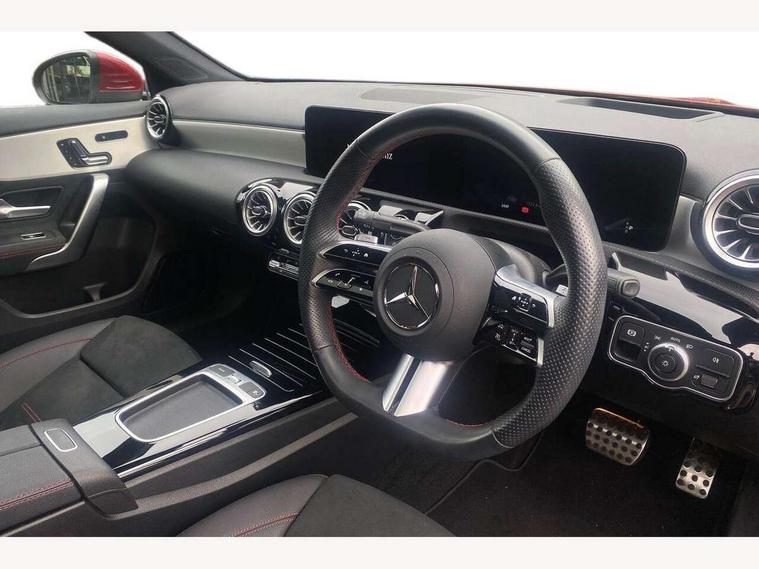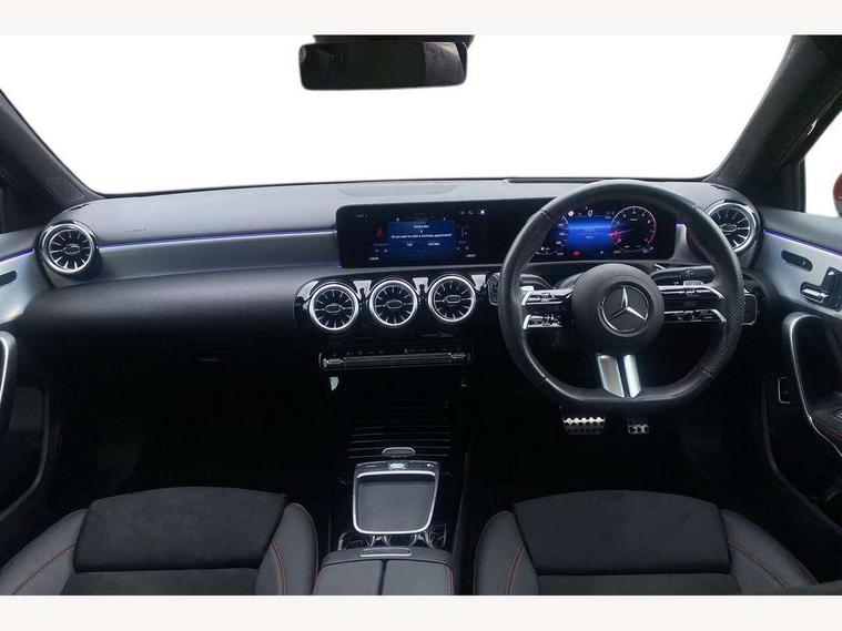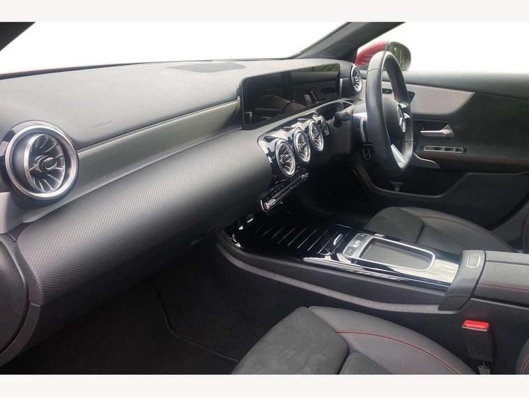 10.25 inch touchscreen central media display, 10.25" Digital instrument cluster display screen, Attention assist, Brake pad wear indicator warning light, Car wash mode, Direct steering, Direction indicators with lane change function, Dual bluetooth interfaces, DYNAMIC SELECT with a choice of driving modes (ECO, Comfort, Sport and Individual), ECO start/stop function, Engine start/stop button, Fingerprint scanner, Fluid level warning indicator for fuel, oil, coolant and washer fluid, Fluorescent jacket for driver, Hard-disk navigation, Head up Display, Hey Mercedes Voice activation, Lamp failure indicator, Mercedes me connect including emergency call system, accident recovery, breakdown and maintenance management, Mercedes me remote services, Outside temperature gauge, Owners manual in English, Pre-installation of private car share, Preinstallation for Mercedes Benz link, Remote boot closing, Service indicator (ASSYST), Smartphone integration with Apple CarPlay and Android auto, Speed sensitive power steering, Traffic sign assist, Trip computer in multifunction display with current consumption indicator, Wireless charging, Lowered comfort suspension, DAB Digital radio, MBUX multimedia system, Mercedes Benz advanced sound system (225 W) with 10 speakers, 1 central speaker, speakers on doors, a tweeter on door, one sub woofer + boost amplifier, 4 Electric Front and Rear windows, Adaptive brake lights, AMG body styling - AMG front apron with front splitter and AMG rear apron and visible exhaust tailpipe trim elements, Body colour bumpers, Body colour door handles with chrome inserts, Body colour side skirt, Chrome beltline strips, Diamond radiator grille with pins in fine star pattern, Electric adjustable and heated door mirrors with integrated LED side indicators, Exhaust system with 2 visible tailpipe trim elements and rear apron, Headlamp assist automatic headlamp activation, Heat insulating dark tinted rear and rear side windows, Heated glass rear windscreen + timer control, LED daytime running lights, LED tail lamp, Multibeam LED headlamps with adaptive highbeam assist and cornering function, Panoramic sliding sunroof, Privacy glass, Radio aerial, Rain sensing windscreen wipers with two sensitivity settings, Rear boot, Rear fog lights, Rear side wing doors, Third brake light featuring LED technology, 3 seat bench in 2nd row, 3 Spoke flat bottom leather multi function steering wheel with perforated leather in grip area, 40:20:40 split folding rear seats, Air conditioning - Two zone thermotronic luxury automatic climate control with display, AMG floor mats, Automatic child seat recognition sensor, Black air vents with surround in silver chrome, Black roof lining, Brushed stainless steel sports pedals with rubber studs, Electrically adjustable front memory seats including lumbar support and backrest inclination, Front centre armrest with stowage, Front seat backs luggage nets, Galvanished gear shift paddles on steering wheel, Height/reach adjustable steering column, Illuminated Mercedes Benz lettering front door sills with changeable cover, Interior lighting - 64 colour Ambient lighting, Interior mirror with reading lamps in black and frameless, Rear armrest with 2 cupholders, Seat occupancy sensor for front passenger seat, Single front passenger seat, Sports seats with adjustable head restraints, Stowage compartment in centre console with retractable cover, Sunvisors with illuminated vanity mirrors, Twin front cupholders, Keyless go comfort pack - A Class, Light and sight package - A Class, Mirror package - A Class, Night pack - A Class Sport, Parking pack with 360 degree camera - A Class, Seat comfort pack - A Class, USB pack plus - A Class, Winter pack - A Class, 3 rear 3 point seatbelts, ABS with Brake Assist, Active bonnet, Adaptive brake assist with hold function and hill start assist, Black seatbelts, Bonnet with power domes, Childproof locks manually operated for rear doors and electrically operated for rear power windows, Crash responsive emergency lighting, Driver and passenger head and side airbags, Drivers knee airbag, Dual stage driver/passenger airbags, Electronic parking brake, ESP curve dynamic assist, ESP with ASR, Exit warning, Front and rear seatbelt reminder, ISOFIX and top tether child seat fixing points in two outer rear seats, Tyre pressure monitoring system, Warning triangle and first aid kit, Window airbags, Alarm system/interior protection/immobiliser, Guard 360 degree vehicle protection, Remote central locking and crash sensor with emergency opening function, Light longitudinal grain aluminium trim, 19" AMG multi-spoke light alloy wheels, aerodynamically optimised, painted in black with high sheen rim flange, Summer tyres, Tirefit sealant kit,