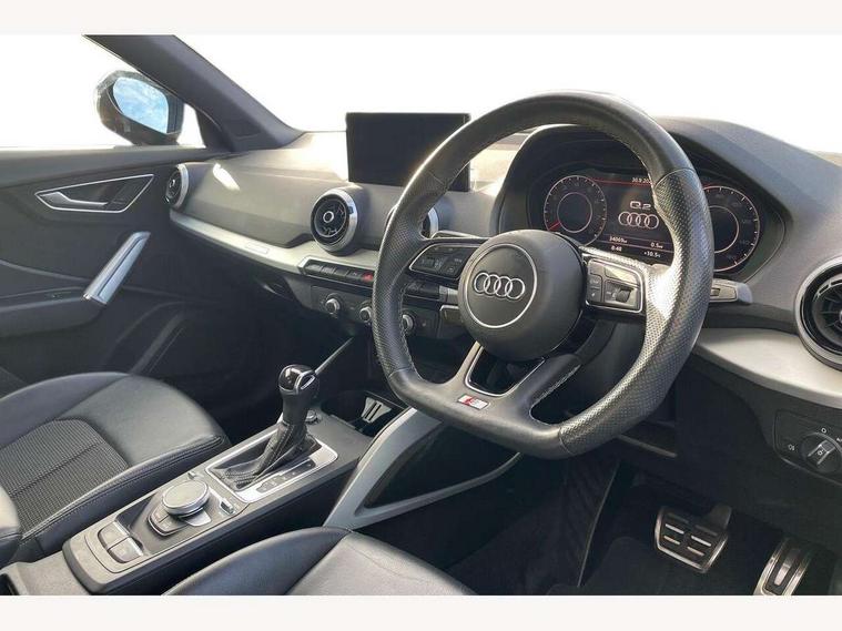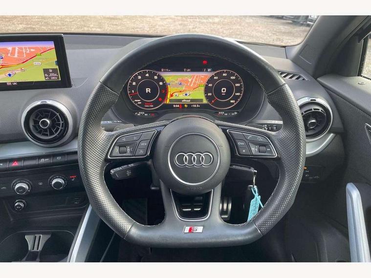 Audi connect navigation and infotainment includes innovative services, Audi connect remote and control connects your vehicle to your smartphone, Audi drive select, Audi drive select - Power steering assistance + engine + gearshift, Audi drive select with efficiency, Audi smartphone interface, Audi virtual cockpit, Automatic start/stop system with recuperation, Bluetooth interface includes bluetooth audio streaming, Cruise control, E-call, MMI navigation plus with MMI touch, Power operated tailgate, Progressive steering, Rear parking sensors, 2 x SDXC card reader, 8 passive loudspeakers, DAB Digital radio, DVD Drive, Auto dimming rear view mirror, Black window trims, Bumper in full body colour paint finish, Electrically adjustable, folding, auto dimming and heated door mirrors with integrated LED side indicators, Front windscreen with grey tinted sunband, LED daytime running lights, LED headlights with LED rear lights, LED third brake light, Privacy glass - dark tinted rear and rear side windows from B-pillar backwards, Rear side wing doors, Rear wiper, Variable front intermittent wipers, Wheel arch trims in manhattan grey, 12v socket in front, 3 seat bench in 2nd row, 3 spoke flat bottomed multi-function leather sport steering wheel with gear shift paddles, 4-way electric lumbar support for front seats including seat height adjustment for both front seat, 60/40 split folding rear seat bench, Black cloth headlining, Front and rear head restraints, Front centre armrest, Front/rear floor mats, Height/reach adjust steering wheel, Illuminated door sill trims with S logo, ISOFIX child seat mounting for front passenger with airbag deactivation and outer rear seat including top tether attachment point for outer rear seats, Single front passenger seat, Stainless steel pedals, Tool kit, Black styling pack - Q2, 3x3 point rear seatbelts, 6 airbags - Front, curtain and front side airbags, Electromechanical parking brake, Electronic stabilisation control including ABS, ASR and EDL, Hill hold assist, Pre-sense front with pedestrian recognition, Seatbelt monitoring, Tyre pressure warning light, Warning triangle and first aid kit, Anti theft alarm, Anti theft wheel bolts, Electronically operated child locks, Remote central door locking, Aluminium interior element, Matt brushed aluminium trim inlays,
