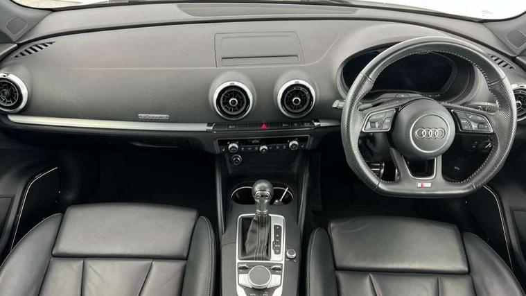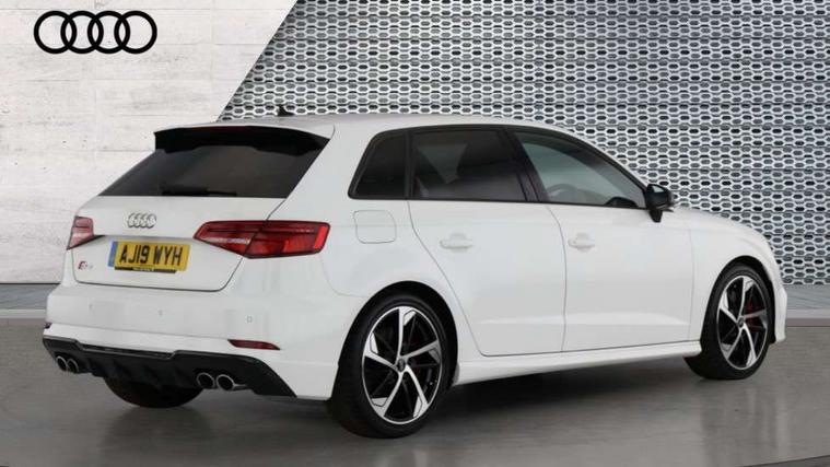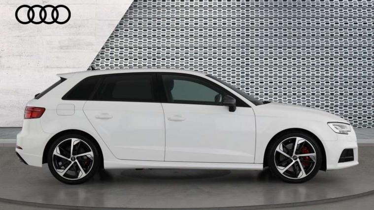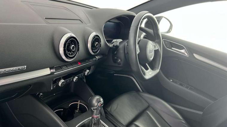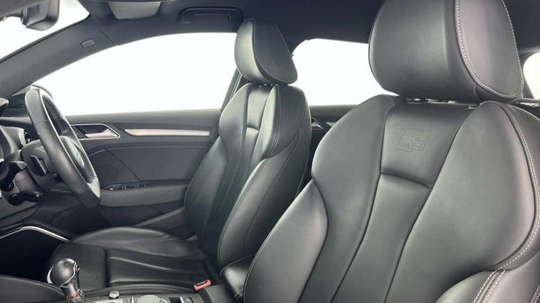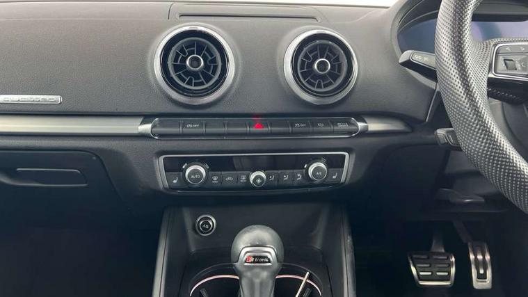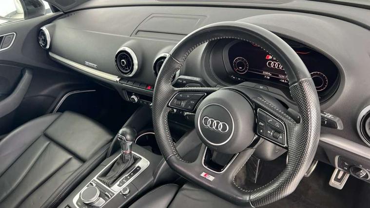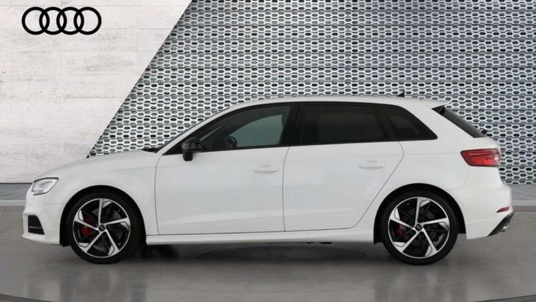 Audi connect, Audi drive select, Audi smartphone interface, Automatic start/stop system, Colour driver's information system display, Instrument dials with S3 logo, Mobile telephone preparation - bluetooth interface, Progressive power assisted steering, SD card based MMI navigation, Service interval indicator, Speed limit display, Voice control system, Voice recognition for navigation system, S sports suspension, 2 USB interfaces and Aux-In jack, Audi music interface, Bang and Olufsen sound system, CD player, DAB Digital radio, MMI radio plus with 7" colour MMI screen and MMI controller, Audi Beam uses LEDs to project the Audi Sport logo, Auto dimming rear view mirror with light and rain sensors, Body colour roof spoiler with aerodynamic inserts in high gloss black, Electric front windows, Electric rear windows, Electrically adjustable and heated door mirrors with integrated LED side indicators, Headlight washers, Heated windscreen washer jets, LED daytime running lights, Privacy glass - dark tinted rear and rear side windows from B-pillar backwards, Rear wiper, Sport specific side air inlet grille and diffuser insert, Twin oval chrome trimmed exhaust tailpipes, 3 adjustable rear headrests, 4 lashing points to secure luggage, Adjustable front centre armrest, Black cloth headlining, Dual zone electronic climate control, Front and rear interior lights with delay, Front/rear floor mats, Glovebox light, Heated front seats, Height and reach adjustable steering wheel, Illuminated door sill trims with S logo, Isofix child seat preparation for front passenger/outer rear seats inc passenger airbag deactivation, Stainless steel pedals, Storage compartments in doors side trims, centre console and under front drivers seat, Black styling pack - A3/S3, LED interior light pack - A3/RS3, Non smoking pack - A3, Storage and luggage pack - A3/RS3, 3 point seatbelts on all seats, ABS/EBD, Active bonnet, Active front headrests, Airbags - front driver/passenger, front & rear side, curtain, drivers knee, ASR, EDL, Electromechanical parking brake, ESC - Electronic Stability Control + traction control, Front passenger airbag deactivation, Hill hold assist, Manual rear child locks, Multi-Collision braking, Seatbelt warning, Tyre pressure warning, Warning triangle and first aid kit, Anti theft alarm, Anti-theft wheel bolts, Remote control central locking, Thatcham category 1 alarm + immobiliser, Aluminium air vent surrounds, Aluminium trim elements, Matt brushed aluminium inlays, Tool kit, Tyre repair kit,