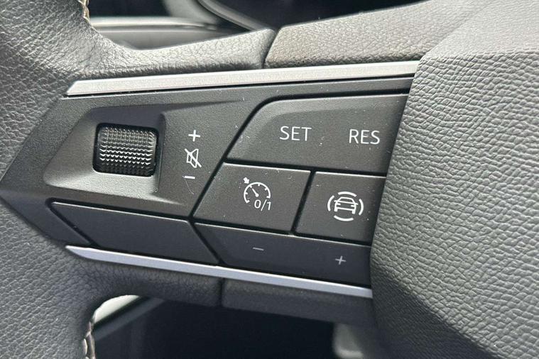 'Lights On' Reminder warning buzzer, 8" Digital cockpit, 8.25" touchscreen display with type C USB socket and DAB/AM/FM radio, Auto start and stop system, Bluetooth audio streaming with handsfree system, Cruise control, Digital clock, E-call, Full link smartphone integration with mirror link, wireless apple carplay, Google android auto + USB Type C cable for apple and android devices, Lane assist, Low fuel warning light, Outside temperature gauge, Power Steering, Seat connect with safety, service and remote, SEAT logo boot release, Speed limiter, Trip computer, Comfort suspension, Auxiliary input socket, Radio/MP3 player, Steering wheel mounted controls, Anti theft roof antenna, Body colour bumpers, Body colour door handles, Body colour door mirrors, Dimming interior rear view mirror, ECO LED automatic headlights and LED daytime running lights, Electric front windows, Electric headlight adjustment, Electrically adjustable door mirrors, Front/rear fog lights, Halogen tailights, Rain sensor, Rear side wing doors, Rear wiper, Third brake light, 3 seat bench in 2nd row, 60/40 split folding rear seat, Air conditioning with dust and pollen filter, Chrome interior detailing and grey headlining, Cloth upholstery, Comfort seats, Front courtesy lights, Front cupholders x 2, Front reading lights, Gear shift indicator, Glovebox, Height adjustable front and rear headrests (five), Height adjustable front seats, Height/reach adjust steering wheel, Illuminated boot, Instrument lighting with brightness control, Isofix, Leather multifunction flat bottomed sports steering wheel, Passenger sunvisor, Single front passenger seat, Sunvisors with mirror and driver side card holder, 3 point seatbelts on all 3 rear seats, ABS, Active front headrests, Child locks on rear doors, Electronic stability control, Energy recovery system, Front assist forward collision warning and autonomous emergency braking, Front driver and passenger side airbags with curtain airbag and front passenger airbag deactivation, Hill hold control, Multi-Collision braking, Seat belt reminder for front and rear seats, Tiredness recognition system, Tyre pressure monitoring system, Electronic engine immobiliser, Locking wheel bolts, Remote central locking + deadlocks, 15" Enjoy alloy wheels in Brilliant silver,