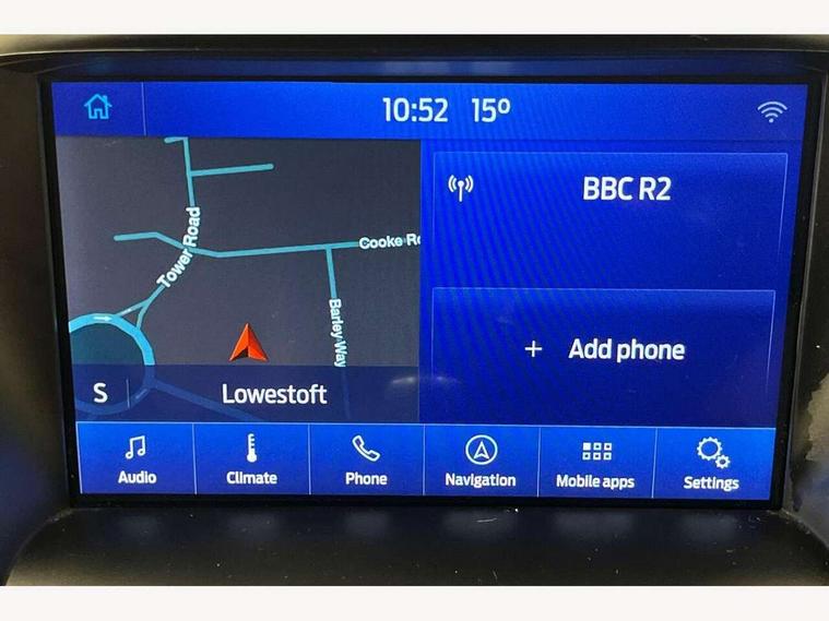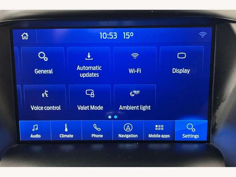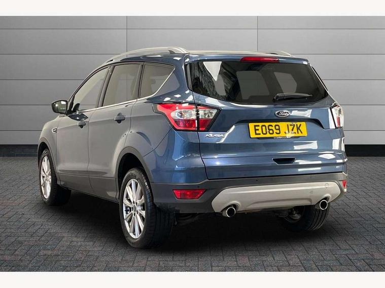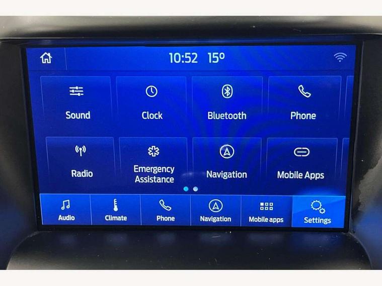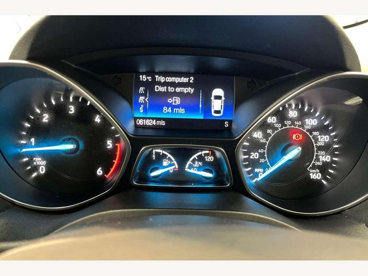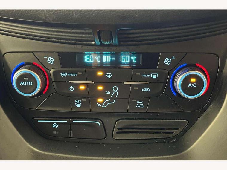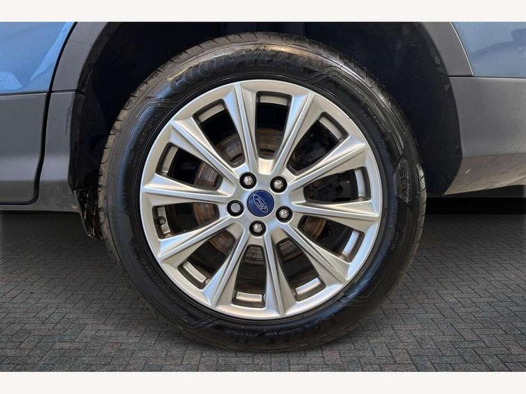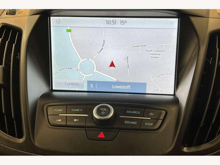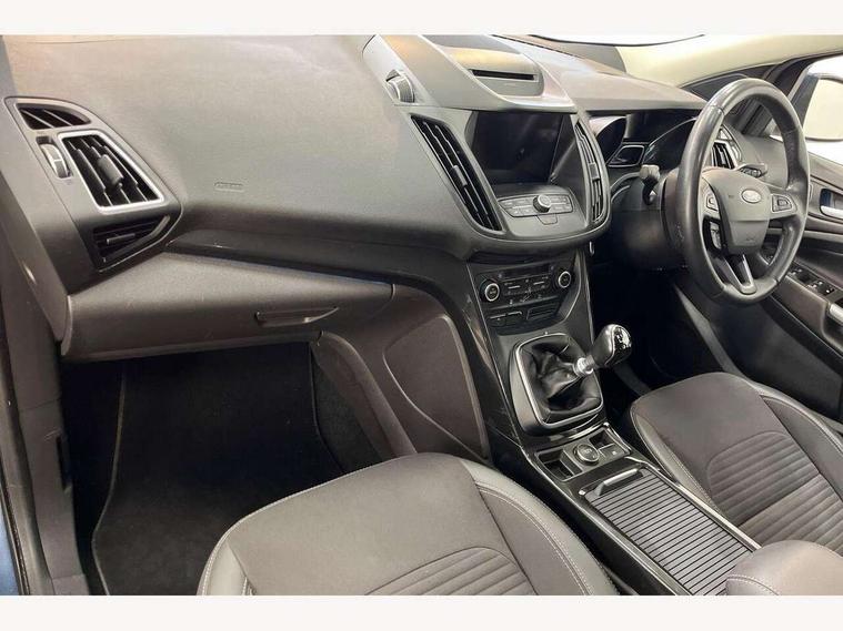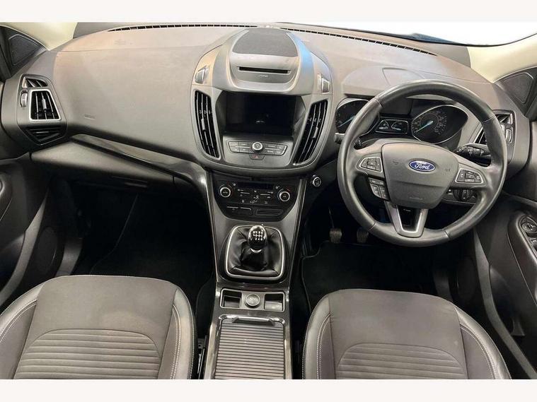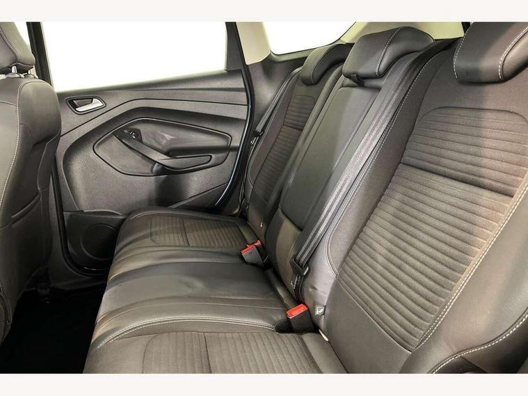 Apple car play/Android Auto, EPAS, Hands free telephone, Trip computer, 2 USB ports, Auxiliary socket for external device, Remote audio controls on steering wheel, Auto dimming rear view mirror, Body colour bumpers, Body colour rear spoiler, Electrically operated and heated door mirrors with side indicators, Electrically operated front and rear windows with global closing, Front fog lights, Front scuff plate, Power folding door mirrors, Quickclear heated windscreen, Rain sensing wipers, Tailgate wash/wipe, Twin exhausts and rear diffuser, 6 way manually adjustable passenger seat with lumbar support, 60/40 split/folding rear back and cushion, Auxiliary power socket in luggage area, Centre console with stowage tray/bottle holder/CD stowage/front and rear 12V power point, Driver/passenger front seatback pockets, Dual electronic automatic temperature control, Folding rear centre armrest, Footwell courtesy lights front and rear, Front floor mats, Front head restraints, Front overhead courtesy lights with theatre style dimming and delay, Front/rear reading lights, Isofix system on outer rear seats, Leather steering wheel and gear knob, Multi-colour ambient interior lighting, Part leather upholstery, Reach + rake adjustable steering column, Rear floor mats, Rear head restraints, Sports style front seats, Stowage unit in upper instrument panel, Tie down hooks, Tonneau cover, Variable intensity instrument illumination, Appearance pack - Kuga, 3 point seatbelts on all 3 rear seats, ABS/EBD, Airbags - front driver/passenger, front & rear side, curtain, drivers knee, EBA, Electric traction assist system, Electronic Stability Programme, Front passenger airbag deactivation switch, Hill start assist, Intelligent Protection System (IPS), Tyre pressure monitoring system, Engine immobiliser, Keyless entry, Keyless start with 'Ford Power' starter button, Locking wheel nuts, MyKey system, Remote powered central double locking doors, Thatcham category 1 alarm, Mini steel spare wheel,