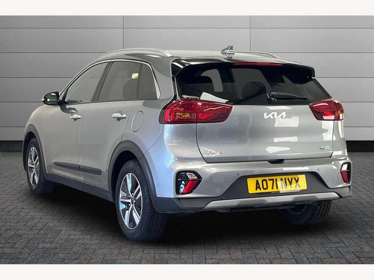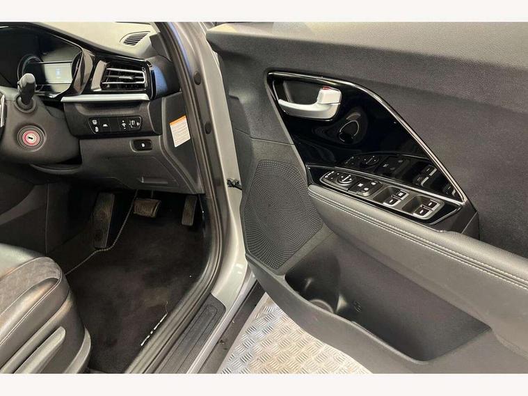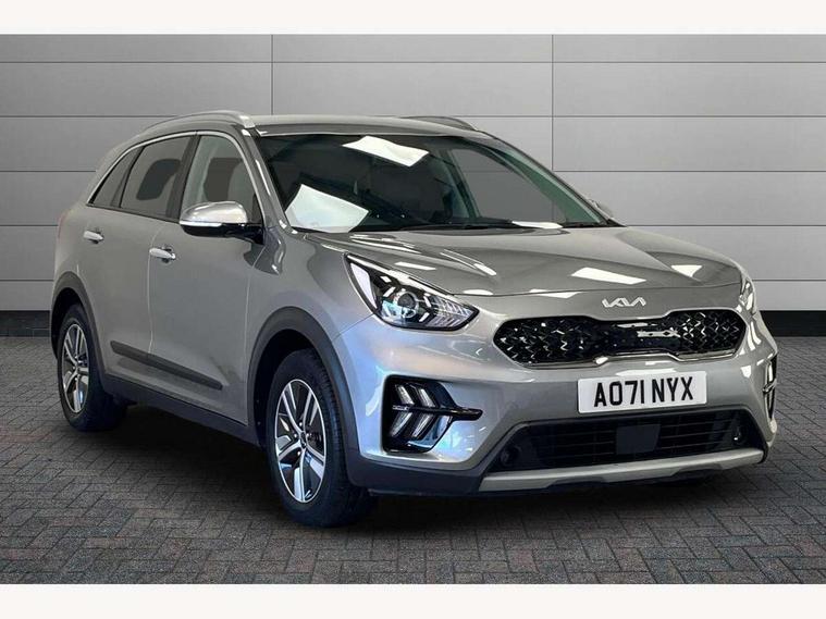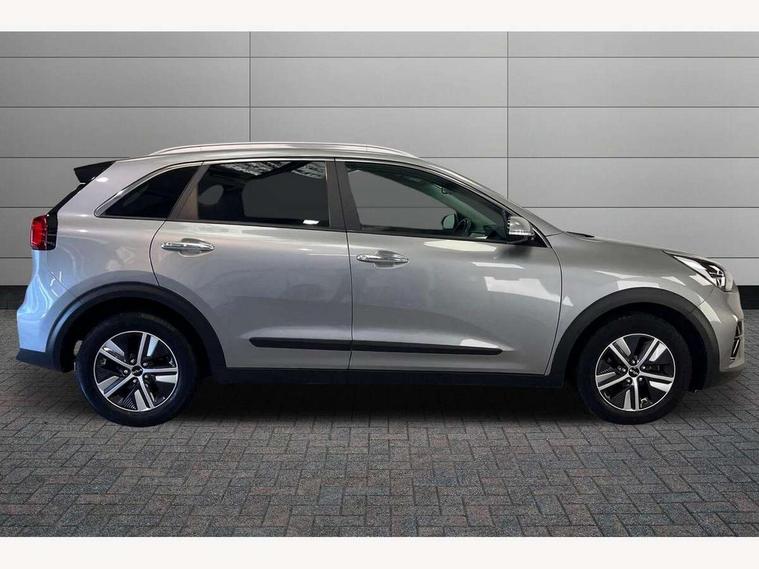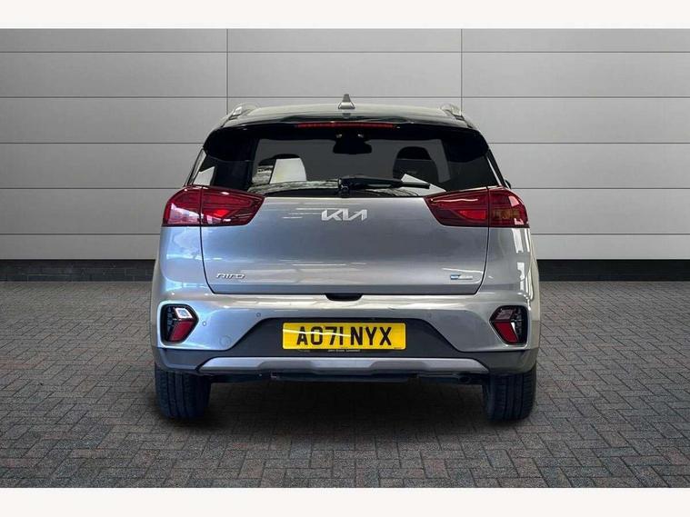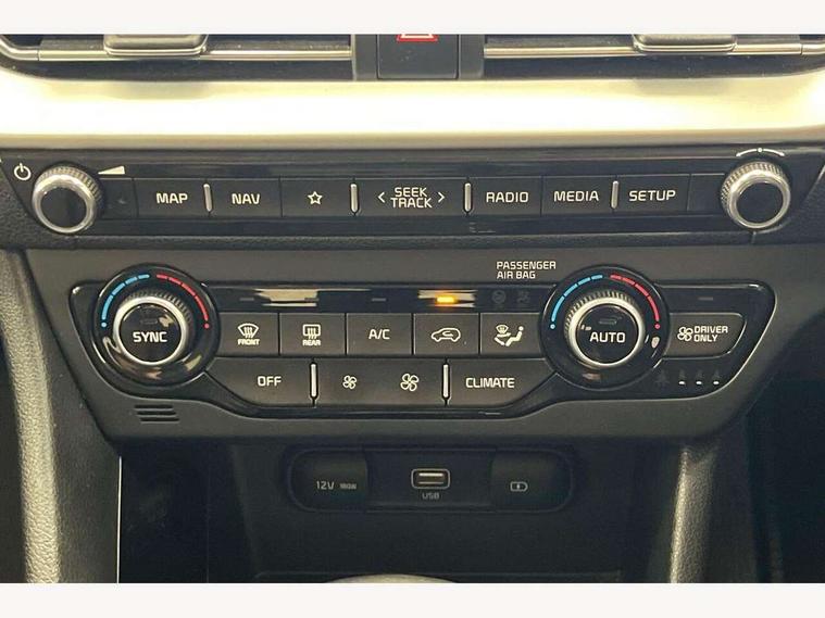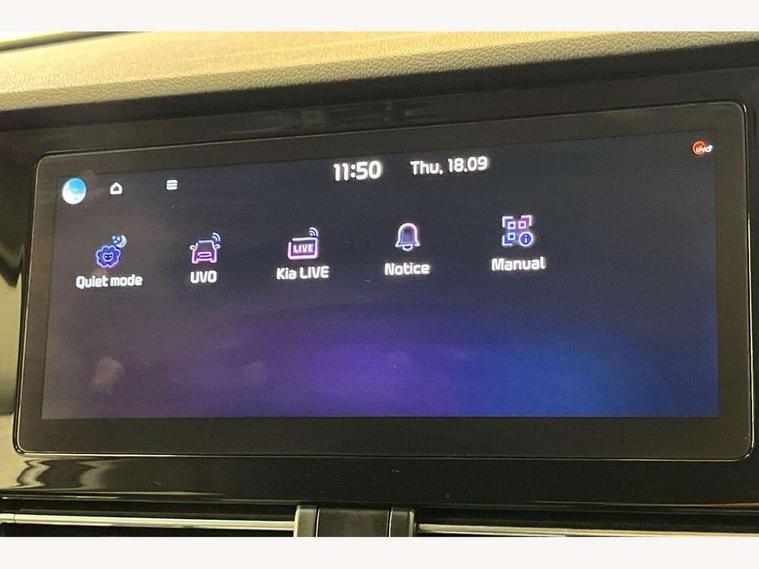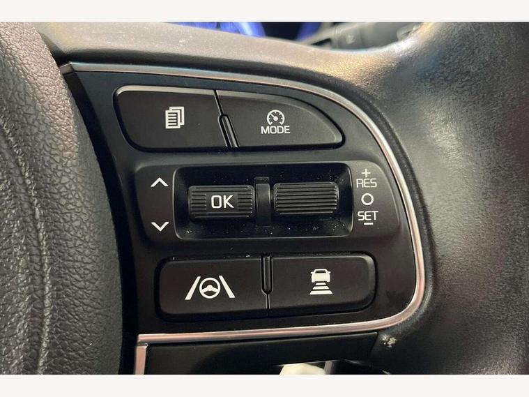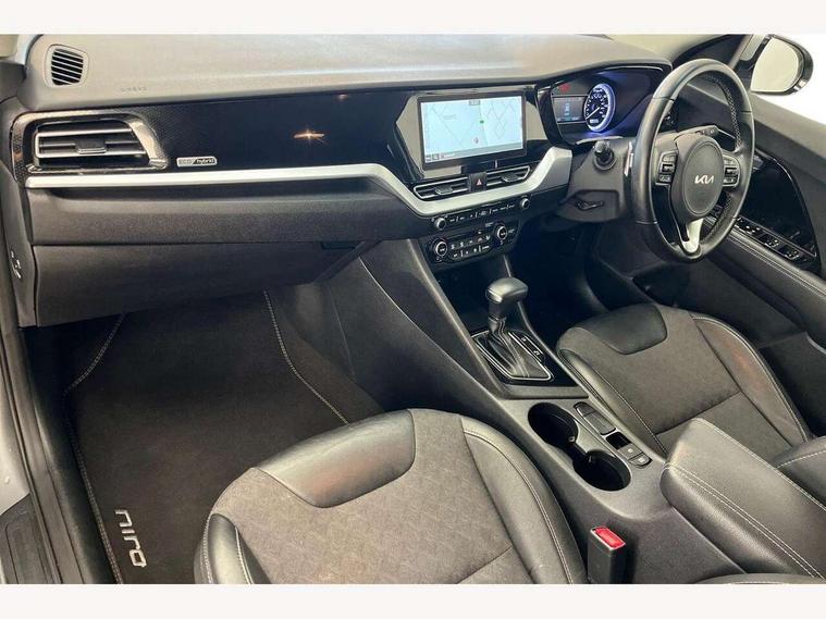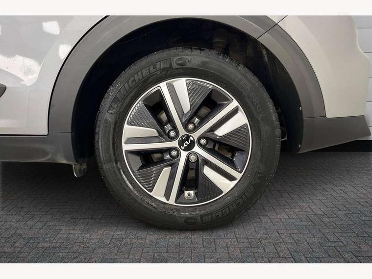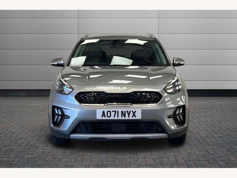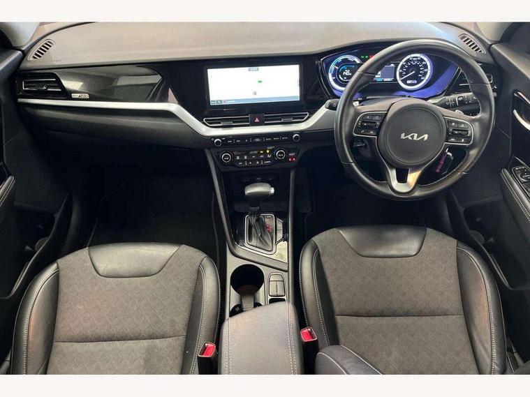10.25" Touch screen satellite navigation with european mapping and traffic messaging channel, Adaptive smart cruise control function (SCC) with stop and go, Apple car play/Android Auto with voice control, Digital clock, Drive mode selector, Driver attention warning, Emergency stop signalling system, Forward collision avoidance assist, Kia connected services featuring TomTom live, Lane Following Assist (LFA), Lane keep assist, Motor driven power steering, Rear parking sensors, Reversing camera, Speed limiter, Trip computer with distance/fuel consumption/average speed, UVO connect, 'Shark fin' mobile antenna, 4.2" supervision cluster with TFT colour display, 6 speakers, Bluetooth with music streaming, DAB Radio with MP3, Steering wheel mounted controls, USB connection located in centre console, USB port, All round electric windows with drivers auto up/down function, Auto dimming rear view mirror, Automatic defog system, Automatic headlight control system, Black beltline mouldings, Black side sills, Black wheel arch mouldings, Body colour bumpers, Body coloured/high gloss door mirrors, Chrome door handles, Driver's side wide angle mirror, Electrically folding/adjustable/heated door mirrors with LED indicators, Front fog lights, LED daytime running lights, LED rear combination lights, Manual headlight levelling, Matt black radiator grille, Privacy glass - Rear windows and tailgate, Projector headlamps, Rain sensing front wipers, Rear spoiler, Rear wiper, Roof rails, Solar glass, Waistline black paint, Welcome and follow-me home light functionality, 3 x passenger assist grips, 60/40 split/folding 2nd row of seats, All-round height adjustable headrests, Bulb type overhead console lamp with sunglasses case, Centre console storage box, Centre room lamp, Cloth/leather upholstery, Cupholders in rear armrest, Driver's seat height adjuster, Driver/passenger sunvisors with illuminated vanity mirrors, Dual zone automatic air conditioning, Front and rear door storage, Front/rear centre armrests, Headlining in Light grey, High gloss black lower console trim, High gloss black steering wheel trim, Illuminated ignition key hole, Interior door lock/unlock function, ISOFIX Child seat top tethers and anchor fixings, Leather trimmed door armrests, Leather trimmed steering wheel, Leather trimmed steering wheel and gearshift, Luggage area lamp, Luggage area load cover, Luggage net with hooks, Paddle shifts, Passenger seat height adjuster, Satin finish inner door handles, Seatback pocket - front passenger, Tilt/telescopic adjustable steering wheel, Under floor storage box, Ventiliation ducts to rear compartment, Towing pack - Niro, 3 point seatbelts on all seats, ABS, Automatic unlocking of doors in case of impact, Drivers knee airbag, Electric parking brake with auto hold function, Electronic stability control, Front passenger airbag cut-off switch, Height adjustable front seatbelts, Hill start assist control (HAC), Traction control, Twin curtain airbags with roll over sensor, Twin front and side airbags, Tyre pressure monitoring system, Alarm system and engine immobiliser, Deadlocks, Locking wheel nuts, Remote central door locking with fold away key, Speed sensitive auto door locking, Visible vehicle identification number, High gloss black centre fascia, High gloss black door inserts, 16" alloy wheels, Tyre mobility kit,