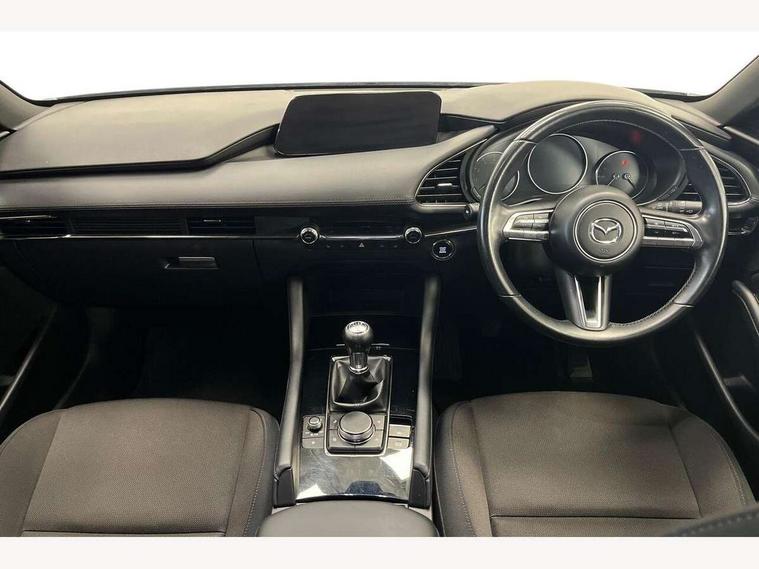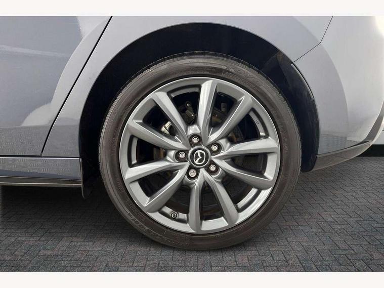 7" colour TFT display, 8.8" Colour centre touch screen display with Mazda Connect infotainment, Apple car play/Android Auto, Audio transfer from bluetooth devices, Blind spot monitoring with rear cross traffic alert, Colour active driving display inc Windscreen projected, Traffic Sign Recognition, turn-by- turn navigation and Mazda Radar Cruise Control information, Digital instrument cluster, Driver attention alert system, E-call with GPS, Emergency stop signalling system, Engine start/stop button, Front and rear parking sensor with audible and visual warning, Head up Display, Integrated bluetooth with steering wheel mounted controls, Intelligent speed assist, Lane keep assist system (LAS) with Lane departure warning system (LDWS), Mazda connected services, Mazda Navigation System with european mapping, Mazda Radar Cruise Control, Mobile App interface, Multimedia Commander, PAS, Reversing camera, Service indicator, Traffic sign recognition (TSR), Trip computer, Cylinder Deactivation, i-stop, Mazda Multimedia System with AM / FM / DAB radio with 8 speakers, Adaptive LED Headlights, Auto dimming driver's door mirrors, B-pillar garnish in piano black, Body coloured, electrically adjustable, heated auto power folding door mirrors with integrated indicators, Coming/leaving home lighting function, Dark metallic finish signature wing, Dual chrome tailpipes tip, Dusk sensing headlights, Electric front/rear windows with one touch/auto up/down, Frameless auto dimming interior rear view mirror, Front body coloured bumper with black lower bezel, Front kodo turn signal, Gloss black finish front grille, Gloss black rear roof spoiler, LED indicator lights, LED third brake light, Privacy glass with dark tinting on rear side windows and rear window, Rain sensing front wipers with adjustable sensitivity and speed, Rear colour coded bumper with gloss black lower moulding, Rear fog lights, Rear side wing doors, Signature LED daytime running lights, Signature LED rear combination lights, Speed adjustable rear wash wiper with intermittent wipe, 12v electrical power outlet, 3 seat bench in 2nd row, 60/40 split fold down rear seats, Black cloth door panel inserts, Cloth upholstery, Dark roof headlining, ceiling and pillars, Driver, front passenger and two rear door pockets, Driver, Front passenger and two rear grab handles with coathooks, Driver/passenger sunvisors + vanity mirrors (drivers side with ticket holder), Drivers seat manual slide recline and height adjustment, Dual zone climate control air conditioning, Folding rear centre armrest with two cup holders, Front and rear courtesy lamps, Front armrest, Front centre storage with two cupholders, Front head restraints, Front passenger seatback pocket, Front passengers seat manual slide, recline and height adjustment, Gear shift indicator, Heated front seats with 3 stage setting, Illuminated glovebox, Interior colouration dashboard and doorcards in black with dark stitching, ISOFIX child seat anchorage points attached on outer rear seats, Leather wrapped gear shift knob, Leather wrapped steering wheel, LED interior light, Luggage compartment light, Power outlet in luggage compartment, Roof mounted sunglasses holder, Single front passenger seat, Three height adjustable rear head restraints, Tilt/height adjustable steering wheel, USB input, 3 point ELR front seatbelts with pretensioners, 3 rear 3 point seatbelts with ELR, Anti-lock braking system (ABS), Drivers knee airbag, DSC - Dynamic Stability Control, Dual stage driver and single stage passenger airbags, EBD - Electronic brakeforce distribution, Electronic parking brake with auto disengage function and auto hold function, Front and rear curtain airbags, Front passenger airbag cut-off switch, Front side airbags, Front smart city brake support, G-Vectoring control plus, Hill launch assist, Intelligent Traction Control system, Manual child lock in rear doors, Mild Hybrid system with regenerative braking, Seatbelt reminder for driver/front passenger and rear seats, Tyre pressure monitoring system (TPMS), Auto door lock when driving, Remote central locking + deadlocks, Smart keyless entry, Thatcham accredited alarm and immobiliser, 18" Grey alloy wheels, Emergency tyre repair kit,