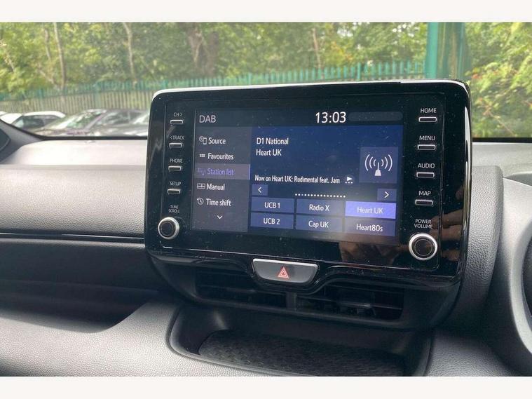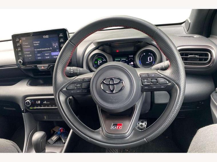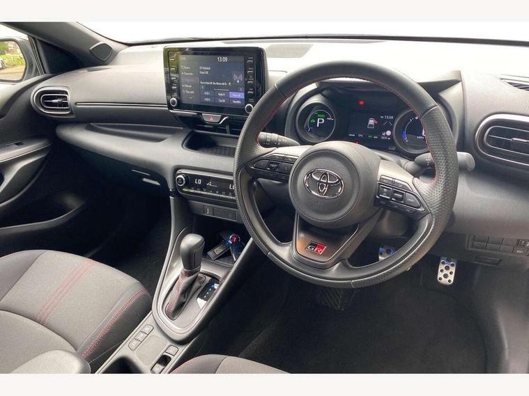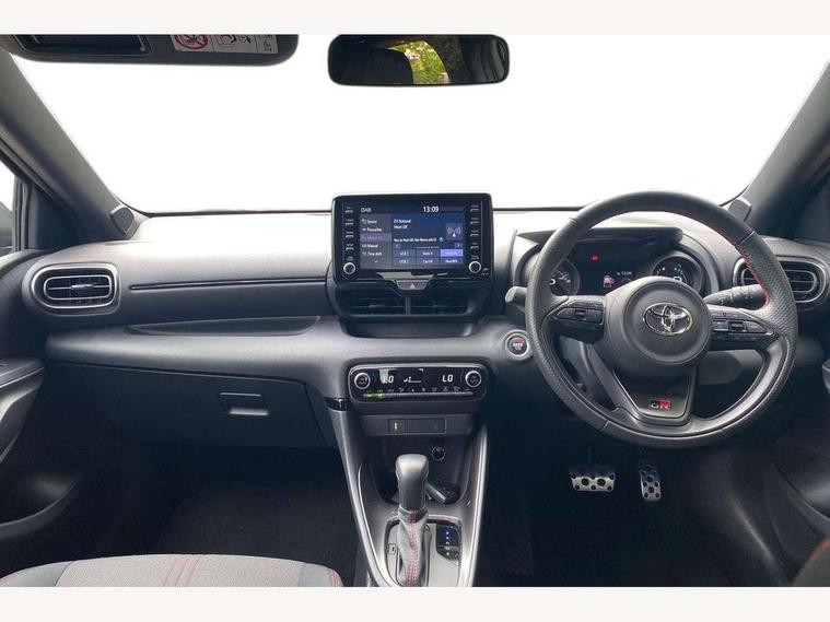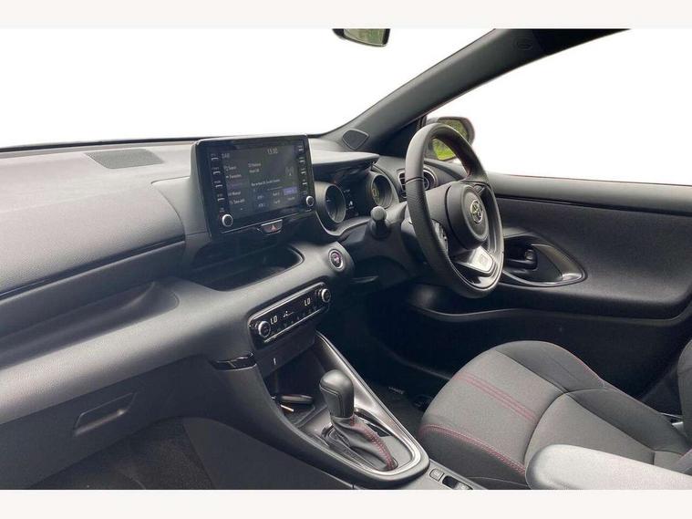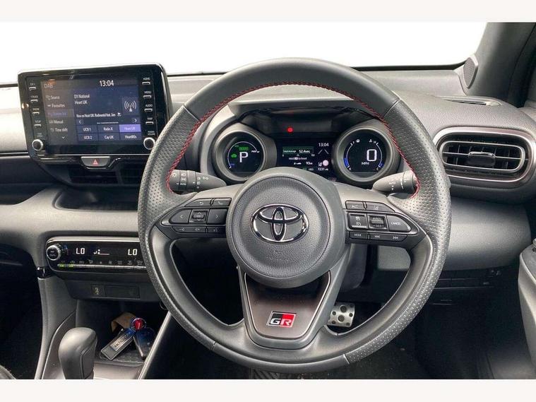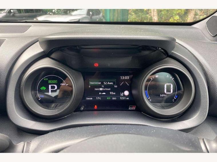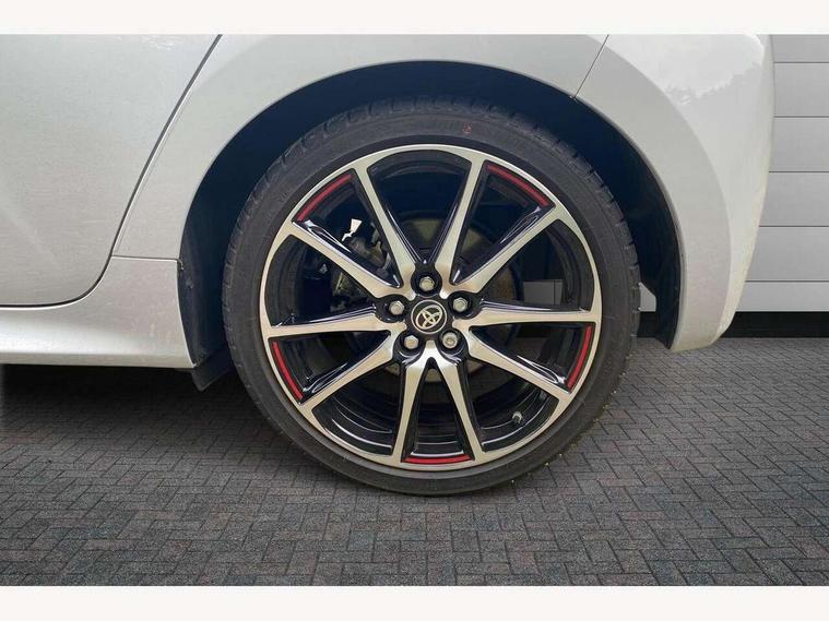 Adaptive cruise control, Adjustable speed limit with speed warning, Bluetooth connectivity, Colour binocular inspired displays with digital speedometer, E-call, Electric power steering, Hybrid energy display, Multi information display switches on steering wheel, Reversing camera, Smartphone integration with Apple CarPlay and Android auto, Tailgate, Voice recognition, Vehicle Stability Control (VSC), 6 speakers, 8" Multimedia display touch screen, Toyota Touch 2 with DAB, USB connection, Acoustic windscreen glass, Auto windscreen wipers, Automatic headlights, Body coloured door mirrors, Dark chrome lower front grille, Electric adjustable heated door mirrors, Follow me home headlights, Front auto power windows with anti jam protection, Full LED rear lights, LED daytime running lights, LED front fog lights, LED front light guide, LED Headlights, LED High mounted stop lamp, LED Indicators, LED rear light guide, Manual headlight levelling, Painted chequered front grille with hot stamp in mesh design, Rain sensor, Rear auto power windows with anti jam protection, Rear privacy glass, Rear side wing doors, Rear spoiler, Rear wiper, Shark fin antenna, Turning signal integrated indicators in door mirrors, Variable front intermittent wipers, 3 adjustable rear headrests, 3 seat bench in 2nd row, 3 spoke leather steering wheel, 60/40 split folding rear seat, Active headrests, Adjustable boot height, Black roof lining, Coat hooks in rear grab handles, Cup holders (2 front & door), Data Communication Module (DCM) connected services, Dual zone automatic air conditioning, Fabric upholstery with red stitching, Front armrest, Front sport seats, Glovebox, Height adjustable driver's seat, Height adjustable passenger seat, Isofix seat fixing, Leather gearshift, Map pockets on the backs of the front seats, Pollen filter, Shopping bag hooks, Single front passenger seat, Tilt/telescopic steering column, 3 point seatbelts on all rear seats, ABS+EBD+Brake assist, Electronic parking brake, Emergency brake light system (EBS), Front passenger airbag on/off switch, Front seatbelt reminder, Hill start assist control (HAC), Rear child proof door locks, Rear seat belt reminder, Supplemental Restraint System (SRS) 8 airbags: Driver & passenger's airbags, dual side curtain airbags, side impact airbags, front centre airbag, Toyota Safety Sense 2, Precollison + Night time Pedestrian & Cyclist Detection, Lane Trace Assist, Auto High Beam, Intelligent ACC & Road Sign Assist, Tyre pressure warning system, 2x Master key, Alarm/immobiliser, Keyless smart entry with push button start, Remote AC via MyT, Remote locking via MyT, Remote powered central double locking doors, GR Sport interior styling with accents and exterior styling, Piano black interior trim, Soft touch instrument panel, 18" machined face alloy wheels with GR Sport red deco lines, Space saver spare wheel,