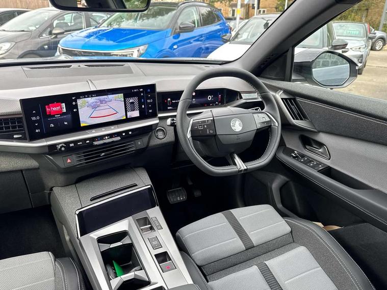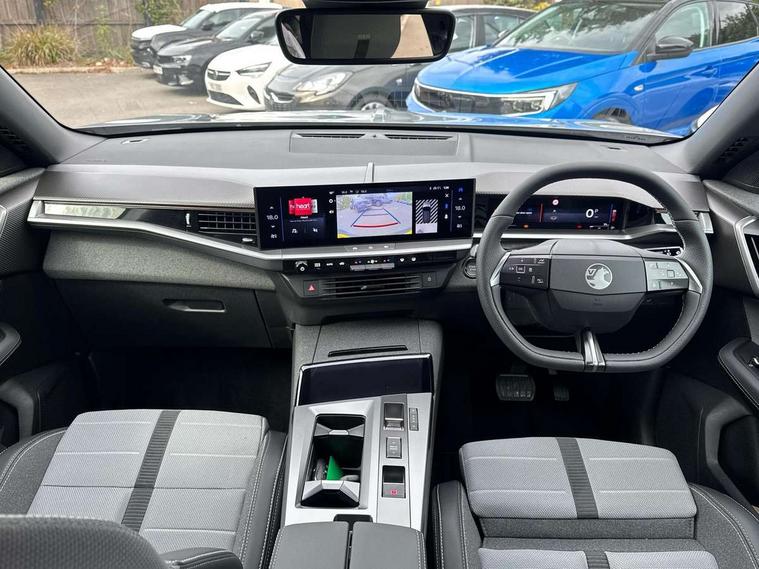 10" digital instrument cluster, 16" multimedia navigation with wireless Apple Carplay/Android auto, Adaptive cruise control with Stop and Go, Central facia display with digital clock, outside air temperature and audio information, Digital fuel gauge with low fuel level warning light, Digital rev counter, Digital speedometer, Digital water temperature gauge with warning light, Drive mode selector (Eco, Normal, Sport), Driver drowsiness alert system, Driver information - Total mileage, service indicator, oil life, Electric power steering, Extended traffic sign recognition, Front and rear parking sensors, In-crash braking, Intelligent speed adaptation, Lane keep assist, Lights on audible warning, Manual tailgate, Multi function trip computer - Trip odometer, vehicle range, average speed and fuel economy, instantaneous fuel economy and driving time, Rear view camera, Speed sign recognition, Start/stop system, Vauxhall connect including Emergency call (SOS e-call) and Breakdown call (b-call), Wireless charger for mobile devices, Anti-roll bars, Compound crank rear suspension with coil springs and gas pressure dampers, Independent decoupled MacPherson strut front suspension with gas pressure dampers and coil springs, Stability control, 2 rear USB-C sockets, 6 speakers, AM/FM and DAB radio, Radio controls on steering wheel, Acoustic windscreen, Auto headlights, Automatic headlight beam levelling, Black door mirrors, Black grained wheel arch claddings, Black roof, Body colour door handles, Dark tinted rear windows, Electrically defrosting driver and passenger door mirrors, Electrochromic rear view mirror, Front illuminated griffin, Front wiper system spraying directly from wipers, Grained lower door claddings, High gloss black front and rear bumpers, High gloss black roof spoiler, Illuminated rear Vauxhall name plate, IntelliLux LED headlights with 3D illuminated vizor, welcome and farewell animation, 11 driving modes and adaptive high beam assist, Intermittent rear window wash/wipe, LED 3rd brake light, LED daytime running lights, LED tail lights, Magic wash, Power folding door mirrors, Power front and rear windows, Rain sensor windscreen wipers, Rear side wing doors, Rear wipers with camera cleaning, Soundproof insulated windscreen, Two speed windscreen wipers with variable intermittent wipe, Welcome lighting, 10 way manual adjustable heated front seats with AGR approved with pneumatic lumbar support, cushion nose extension and power tilt, 2 cupholders with slider, 3 12V plugs, 3 bench rear seats in 2nd row, 3 spoke leather effect steering wheel with dimpling, 7 colour ambient lighting, Automatic air conditioning, Bird cloth upholstery, Centre console armrest, Chrome effect interior door handles, Cooled glove box and central console storage with LED light, Dashboard and door panels polychromatic ambient lighting, Dual zone electronic climate control, Front and rear LED reading lights, Front door storage with 1.5 litre capacity, Front seat back storage pockets, Fully carpeted luggage area, Heated steering wheel, Height adjustable headrests, Illuminated vanity mirrors, Paddle shifts, Pixel storage in centre console with edge light technology, Rear armrest, Rear centre seat head restraint, Rear clothes hooks on B pillar trims, Single passenger seat, Sunglasses Box, Anti-lock braking system (ABS), Automatic emergency braking system, Child proof locks on rear doors, Deactivation switch for front passenger front and side impact airbags, Deflation detection system, Driver airbag, Dual seatbelt pretensioners on front seats, EBD - Electronic brakeforce distribution, Electronic parking brake, Front and rear ventilated discs, Front passenger airbag, Front seat side impact airbags, Full-size curtain airbags for driver and front passenger, Hill assist control, Hydraulic Brake Assist (HBA), Inertia reel lap and diagonal seatbelts for all seats, Load limiters on outer rear seatbelt retractors, Pretensioners on outer rear seatbelt retractors, Rear 3 point ISOFIX, Smart seatbelt reminder for front and rear seats, Tyre pressure monitoring system, Central locking, Deadlocking system, Electronically protected audio equipment, Engine deadlock immobiliser, Keyless entry and start, Locking wheel nuts, Remote security alarm system, Mistral dark ambience, 19" Diamond cut alloy wheels, Tyre repair kit,