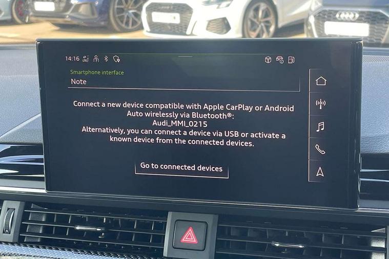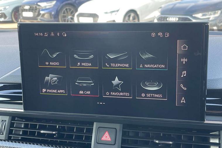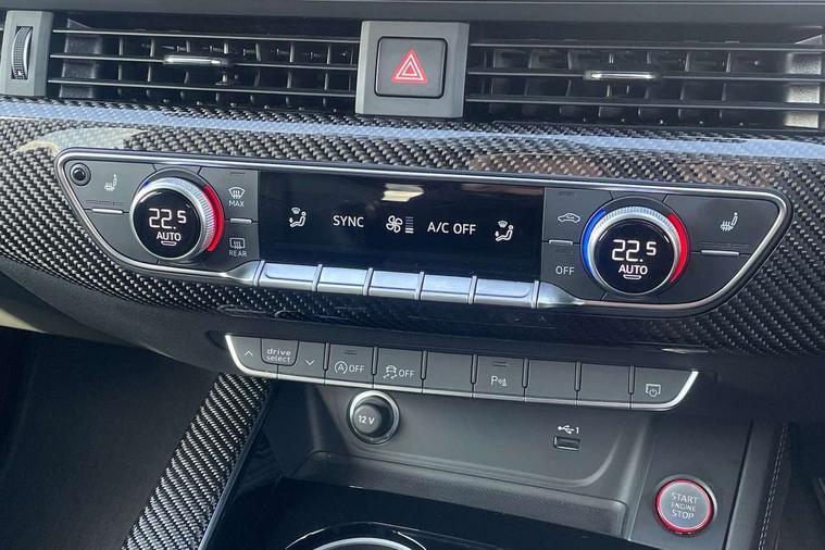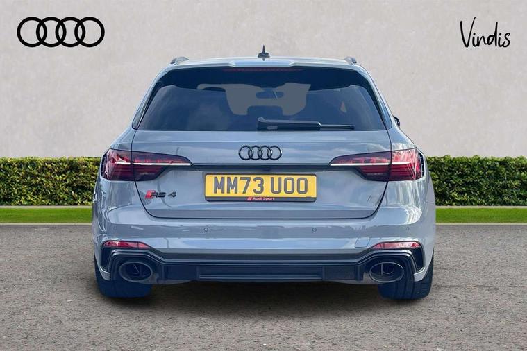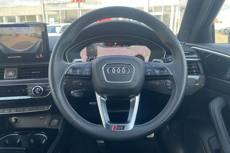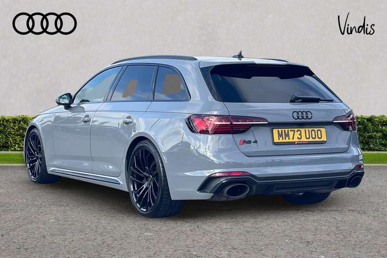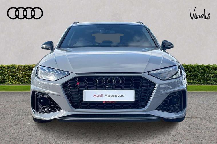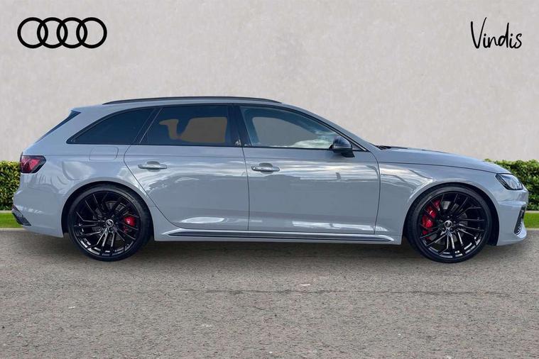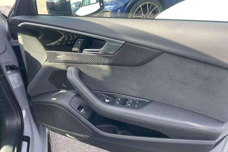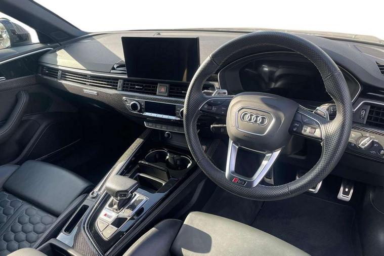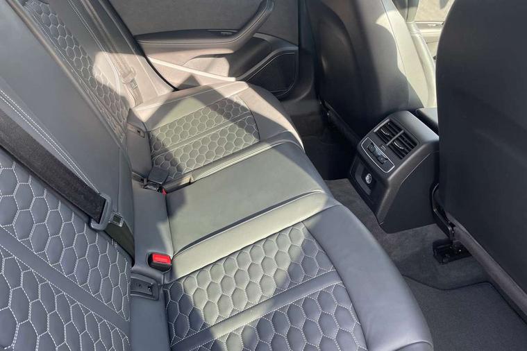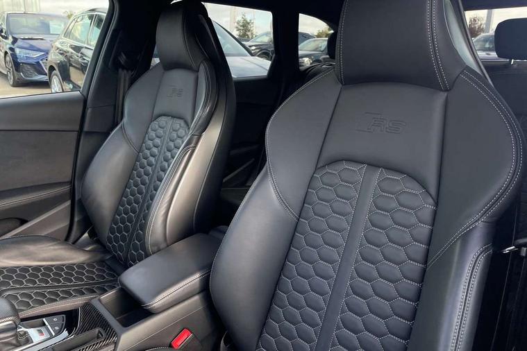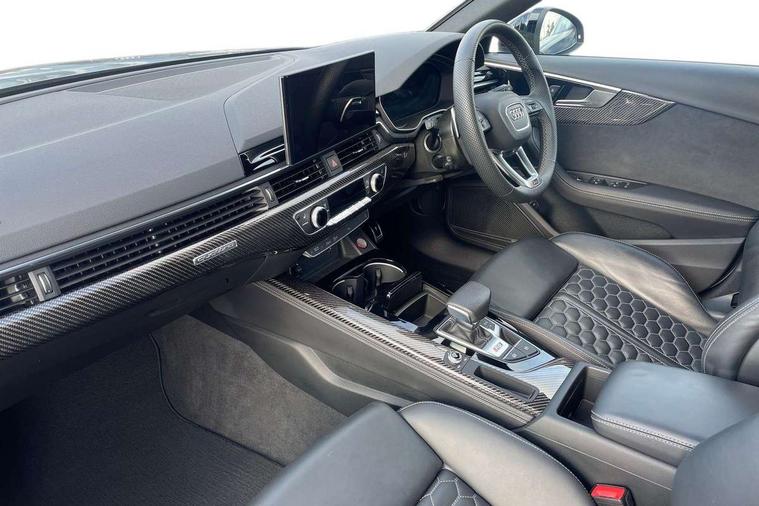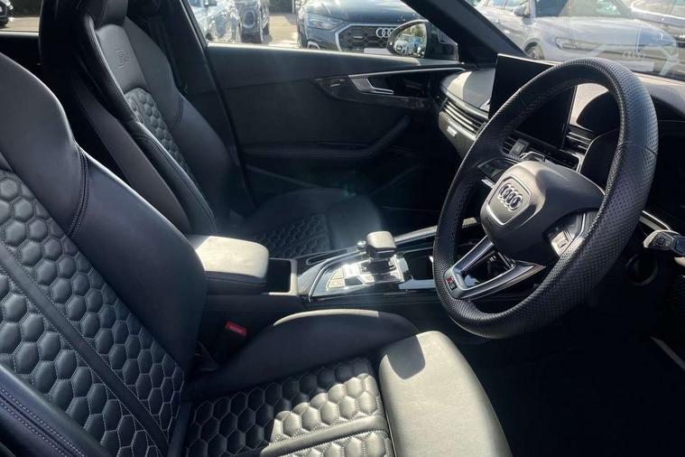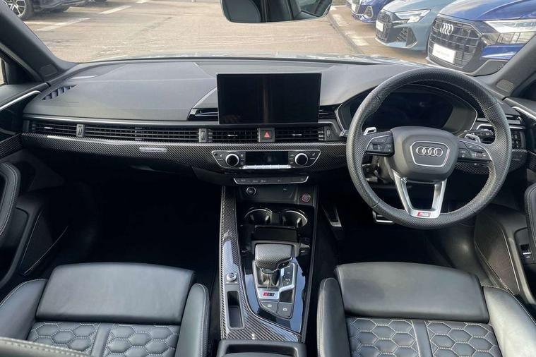 7" Colour driver information system, Audi connect safety and service (e-call), Audi drive select, Audi side assist, Audi smartphone interface, Audi virtual cockpit with RS specific display, Automatic start-stop system with coasting functionality and efficiency programme, Bluetooth interface, Camera based traffic sign recognition, Electromechanical power steering, Email, calendar and text messages displayed via MMI, Lane departure warning, MMI Navigation plus with MMI touch includes 10.1" high resolution colour MMI display, 3D map, Power opening/closing tailgate, Service interval indicator, Voice control system, 58 Litre fuel tank, Quattro sports differential, 2 USB charging ports, Audi sound system, DAB digital radio module, 3rd brake light, Acoustic windscreen, Audi Beam uses LEDs to project the RS logo onto ground as you exit your RS4, Audi matrix LED headlights with LED rear lights + dynamic front and rear indicators, Audi rings and lettering glossy black, Auto dimming rear view mirror, Automatic headlights + automatic windscreen wipers, Black roof rails, Blue tinted glass, Body colour door handles, Electric front windows, Electric rear windows, Electrically folding auto dimming/adjustable/heated door mirrors with memory function, LED side indicators and kerb view function for passenger side, Flared front and rear wheel arches, Front bumper with enlarged air inlets, Headlight range control, High beam assistant, High gloss black door mirror housing, High gloss black triangular aperture at rear door, Honeycomb design grille with quattro logo, Lateral air inlets next to front headlights, LED daytime running lights, LED indicators in door mirrors, Privacy glass with rear acoustic glazing, Rain and light sensors, Rear side wing doors, Rear wiper, Roof spoiler, RS 4 badges on grille and rear, RS4 dual branch chrome tailpipes with left and right oval pipes, 3 seat bench in 2nd row, 40/20/40 split folding rear seats with rear centre armrest, Black cloth headlining, Deluxe 3 zone electronic climate control, Door armrests and knee pad in leatherette, Electric load area cover, Electrically adjustable front seats, Front centre armrest, Front headrests, Heated front seats, Heated steering wheel, Height and reach adjustable steering wheel with full size airbag, Illuminated door sill trims with RS4 logo, ISOFIX child seat mounting and top tether, Luggage compartment carpet, Rear headrests, Retractable load area cover, Single front passenger seat, Stainless steel pedals, Sunvisors with vanity mirrors, Tool kit, Carbon black styling pack - RS4, LED Interior light pack - RS4, Non Smokers pack, 3 point seatbelts on all rear seats, Adaptive driver and front passenger airbags, Attention and drowsiness assist, Electromechanical parking brake, Electronic stabilisation control including ABS, ASR and EDL, Enhanced braking system, Front head airbags, Front seatbelt pretensioners + load limiters, Front side airbags, Hill hold assist, Manual child lock in rear doors, Multi-Collision braking, Pop-up bonnet for pedestrian protection, Pre sense city, Rear side airbags, Seatbelt monitoring, Traction control, Tyre pressure warning, Variable restraint system, Warning triangle and first aid kit, Anti theft alarm, Anti-theft wheel bolts, Immobiliser, Keyless Go, Remote central locking, Remote control key with RS emblem, Carbon twill inlays, 20" 5 segment spoke evo design glossy black sport alloy wheels, Tyre repair kit,