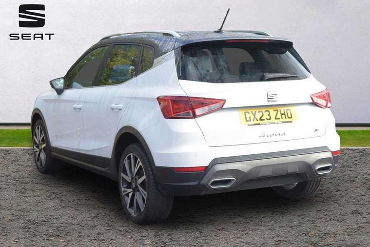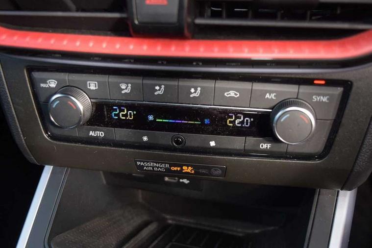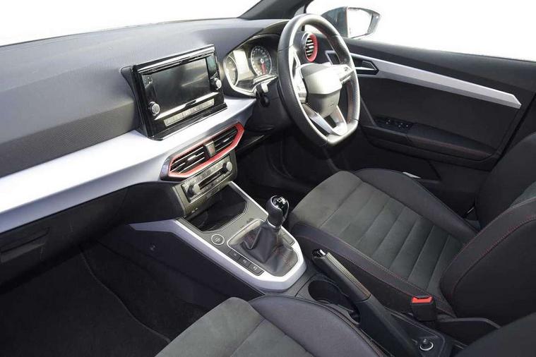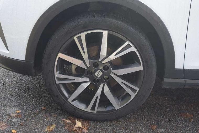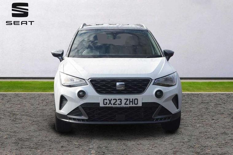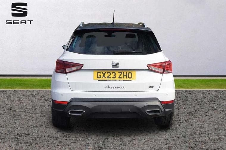 'Lights On' Reminder warning buzzer, Analogue cockpit with physical dials, Digital clock, E-call, Electric speed sensitive power steering, Full Link Smartphone Integration with Mirror Link, Apple Car Play, Google Android Auto with USB Type C cable for Apple and Android compatibility, Lane keeping system, Low fuel warning light, Outside temperature display, Rear parking sensor, RPM counter, Seat connect with safety, service and remote, SEAT Drive profile - Four different models normal-sport-eco-individual, steering response, throttle response, Trip computer, Wireless phone charger, Bluetooth interface for hands free and audio streaming, DAB digital radio and AM/FM radio, Media system with 8.25" colour touchscreen with USB port (type c), Steering wheel mounted audio controls, Anti theft roof antenna, Automatic activation of hazard warning lights, Body coloured bumpers, Body coloured door handle inserts, Chrome roof rails and window surrounds, Dark tinted rear windows, Dimming rear view mirror, Electric front/rear windows, Electrically adjustable and heated door mirrors, Front fog lights with cornering function and rear fog light, FULL LED automatic headlights with dynamic headlight range control, coming and leaving home, LED daytime running lights, LED rear tail lights and licence plate lights, Protective side mouldings, Rear side wing doors, Rear spoiler, Rear window wash/wipe, Roof colour door mirrors, Third brake light, Twin exhaust pipe styling hidden exhaust pipe, Visible VIN plate, Windshield wiper with intermittent control and potentiometer, 2 cupholders, 3 seat bench in 2nd row, 60/40 split folding rear seat, Aircare filter, Black interior roof, Double boot floor, Driver sunvisor with covered mirror + card holder, Dual zone climate control, Front comfort seats, Front courtesy light with 2x front and 2x rear reading lights, Gear shift indicator, Height adjustable front seats, Height/reach adjustable steering column, Illuminated boot, Instrument lighting with brightness control, Interior ambient lighting, Interior light in footwell, central console and door panel, ISOFIX points in outer rear seats with top tether anchorage points, Microsuede cloth upholstery, Passenger sunvisor with vanity mirror, Perforated flat bottomed leather steering wheel/gear knob/handbrake with red stitching and FR logo, Single front passenger seat, Two front and three rear height adjustable headrests, Interior chrome pack - Arona, 3 point seatbelts on all rear seats, ABS, Active front headrests, Child locks on rear doors, Driver and front passenger airbags with front passenger airbag de activation, front side and curtain airbags, Electronic stability control, Emergency Brake Assist (EBA) and front assist, Front and rear seatbelt reminder, Hill hold control, Multi-Collision braking, Tiredness recognition system, Traction control, Tyre pressure monitoring system, Alarm with back-up horn, Electronic engine immobiliser, KESSY Keyless entry and go, Locking wheel bolts, Remote central locking + deadlocks, Tow away protection, Titan black dashboard,