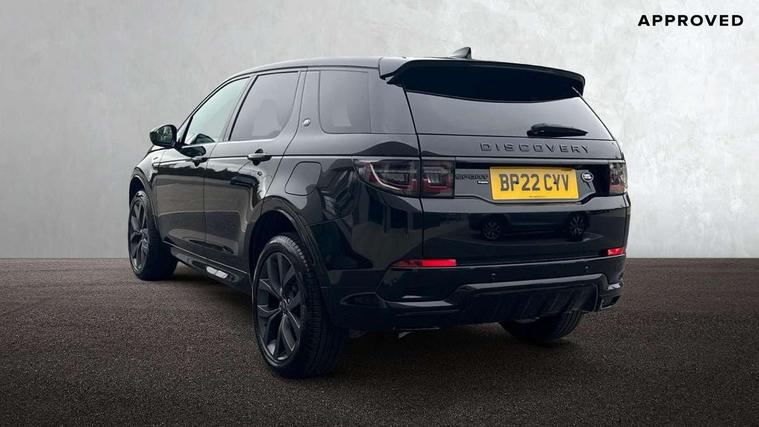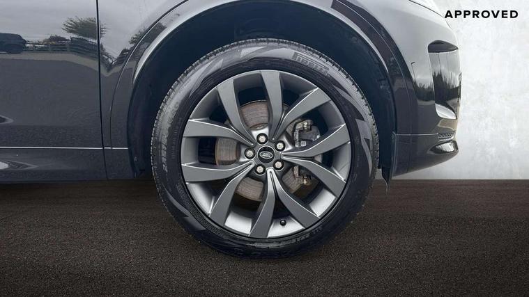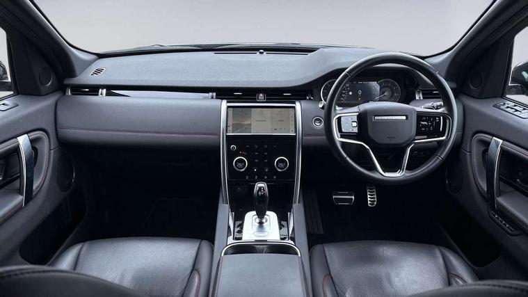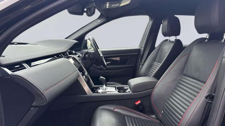 10" touch screen, Adaptive cruise control, Android Auto, Apple CarPlay, Blind spot assist, Clear exit monitor, Driver condition monitor, eCall emergency call system, Front and rear parking aid, InControl remote premium, Lane keep assist, Locking fuel flap, PAS, Pivi Pro connected navigation system with upgraded Infotainment, Powered tailgate/boot lid, Push button start, Rear collision monitor, Rear traffic monitor, Service interval indicator, Traffic sign recognition with adaptive speed limiter, Trip computer, Wade Sensing, 7 kW onboard charger, All terrain progress control, Coil suspension system, Dynamic stability control, Home charging cable, Public charging cable, Terrain Response 2, Bluetooth connectivity including audio streaming, Digital Audio Broadcast radio-DAB, Steering wheel mounted audio controls, 3rd brake light, Automatic headlight levelling, Automatic headlights, Electric front/rear windows, Electric heated/power fold door mirrors with approach lights and auto dimming driver side, Fixed panoramic sunroof with powered sunblind, Front and rear recovery eyes, Heated rear window, Heated windscreen including heated washer jets, Privacy glass, R Dynamic badge, Rain sensing windscreen wipers, Rear fog lights, Rear side wing doors, Rear wing door, Rear wiper, 5 seats, Bright metal pedals, Centre console with armrest, Footwell lights, Front and rear grab handles, Front passenger isofix child seat attachment, Loadspace cover, Loadspace light, Overhead lighting console, Overhead stowage for sunglasses, Rear headrests, Satin chrome gearshift paddles, Sunvisors with illuminated vanity mirrors, Tilt/reach adjustable steering wheel, Black exterior pack - Discovery sport R-Dynamic SE/HSE, Online pack with data plan - Discovery, 3 point seatbelts on all seats, ABS, Brake hold function, Child locks on rear doors, Collision mitigation braking system, Cornering brake control (CBC), Driver/Front Passenger airbags, Drivers knee airbag, Electronic brake force distribution, Electronic parking brake, Emergency brake assist, ESP + traction control, Hill descent control, Hill launch assist, Pedestrian airbag system, Rear seat ISOFIX, Roll stability control, Side and curtain airbags for front and 2nd row seats, Trailer stability control, Tyre pressure monitoring system, Battery Back Up System (BBUS) with tilt sensor, Global lock and unlock switch on driver door, Intrusion sensor, Keyless entry, Locking wheel nuts, Centre stack rails in noble chrome,