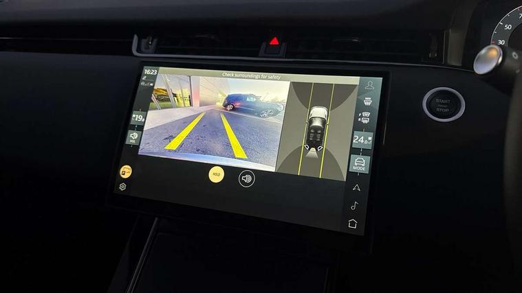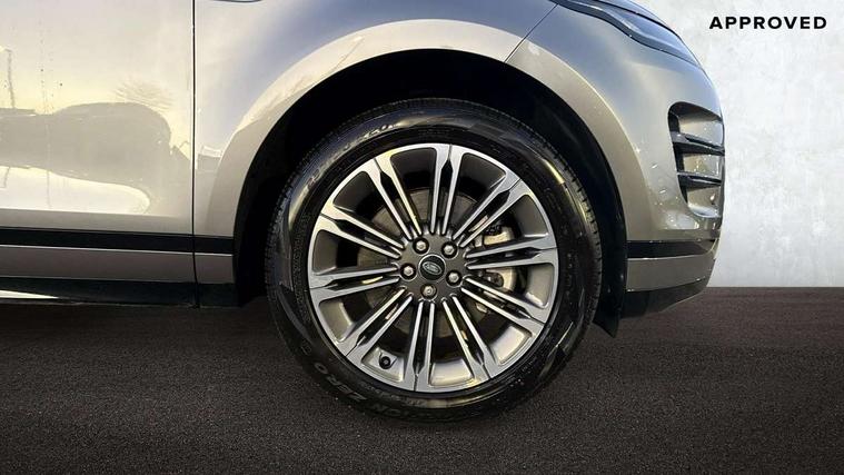 11.4" touch screen, 3D 360 degree surround camera with wade sensing, Adaptive cruise control, Android Auto, Apple car play, Blind spot assist, Bluetooth connectivity, Brake pad wear indicator warning light, Driver condition monitor, eCall emergency system, Eco mode, Electronic power assisted steering (EPAS), Front and rear parking aid, InControl remote, Interactive driver display, Land Rover InControl apps, Lane keep assist, Pivi pro connected includes diamond pivi variant, smart settings, connected navigation pro, nuance speech licence, Powered tailgate/boot lid, Rear collision monitor, Rear traffic monitor, Tailgate, Traffic sign recognition with adaptive speed limiter, Voice control system, Wireless device charging, All terrain progress control, Electric rear axle drive, Home charging cable, Large fuel tank, Passive suspension, Public charging cable, Terrain Response 2, Digital Audio Broadcast radio-DAB, Steering wheel mounted controls, Acoustic laminated windscreen, Auto headlights, Auto high beam assist, Automatic headlight levelling, Electric windows with one touch open/close and anti trap, Flush deployable exterior door handles, Front and rear recovery eyes, Heated rear window with timer, Heated washer jets, Heated windscreen, LED headlights with signature DRL and LED tail Lights, Power fold, auto-dimming, heated door mirrors with approach lights and auto dimming driver side, Rain sensing windscreen wipers, Rear animated directional indicators, Rear fog lights, Rear side wing doors, Rear wiper, Tailgate spoiler, Third brake light, Winter wiper park position, 12 way driver memory and 10 way passenger electric front seats with 2 way manual headrest + 4 way lumbar support, 40:20:40 split folding rear seats with centre headrest and armrest, Bright metal pedals, Carpet mats, Chrome tread plates with range rover branding Includes stainless steel loadspace scuff plate with etched graphic, Customer configurable single point entry, Front and rear cupholders, Heated front seats, Heated steering wheel, Isofix system on outer rear seats, Manually adjustable steering column, Overhead lighting console, Overhead stowage for sunglasses, Passive front head restraints, Rear air vents, Rear head restraints, Satin chrome gearshift paddles, SE Grained leather upholstery, Single passenger seat, Standard steering wheel with Moonlight Bezel, Sunvisors with illuminated vanity mirrors, Twin sliding front centre armrest, Power socket pack 2 - Evoque, 3 rear 3 point seatbelts, Anti-lock braking system (ABS), Brake hold function, Customer configurable autolock, DSC - Dynamic Stability Control, Electronic brake force distribution, Electronic parking brake, Electronic traction control, Emergency braking, Front and rear seatbelt reminder, Hill descent control, Hill launch assist, Low traction launch, Occupant protection assist, Passenger seat occupant detector, Power operated child locks, Roll stability control, Six airbags - Driver and passenger airbags/driver knee airbag/front side airbag and curtain airbags, Torque vectoring brake, Tyre pressure monitoring system, Alarm, Immobiliser, Intrusion sensor, Keyless entry, Locking wheel nuts, All season tyres,
