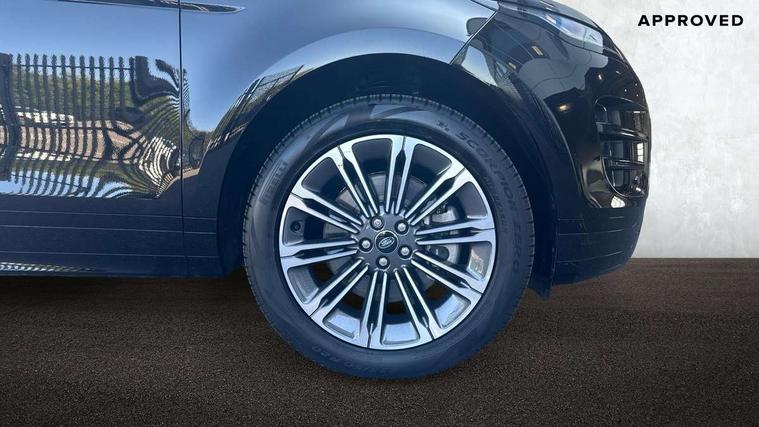 11.4" touch screen, Adaptive cruise control, Android Auto, Apple car play, Blind spot assist, Bluetooth connectivity, Brake pad wear indicator warning light, Driver condition monitor, eCall emergency system, Eco mode, Electronic power assisted steering (EPAS), Front and rear parking aid, InControl remote, Interactive driver display, Land Rover InControl apps, Lane keep assist, Pivi pro connected includes diamond pivi variant, smart settings, connected navigation pro, nuance speech licence, Powered tailgate/boot lid, Rear collision monitor, Rear traffic monitor, Traffic sign recognition with adaptive speed limiter, Voice control system, Wireless device charging, All terrain progress control, Diesel exhaust fluid (DEF) large tank, Efficient Driveline, Large fuel tank, Passive suspension, Terrain Response 2, Digital Audio Broadcast radio-DAB, Steering wheel mounted controls, Acoustic laminated windscreen, Auto headlights, Automatic headlight levelling, Electric windows with one touch open/close and anti trap, Flush deployable exterior door handles, Front and rear recovery eyes, Heated rear window with timer, Heated washer jets, Heated windscreen, Pixel LED headlights with signature DRL and LED tail Lights, Power fold, auto-dimming, heated door mirrors with approach lights and auto dimming driver side, Rain sensing windscreen wipers, Rear animated directional indicators, Rear fog lights, Rear side wing doors, Rear wiper, Side repeater indicators in mirror, Tailgate spoiler, Third brake light, Winter wiper park position, 14 way driver memory electric front seats with 2 way manual headrests + 4 way lumbar support, bolsters, 40:20:40 split folding rear seats with centre headrest and armrest, Ambient interior lighting, Bright metal pedals, Carpet mats, Chrome tread plates with range rover branding Includes stainless steel loadspace scuff plate with etched graphic, Customer configurable single point entry, Electrically adjustable steering column with memory function and easy entry/exit, Front and rear cupholders, Heated steering wheel, Isofix system on outer rear seats, Overhead lighting console, Overhead stowage for sunglasses, Passive front head restraints, Rear air vents, Rear head restraints, Satin chrome gearshift paddles, Single passenger seat, Sunvisors with illuminated vanity mirrors, Twin sliding front centre armrest, Online pack with data plan - Evoque, Power socket pack 2 - Evoque, 3 rear 3 point seatbelts, Anti-lock braking system (ABS), Brake hold function, Customer configurable autolock, DSC - Dynamic Stability Control, Electronic brake force distribution, Electronic parking brake, Electronic traction control, Emergency braking, Front and rear seatbelt reminder, Hill descent control, Hill launch assist, Low traction launch, Occupant protection assist, Passenger seat occupant detector, Power operated child locks, Roll stability control, Six airbags - Driver and passenger airbags/driver knee airbag/front side airbag and curtain airbags, Torque vectoring brake, Tyre pressure monitoring system, Alarm, Immobiliser, Intrusion sensor, Keyless entry, Locking wheel nuts,