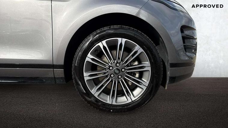 11.4" touch screen, Adaptive cruise control, Android Auto, Apple car play, Blind spot assist, Bluetooth connectivity, Brake pad wear indicator warning light, Driver condition monitor, eCall emergency system, Eco mode, Electronic power assisted steering (EPAS), Front and rear parking aid, InControl remote, Interactive driver display, Land Rover InControl apps, Lane keep assist, Pivi pro connected includes diamond pivi variant, smart settings, connected navigation pro, nuance speech licence, Powered tailgate/boot lid, Rear collision monitor, Rear traffic monitor, Traffic sign recognition with adaptive speed limiter, Voice control system, Wireless device charging, All terrain progress control, Diesel exhaust fluid (DEF) large tank, Efficient Driveline, Large fuel tank, Passive suspension, Terrain Response 2, Digital Audio Broadcast radio-DAB, Steering wheel mounted controls, Acoustic laminated windscreen, Auto headlights, Automatic headlight levelling, Electric windows with one touch open/close and anti trap, Flush deployable exterior door handles, Front and rear recovery eyes, Heated rear window with timer, Heated washer jets, Heated windscreen, Pixel LED headlights with signature DRL and LED tail Lights, Power fold, auto-dimming, heated door mirrors with approach lights and auto dimming driver side, Rain sensing windscreen wipers, Rear animated directional indicators, Rear fog lights, Rear side wing doors, Rear wiper, Side repeater indicators in mirror, Tailgate spoiler, Third brake light, Winter wiper park position, 14 way driver memory electric front seats with 2 way manual headrests + 4 way lumbar support, bolsters, 40:20:40 split folding rear seats with centre headrest and armrest, Ambient interior lighting, Bright metal pedals, Carpet mats, Chrome tread plates with range rover branding Includes stainless steel loadspace scuff plate with etched graphic, Customer configurable single point entry, Electrically adjustable steering column with memory function and easy entry/exit, Front and rear cupholders, Heated steering wheel, Isofix system on outer rear seats, Overhead lighting console, Overhead stowage for sunglasses, Passive front head restraints, Rear air vents, Rear head restraints, Satin chrome gearshift paddles, Single passenger seat, Sunvisors with illuminated vanity mirrors, Twin sliding front centre armrest, Online pack with data plan - Evoque, Power socket pack 2 - Evoque, 3 rear 3 point seatbelts, Anti-lock braking system (ABS), Brake hold function, Customer configurable autolock, DSC - Dynamic Stability Control, Electronic brake force distribution, Electronic parking brake, Electronic traction control, Emergency braking, Front and rear seatbelt reminder, Hill descent control, Hill launch assist, Low traction launch, Occupant protection assist, Passenger seat occupant detector, Power operated child locks, Roll stability control, Six airbags - Driver and passenger airbags/driver knee airbag/front side airbag and curtain airbags, Torque vectoring brake, Tyre pressure monitoring system, Alarm, Immobiliser, Intrusion sensor, Keyless entry, Locking wheel nuts,