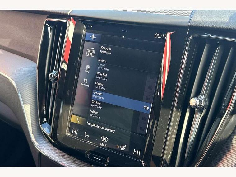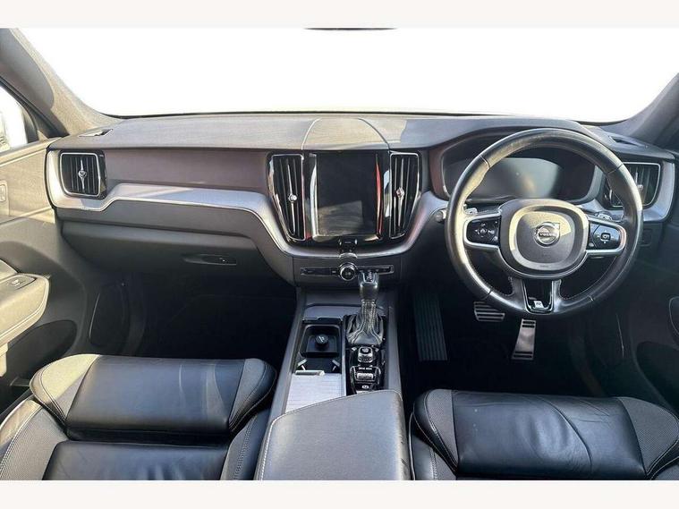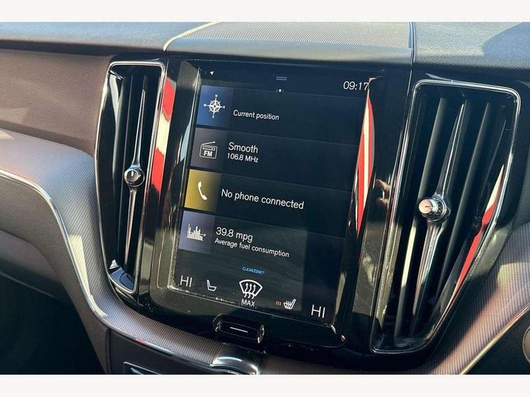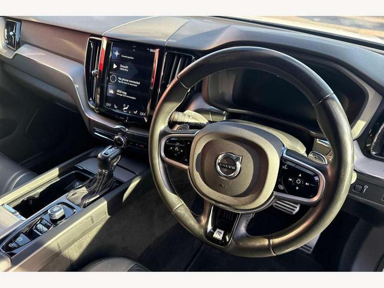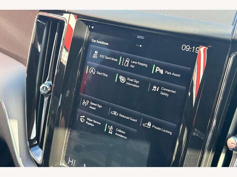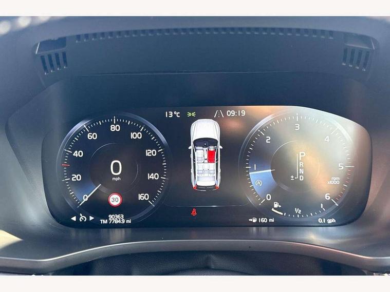 12.3" Active TFT crystal driver's instrument display, 9" Touch screen, Adjustable steering wheel force, Bluetooth hands free telephone kit, Drive mode selector, Front collision warning with full auto brake, Intelligent driver information system (IDIS), Lane keep assist with driver alert control, Oncoming Lane Mitigation, Power tailgate, Remote fuel flap release, Road Edge Detection, Service interval indicator, Speed limiter, Speed sensitive steering, Trip computer, Voice control system, Volvo on call, Diesel particulate filter, DAB Digital radio, Adaptive brake lights with high level LED brake lights, Auto dimming interior + exterior mirrors, Body colour bumpers, Dark tinted glass for rear windows + rear screen + side luggage area window, Dual integrated exhaust pipes with high gloss black surround, Electric folding door mirrors, Electric front+rear windows, Electrically adjustable and heated door mirrors, Headlamp levelling, High gloss black door mirrors, High gloss black roof rails, High gloss black window frame surround, Home safe and approach lighting, Illuminated side steps, LED front fog lights, LED Headlights + Active high beam incorporating daytime running lights, R Design tread plates, Rain sensor with automatic windscreen wiper activation, Rear wiper, Roof antenna, Roof spoiler, Tinted windscreen, Visible VIN plate, 12V power point in luggage area, 3 spoke leather steering wheel with chrome trim, 60/40 split folding rear seat, A-pillar parking ticket holder, B Pillar ventilation, Black headlining, Bright metal luggage threshold, Centre armrest storage illumination, Centre console cupholders and storage, Contour sports seats with leather/textile upholstey, Extended front seat cushions, Front and rear door pocket and front cupholder illumination, Front footwell illumination, Front reading lights, Glovebox illumination, Head restraints for all seats, Heated front seats, Height/reach adjustable steering column, High gloss black steering wheel remote infotainment controls, Illuminated driver/passenger vanity mirrors, Illuminated luggage compartment, Load cover, Load protection net, Lockable glovebox, Multicolour theatre lights, Nappa Leather Key Integrated Remote, Pollen filter, Rear armrest / integral cup holders / storage tray, Rear footwell illumination, Rear seat concealed storage, Sport leather gear knob, Sport pedals, Sports floor mats, Sports leather steering wheel with gearshift paddles, Tailgate illumination and ambient door lighting, Theatre dimming interior lights, Underfloor stowage compartment, Vanity mirror with ticket holder, WHIPS - Whiplash Protection System, 5 three point seatbelts, ABS/EBD, City safety with steering support with Pedestrian + cyclist + large animal detection + front collision warning with full auto brake, Curtain airbags, Drivers knee airbag, DSTC-Dynamic Stability and Traction Control, Dual stage driver/passenger airbags, EBA, Electronic parking brake with auto hold, Fasten seatbelt reminder, First aid kit, HBA (Hydraulic Brake Assist), Hill descent control, Hill start assist, Passenger airbag deactivate switch, Road sign information display, Run off Road Protection, Seatbelt pre-tensioners, SIPS airbags, Tyre pressure monitor, Warning triangle, Anti-theft alarm including immobiliser/volume sensor + level sensor, Key integrated remote control central locking + fuel flap with deadlocking system and auto open/close power windows, Locking wheel nuts, Private locking for tailgate, Metal mesh inlays,