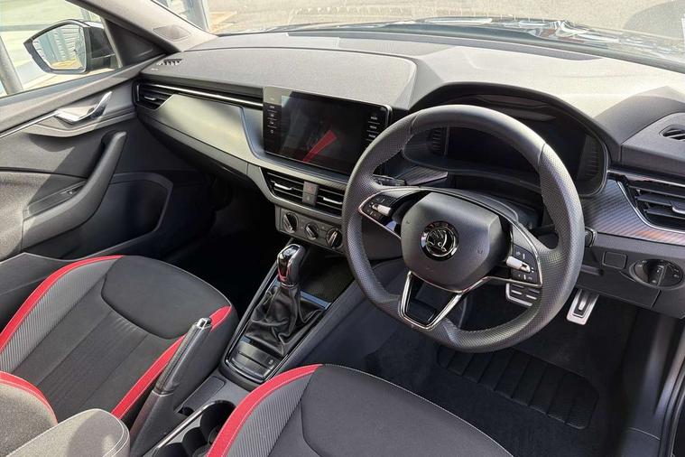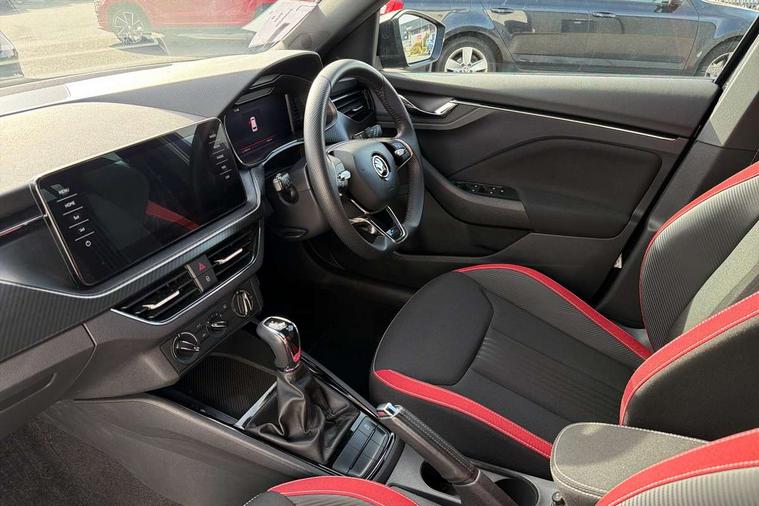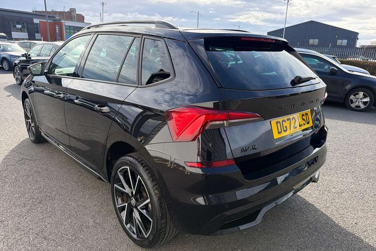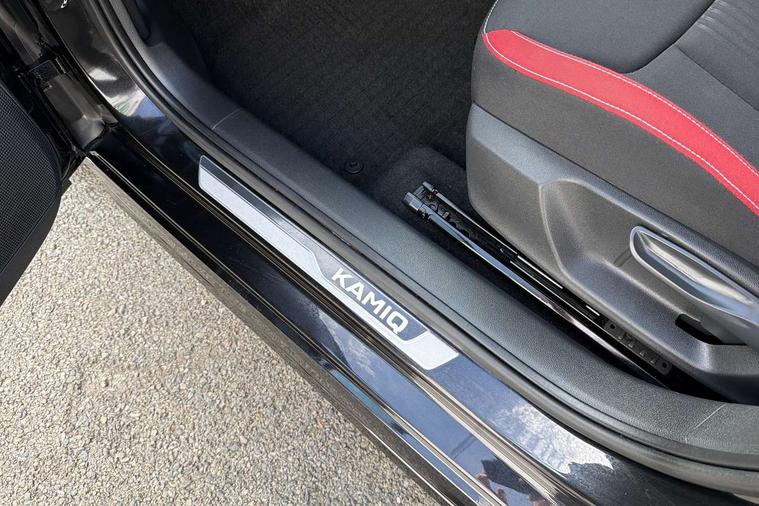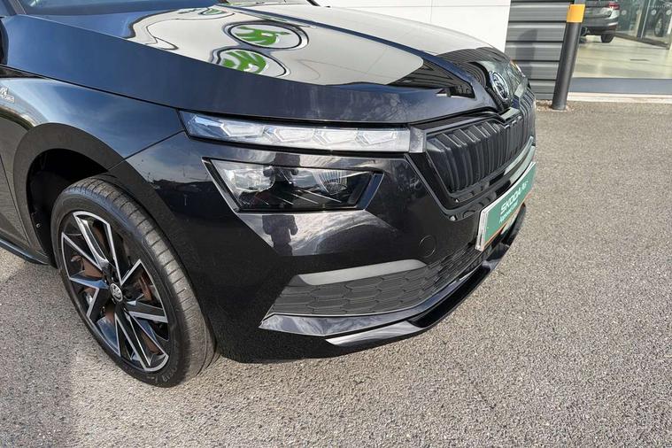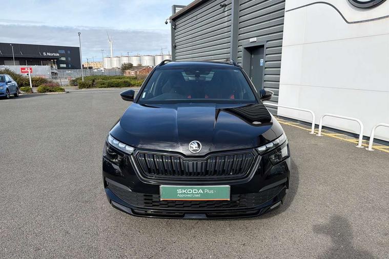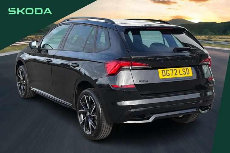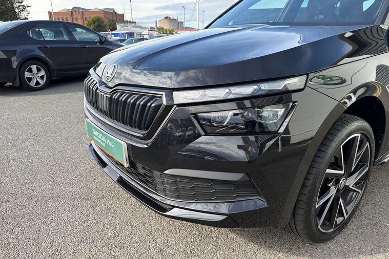 Amundsen satellite navigation with 9.2" glass colour touchscreen display, voice control, virtual cockpit, web radio and traffic sign recognition, Bluetooth system, E-call, Front assist system, Gesture control, PAS, Service indicator, Speed limiter, Virtual cockpit with 10.25" display, Wireless SmartLink for apple car play, android auto and mirrorlink, 8 Speakers, Auxiliary input socket, DAB Digital radio, Black door mirrors, Black radiator grille, Black rear diffuser, Body colour bumpers, Body colour door handles, Body colour roof spoiler, Boot lettering in black, Chrome grille surround, Dimming rear view mirror with black surround, Electrically adjustable and heated door mirrors, Front and rear electric windows, Front sport bumper, Full LED headlights with adaptive front light system and front cornering fog lights, Headlight range control, Heated rear window, High functionality rear led lights with dynamic indicators, KAMIQ Door sills, LED daytime running lights, Light sensors, Monte carlo plaque, Panoramic sunroof with black roof rails, Privacy glass, Rear fog lights, Rear side wing doors, Rear wiper, 12V Accessory socket in centre console, 3 seat bench in 2nd row, Aluminium pedals, Black ceiling for black/beige interior, Black roof lining, Chrome inner door handles, Cloth upholstery, Front head restraints, Glove compartment with illumination, Ice scraper, Isofix child seat fittings on outer rear seats, ISOFIX on front passenger seat, Leather gear lever, Manual lumbar support for front seats, Rake/reach adjustable steering wheel, Reading lights, Single front passenger seat, Sports seats, Sun visors with illumination on front passenger, Textile floor mats, Third rear headrest, Top tether for front passenger seat, Umbrella in driver's door, 3x3 point rear seatbelts, Airbags - driver and front passenger, ESP, Front passenger airbag deactivation switch, Front side airbags with curtain airbags, Hill hold control, Manual parking brake, Manual rear child locks, One tone horn, Rear disc brakes, Seatbelt reminder for driver an co-driver, Traction control, Tyre pressure monitor, Anti-theft alarm system with interior monitoring, backup horn, towing protection and remote central locking with SAFE system, Anti-theft wheel bolts, Electronic engine immobilizer, Chrome air vent surrounds, 18" Vega alloy wheels in black,