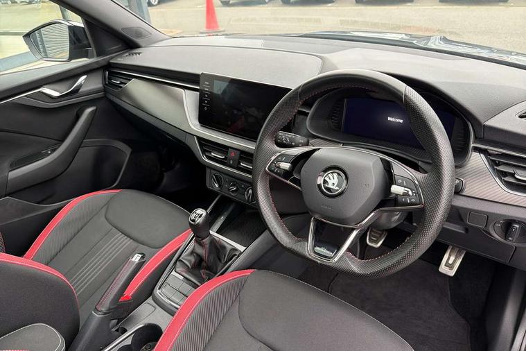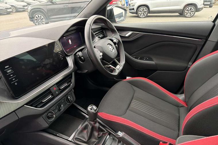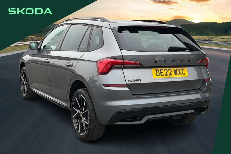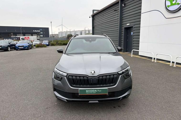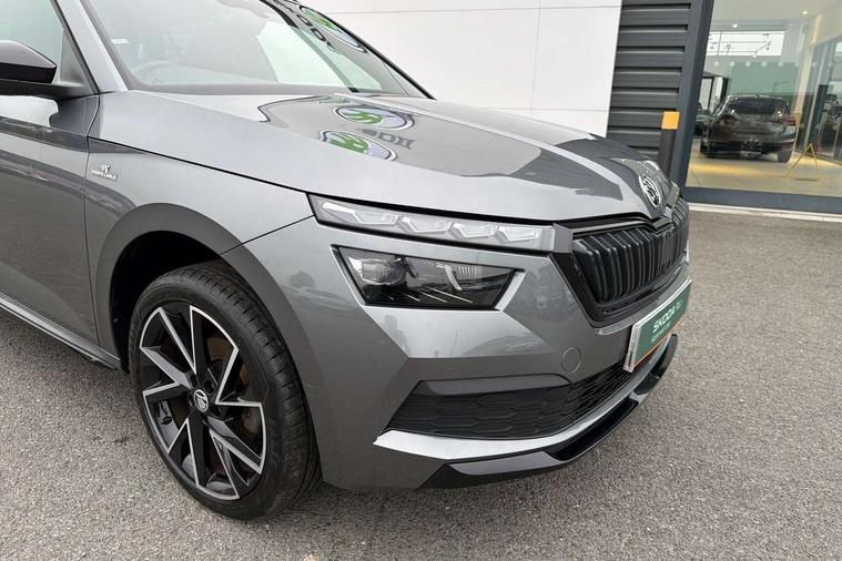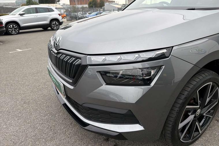 Amundsen satellite navigation with 9.2" glass colour touchscreen display, voice control, virtual cockpit, web radio and traffic sign recognition, Bluetooth system, E-call, Front assist system, Gesture control, PAS, Service indicator, Speed limiter, Virtual cockpit with 10.25" display, Wireless SmartLink for apple car play, android auto and mirrorlink, 8 Speakers, Auxiliary input socket, DAB Digital radio, Black door mirrors, Black radiator grille, Black rear diffuser, Body colour bumpers, Body colour door handles, Body colour roof spoiler, Boot lettering in black, Chrome grille surround, Dimming rear view mirror with black surround, Electrically adjustable and heated door mirrors, Front and rear electric windows, Front sport bumper, Full LED headlights with adaptive front light system and front cornering fog lights, Headlight range control, Heated rear window, High functionality rear led lights with dynamic indicators, KAMIQ Door sills, LED daytime running lights, Light sensors, Monte carlo plaque, Panoramic sunroof with black roof rails, Privacy glass, Rear fog lights, Rear side wing doors, Rear wiper, 12V Accessory socket in centre console, 3 seat bench in 2nd row, Aluminium pedals, Black ceiling for black/beige interior, Black roof lining, Chrome inner door handles, Cloth upholstery, Front head restraints, Glove compartment with illumination, Ice scraper, Isofix child seat fittings on outer rear seats, ISOFIX on front passenger seat, Leather gear lever, Manual lumbar support for front seats, Rake/reach adjustable steering wheel, Reading lights, Single front passenger seat, Sports seats, Sun visors with illumination on front passenger, Textile floor mats, Third rear headrest, Top tether for front passenger seat, Umbrella in driver's door, 3x3 point rear seatbelts, Airbags - driver and front passenger, ESP, Front passenger airbag deactivation switch, Front side airbags with curtain airbags, Hill hold control, Manual parking brake, Manual rear child locks, One tone horn, Rear disc brakes, Seatbelt reminder for driver an co-driver, Traction control, Tyre pressure monitor, Anti-theft alarm system with interior monitoring, backup horn, towing protection and remote central locking with SAFE system, Anti-theft wheel bolts, Electronic engine immobilizer, Chrome air vent surrounds, 18" Vega alloy wheels in black,