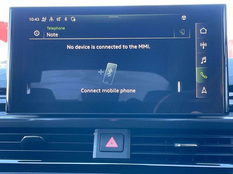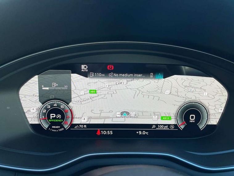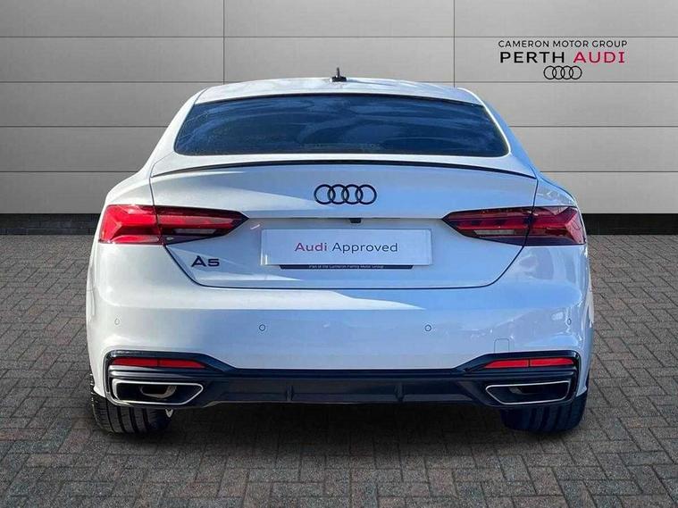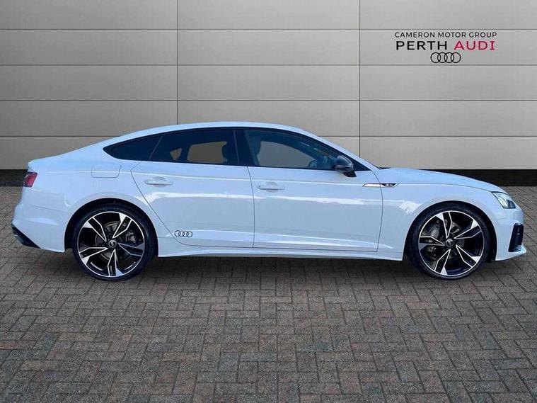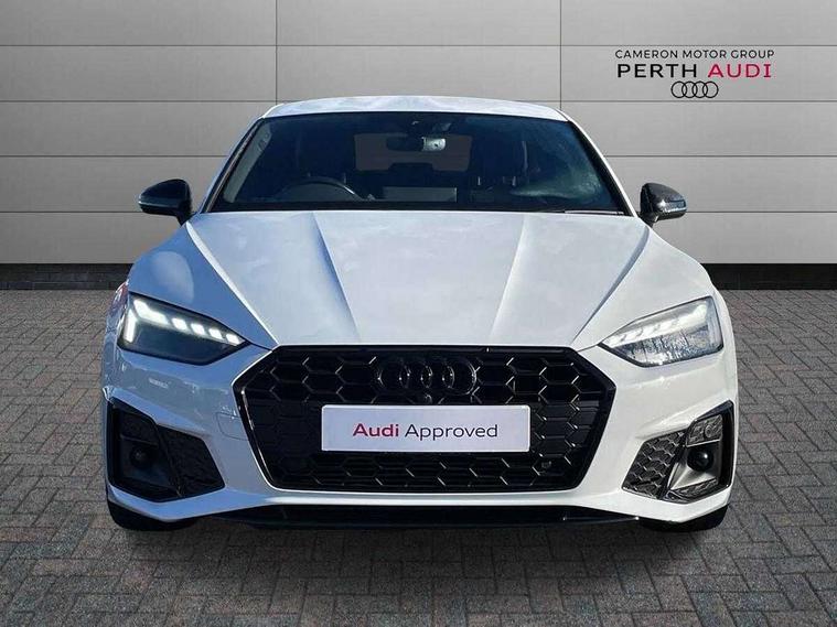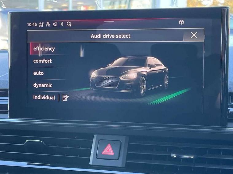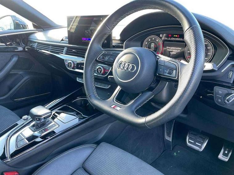 Audi connect safety and service (e-call), Audi connect with Amazon Alexa Integration, Audi drive select (Auto, Comfort, Dynamic, Efficiency and Individual), Audi parking system plus with front and rear sensors, Audi smartphone interface, Audi virtual cockpit - 12.3" full colour digital instrument cluster, vehicle/engine speed, Radio/media information+Driver assistance systems, Automatic start-stop system with coasting functionality and efficiency programme, Bluetooth interface, Electro-mechanical power steering, Email, calendar and text messages displayed via MMI, MMI nav+ with MMI touch - 10.1" high resolution MMI display, touch sensitive, 3D map, route/country info, dynamic route guide, personal route assist, Power operated tailgate, Rear view camera, Service interval indicator, Voice control system, Sports suspension lowered by 23mm, 8 passive loudspeakers, CD player, DAB digital radio reception, Two additional USB ports for rear passenger in rear centre console, Two SDXC card slots, Audi matrix LED headlights with LED rear lights + dynamic front and rear indicators, Auto dimming rear view mirror, Black audi rings decal above rear sills, Black door mirror housings, Body colour door handles, Body colour front spoiler lip, Body colour side sill trim, Electric adjustable heated door mirrors, Electric folding door mirrors, Electric front windows, Front fog lights, Honeycomb structure radiator grille in grained matt black, LED daytime running lights, LED third brake light, Matt aluminium silver tailpipe trim, Privacy glass, Rain and light sensors, Rear diffuser in matt titanium black with trim strip in matt aluminium silver, Rear side wing doors, S model rear spoiler in black, Side air inlets in grained matt black with matt aluminium silver inlay, Sport front and rear bumpers with side skirts, Variable front intermittent wipers, Windscreen with acoustic glazing, 3 Spoke flat bottom high multi-function leather steering wheel with shift paddles, 4 way electric lumbar support for driver and front passenger, 40/20/40 split folding 3 seater rear bench seat, Adjustable steering column, Black cloth headlining, Black perforated leather gearknob, Contrast stitching on seats, steering wheel and gear lever gaiter, Deluxe 3 zone electronic climate control, Front centre armrest, Front head restraints, Front/rear floor mats, Heated front seats, Illuminated door sill trim with S logo, ISOFIX child seat mounting and top tether, Luggage compartment mat, Manual seat adjustment, Rear headrests, Single front passenger seat, Stainless steel pedals, Sunvisors with vanity mirrors, Black styling pack - A5 Coupe/Sportback, LED interior light pack - A5/RS5, 3x3 point rear seatbelts, 6 airbags - Driver, front passenger, curtain and side airbags, Electromechanical parking brake, Electronic Stabilisation Control (ESC) including ABS, ASR and EDL, Front passenger airbag deactivation, Height adjustable front seatbelts, Hill hold assist, Multi collision brake assist, Pop-up bonnet for pedestrian protection, Pre sense city, Seatbelt monitoring, Tyre pressure warning, Variable restraint system, Warning triangle and first aid kit, Anti theft alarm system, Anti theft wheel bolts, Immobiliser, Keyless Go, Remote central locking, Piano black finish inlay, 20" 5 twin spoke polygon design alloy wheels in gloss anthracite black and gloss turned finish, Tool kit, Tyre repair kit,