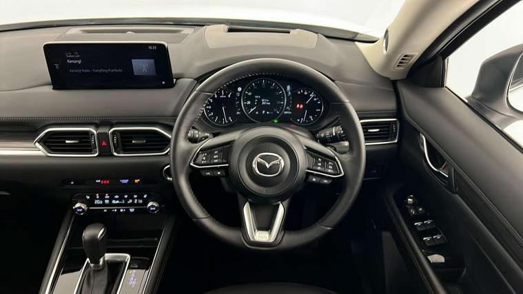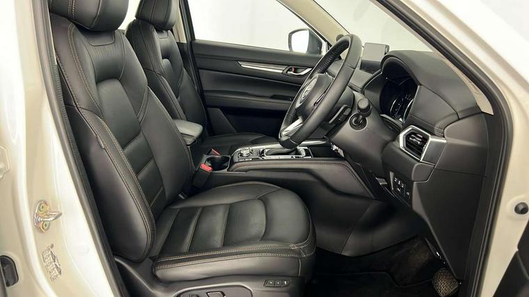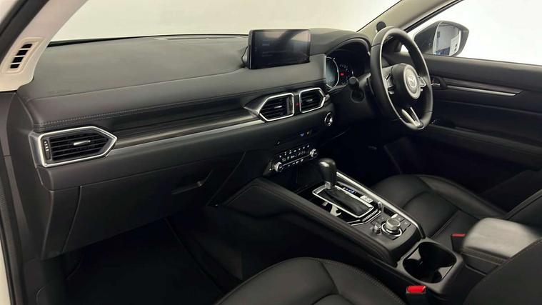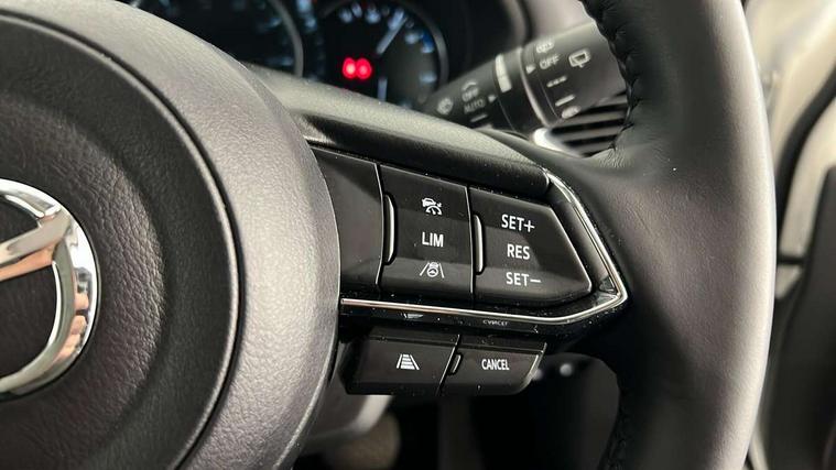 10.25" display with Mazda Connect infotainment, 7" colour TFT display, Advanced blind spot monitoring, Bluetooth connectivity with voice control, Collision prevention assist, Connected services, Cruising Traffic Support, Drive mode selector, Electric power steering, Emergency stop signalling system, Engine start/stop button, Forward collision warning, Front and rear parking sensors, Integrated navigation system, Intelligent speed assist, Lane departure warning system, Lane keep assist, Power liftgate, Qi wireless phone charging, Radar cruise control with Stop and Go, Rear cross traffic alert, Reversing camera, Service indicator, Traffic sign recognition (TSR), Trip computer, Windscreen projected colour active driving display (HUD) with memory, Wireless apple car play/android Auto, Cylinder Deactivation, i-stop, AM/FM radio, Bluetooth audio streaming, Bose premium sound system with 10 speakers, DAB Digital radio, Multimedia Commander including separate volume dial, Steering wheel mounted audio controls, Adaptive front lighting system, Auto dimming rear view mirror, Automatic headlights, Black inlay dashboard panel, Body colour door mirrors, Body colour roof spoiler, Body coloured front and rear black lower bumper mouldings, Coming/leaving home lighting function, Door mirror integrated indicators, Dual chrome tailpipes, Dusk sensitive headlamps, Electric front/rear windows with one touch auto up/down, Front grille in gloss black finish, Front grille in gloss black finish with chrome signature wing, Gloss black B and C pillars garnish, High beam assist, Intermittent rear wash/wipe, LED auto levelling, LED daytime running lights, LED front fog lights, LED Headlights, LED third brake light, Power folding and heated door mirrors, Power tilt/slide sunroof, Privacy glass (rear side windows only), Rain sensing front wipers, Rear side wing doors, Satin black side mouldings, Scuff plates, Shark fin antenna, Signature LED rear combination lights, Variable intermittent front wash/wipe, Vinyl with wood grain metal inlay door trim panel, Windscreen wiper de-icer, 12v electrical power outlet, 3 seat bench in 2nd row, 3 stage heated front seats, 40:20:40 Karakuri fold-flat seat system, 6 way electric adjustable passenger seat, 8 way electric driver seat with lumbar support + memory, Cargo room flat floor board with waterproof undertray, Driver seat power slide, recline and height adjustment, Driver, Front passenger and two rear grab handles with coat hooks, Driver/passenger front seatback pockets, Driver/passenger sunvisors + illuminated vanity mirrors (drivers with ticket holder), Dual zone climate control, Folding centre armrest with 2 cup holders, Front and rear door pockets, Front centre storage with two cupholders, Front passenger seat power slide, recline and height adjustment, Heated steering wheel, Humidity sensor, Illuminated glovebox, Interior dome light with integral spotlight, ISOFIX child seat anchorage points attached on outer rear seats, Karakuri tonneau cover, Leather upholstery, Leather wrapped steering wheel and gear knob, Light roof lining, Luggage compartment LED lightning, Luggage compartment power outlet, Paddle shifts, Rear air vents, Rear headrests, Rear seat recline, Roof mounted sunglasses holder, Single front passenger seat, Three height adjustable head restraints, Tilt/height adjustable steering wheel, USB Connectivity (2x front Type-C, 2x rear Type-B), White interior LED illumination lighting, 3 point front seatbelts with pre-tensioners, 3 rear 3 point seatbelts, ABS, Advanced Smart City Brake Support - SCBS, Child locks on rear doors, Driver and front passenger side airbags, DSTC-Dynamic Stability and Traction Control, Dual front airbags, Electronic brake force distribution, Electronic parking brake with auto hold, ESP, Front and rear curtain airbags, Front passenger airbag deactivation, G-Vectoring control, Hill hold assist, Seatbelt reminder front and rear, Single stage passenger airbags, Smart brake support with forward obstruction warning, Tyre pressure monitoring system, Automatic door locking when moving off, Deadlock, Immobiliser, Power door locks, Remote central locking, Smart keyless entry, Thatcham Cat.1 alarm, 19" diamond cut black alloy wheels, Tyre repair kit,