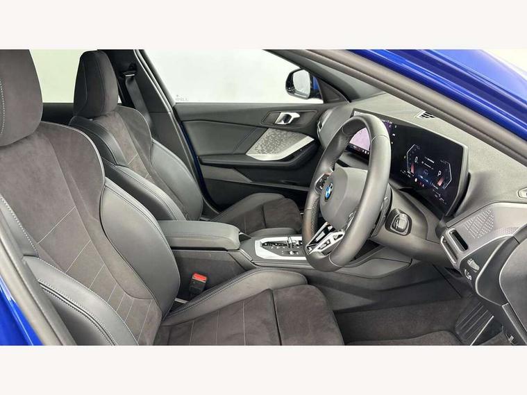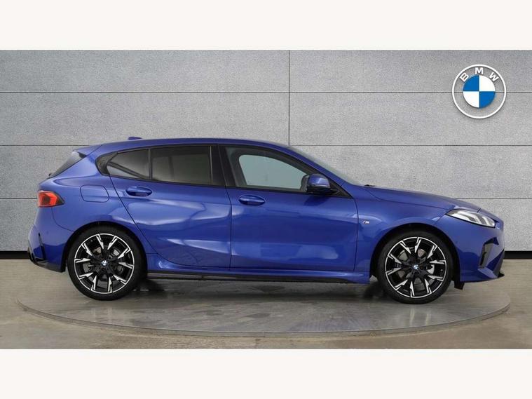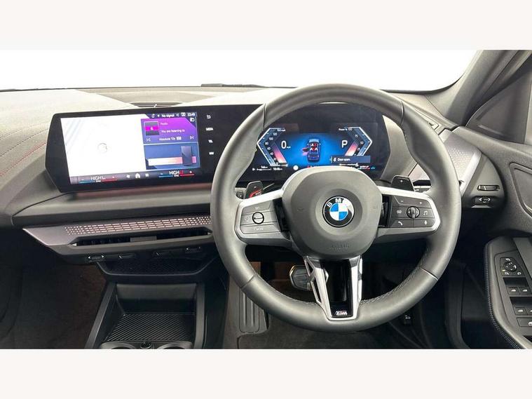 Active guard plus, Attentiveness assist, Bluetooth / WiFi interface for wireless connection of mobile terminal devices and audio streaming, BMW ConnectedDrive online services, BMW Live cockpit plus, BMW Teleservices, Check Control warning system for monitoring of lights and door/luggage compartment open warning, Eco pro mode, Electric power steering with Servotronic steering optimised at all speed ranges, Evasion assistant, Flat airvents in instrument panel with adjustable slats, Front and rear parking sensors, Front axle single joint with specific axle kinematics to minimise drive influences on steering + provide increased rigidity agile driving behaviour, Gearshift time display in manual mode, Integrated owners handbook, Left turn warning with brake function, My modes (Personal / Efficient / Sport), Oil sensor for level and grade, On board computer, Optimum shift indicator, Park assist including reversing assistant, lateral parking aid and reversing assist camera, Personal e-SIM, Personal Profile, Pull away assistant, Rigidly mounted rear subframe - Multi link construction with separate spring / damper configuration and excellent driving characteristics, Speed limit Info including no-overtaking indicator, Speed limiter, 49 litre fuel tank, Aluminium lightweight construction, Anti roll bar front and rear, Balancer shaft, Double VANOS twin scroll turbocharging system, Drive Performance Control, Electronic differential lock, Electronic selector lever, High precision injection, M Adaptive suspension, Petrol Particulate Filter, Steptronic transmission with double clutch, Twin tube gas filled shock absorbers with degressive characteristic curve, VALVETRONIC engine management, DAB Digital radio, Auto dimming rear view mirror, Automatic windscreen wipers and automatic headlight, Body colour door handles, Body colour mirror caps, Body colour roof trims, Chrome 'M' logo side designation, Chrome exhaust twin tailpipes round 90mm in left, Chrome kidney grille frame with Satin Aluminium struts, Direction indicator side lights in exterior mirrors, Electrically adjustable exterior mirror with mirror adjustment switch on drivers armrest and aspheric on driver side, convex on passenger side, Exterior M sport design elements, Fading support, Folding side mirrors with auto dimming/folding wing mirrors with auto dimming, Follow me home headlights, Front and rear bumper system with replaceable deformation elements, Front and rear electric windows with open and close fingertip control, anti trap facility and comfort closing, Front bumper panel with M specific design in vehicle colour with inserts in black high gloss, Front door sill finishers in black plastic with M designation in metallic look, Green tinted heat protection glazing, Heated rear window, High gloss black exterior mirrors, High gloss shadowline window frame, Recess cover mirror frames and B/C pillar embelisher trim, High level third brake light, Integrated front windscreen with washer jets, LED daytime running lights, LED eyebrow turn indicators, LED front fog lights, LED Headlights, Lightweight engineering, M identification on the sides, Matt black air guide grilles, Matt black wheel arch trim, Model badge on tailgate right, Nearside reverse light in rear light cluster, Preparation for high beam assistant, Rain sensor, Rear bumper panel with M-specific design in vehicle colour with inserts in black high gloss, Rear fog lights, Rear side wing doors, Rear window wiper, Shark fin antenna, Side sill covers with M specific design in body colour, Trailer stabilisation logic, Visible VIN plate, Welcome lighting, 12V power socket in front centre console with blanking plug, 3 rear seat head restraints, 3 seat bench in 2nd row, 3 spoke sports leather steering wheel with black leather and stitching, pearl chrome decorative finish, specific M Badge, Anthracite front and rear floor mats, Anthracite headlining, Black boot net with lashing eyes, Cargo function on 2nd seat row, Child seat ISOFIX attachment for two outer rear seats and front passenger seat with anchorage points, Conditioned based service, Driver and front passenger backrest net on rear, Driver and front passenger seat heating, Driver side folding compartment in instrument panel, Folding rear clothes hook, Footrest and pedals in black plastic, Four grab handles integrated in roof lining, Front and rear door pockets with bottle holders, Front and rear side armrest integrated into door trim, Front armrest with storage compartment, Gearshift paddles on steering wheel, Glove compartment, Height adjustable front head restraints, Luggage compartment for bag hooks on left and right, foldable luggage compartment liner and four lashing eyelets, Manual adjust steering wheel, Multi-function controls for steering wheel, Rear seat backrest with manual 60:40 split folding with 3 top tether clips integrated on rear of seat panels, Single front passenger seat, Storage compartment in centre console, Storage compartment in luggage compartment, Stowage of the parcel shelf in luggage compartment trim, Sun visors with vanity mirrors and insert tab, Two front centre console cupholders, Type C two USB ports in rear centre console, Upper retaining strap integrated into backrest rear panels, Connected pack professional - 1 Series, Interior lights pack - 1 Series, M Sport exterior styling aerodynamics pack - 1 Series, 2 tone horn, 3 point seatbelts on all seats, front pyrotechnic belt tensioners, stopper and belt force limiters, rear coded belt buckles, Airbags - Front driver/passenger, front and rear curtain head protection, front side, manual deactivation of front passenger airbag, Anti lock braking system (ABS) with brake assist, BMW emergency call, Brake drying, Braking readiness, Child proof locking system in rear door, Comfort modes, Cornering brake control, Crash sensor activating of airbags, Unlocking doors, hazard warning lights, interior light, safety battery terminal, Driver and front passenger seat belt sec