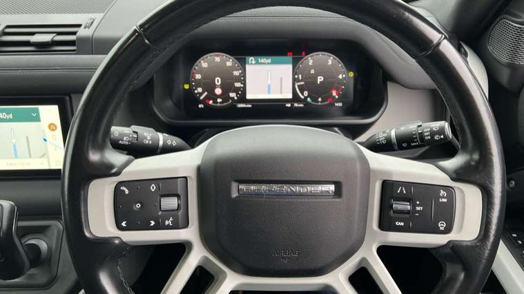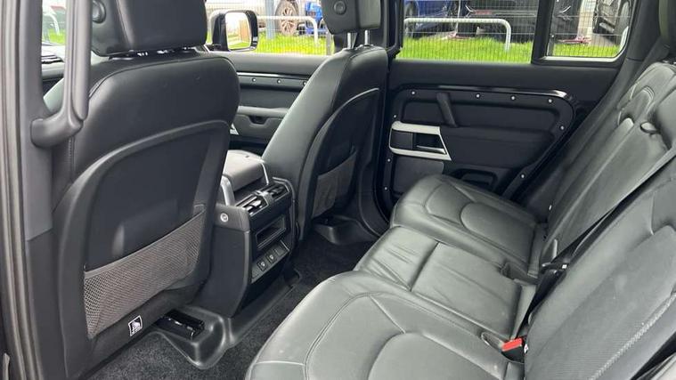 Online pack with data plan - Defender, XS Edition exterior pack - Defender, Alarm, Immobiliser, Intrusion sensor, Keyless entry, Locking wheel nuts, DAB Radio (Digital Audio Broadcasting), Meridian 400w sound audio system with 11 speakers and subwoofer, Pivi pro connected, 5 x 3 point seatbelts, ABS, Brake hold function, CBC - (Cornering brake control), Cross car beam in light grey powder coat brushed finish, Customer configurable autolock, DSC - Dynamic Stability Control, EBD - Electronic brakeforce distribution, Electric parking brake (EPB), Emergency brake assist, Emergency braking, ESP + traction control, Front airbags with passenger seat occupant detector, HDC - Hill descent control, Hill launch assist, Low traction launch, Power operated child locks, Remote for (e-Call, Optimised assistance call, InControl app, Climate, beep and flash and door), RSC - Roll stability control, Seat belt reminder, TPMS (Tyre pressure monitoring system), Automatic headlight levelling, Automatic headlights, Body coloured roof, Centre high mounted stop light, ClearSight interior rear view mirror, Electric heated/power fold door mirrors with approach lights and auto dimming driver side, Electric windows with one touch open/close and anti-trap, Follow me home lighting, Front fog lights, Heated rear window with timer, Heated windscreen, Illuminated metal tread plates with brand name script, LED tail lights, Matrix LED headlights with signature DRL, Privacy glass, Puddle lights, Rain sensing windscreen wipers, Rear fog lights, Rear side wing doors, Rear wiper, Side hinged tailgate, Signature graphic (with interior storage), Sliding panoramic roof, Trailer stability assist, 12 way heated and cooled electric memory front seats with 2 way manual headrests, 12V power socket in loadspace, 3 seat bench in 2nd row, 40:20:40 folding rear seats with centre armrest, Alpine lights, Durable rubber cabin flooring, Durable rubber loadspace flooring, Electric cabin pre conditioning, Electric reach + rake adjustable steering column, Footwell lights, Front centre console refrigerator compartment, Front passenger isofix child seat attachment, Grained Leather upholstery, Heated steering wheel, Leather gearshift, Light oyster morzine headlining, Loadspace cover, Loadspace Hook, Multifunction steering wheel, Overhead stowage for sunglasses, Premium cabin lighting, Rear headrests, Rear ISOFIX, Rear reading lights, Single front passenger seat, Standard interior, Standard leather steering wheel, Standard seat configuration, Storage glovebox, Sunvisors with illuminated vanity mirrors, Twin front cupholders with cover, 360 degree parking aid, 3D Surround Camera with 360 View, 180 Rear View, Front Traffic Detection, Forward Vehicle Guidance, Tow Hitch Assist and clear sight Ground View, Android Auto, Apple CarPlay, Assisted tailgate with soft close, Blind spot assist, Bluetooth system, Brake pad wear indicator, Clear exit monitor, Connected navigation pro, Cruise control + speed limiter, Driver condition monitor, Electric power assisted steering (EPAS), Lane keep assist, Push button start, Rear traffic monitor, Traffic sign recognition with adaptive speed limiter, Trip computer, Wade Sensing, Wireless device charging with phone signal booster, 8 speed automatic transmission, Adaptive dynamics, All wheel drive system, Twin speed transfer box,