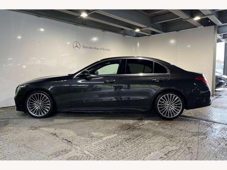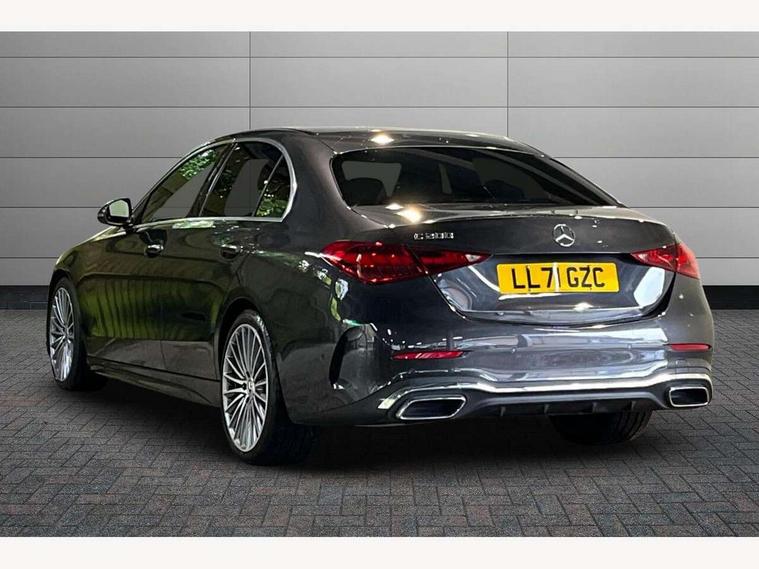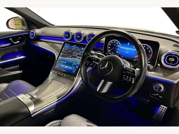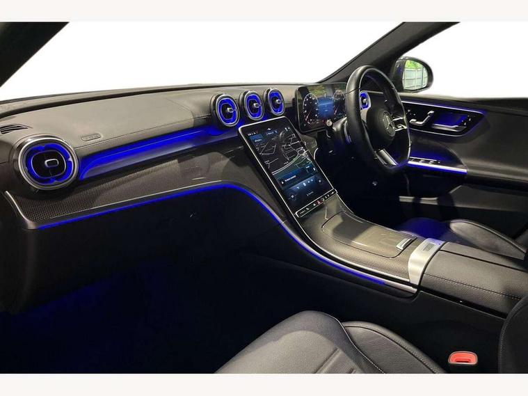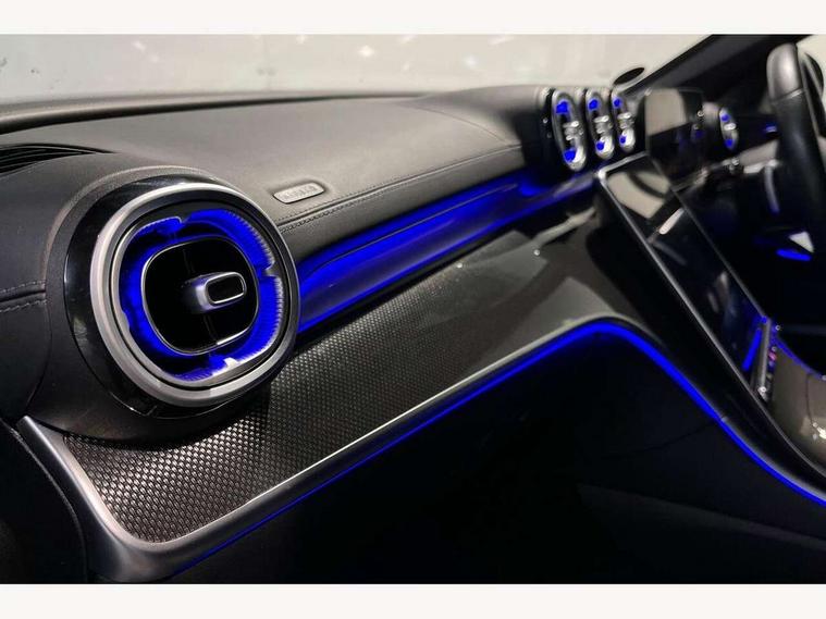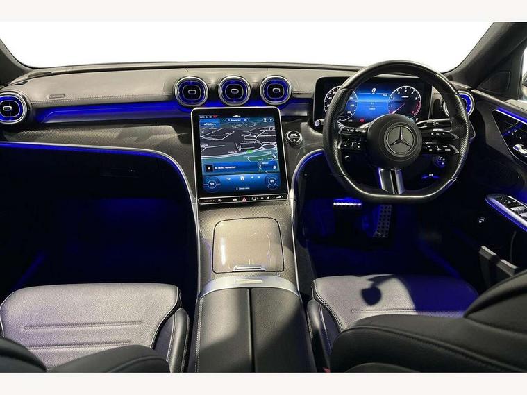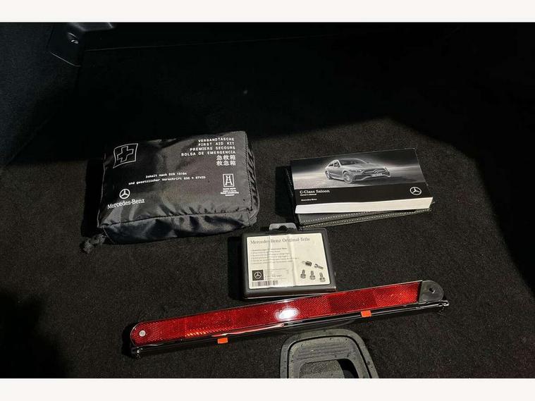 11.9" high resolution multimedia colour display, 12.3" digital instrument cluster display, Active blind spot assist, Active brake assist plus, Active lane keeping assist, Attention assist, Cruise control with speedtronic variable speed limiter, DYNAMIC SELECT with a choice of driving modes (ECO, Comfort, Sport, Sport+ and Individual), E-call, Extended MBUX functions, Finger print sensor, Fluorescent jacket for driver, MBUX augmented reality for navigation, MBUX navigation premium, MBUX voice control activated by keywords "Hey Mercedes", Mercedes connect me, Mercedes me remote services, Outside temperature gauge, Pre-installation for digital key transfer, Remote boot release, Service indicator (ASSYST), Smartphone integration, Sports direct steer speed sensitive steering, Status display for rear seat belts in instrument cluster, Wireless charging system for mobile devices, 66l fuel tank with increased capacity, 9G TRONIC 9 speed automatic transmission, Petrol Particulate Filter, Sports suspension with selective damping system and lowered by 15 mm, Sporty engine sound system, DAB Digital radio, MBUX multimedia system, Steering wheel mounted audio controls, Adaptive brake lights, Adaptive high beam assist plus, AMG body styling front apron, rear apron and side skirts, AMG front bumper with sporty air intakes and chrome elements, AMG rear bumper with high gloss chrome elements, AMG side skirts in vehicle colour, B-pillar trim in glossy black, Body coloured bumpers, Body coloured door mirrors, Chrome beltline trim, Daytime running lights, Digital light LED headlamps, Electric windows with one touch opening/closing and obstruction sensors, Electrically adjustable and heated door mirrors, Green tinted glass, LED Indicators, LED tail lights, LED third brake light, Powerdomes on bonnet, Privacy glass, Radiator diamond grille with integrated Mercedes Benz star and louvre silver with chrome pins, Radio aerial integrated into rear window, Rain sensor with automatic windscreen wiper activation, Rear boot, Rear side wing doors, Two visible exhaust pipes integrated into rear bumper, 3 spoke flattened bottom AMG multifunction steering wheel in black nappa leather with chrome inserts and perforated leather in grip area, AMG sports seats, Auto Mercedes-Benz child seat recognition sensor, Black air vents with silver chrome elements, Black floor mats with AMG lettering, Black roof liner, Door trim elements high gloss black with silver chrome surroundings and switches, Double cupholder in centre console, Electrically height/reach adjustable steering column, Folding rear seat backrest, Front and rear head restraints, Front centre armrest with storage compartment, Gearshift paddles on steering wheel, Heated front seats, Illuminated door sills with Mercedes Benz lettering, Illuminated glove compartment stowage, Interior lighting - 64 colour Ambient lighting, Leather upholstery, Overhead control unit in high gloss black, Rear top tether child seat ISOFIX attachment, Single front passenger seat, Sports pedals with stainless steel surfaces and rubber studs, Sunvisors with illuminated vanity mirrors, THERMATIC 2 zone automatic climate control, Interior lighting package - C Class, Memory package - C Class, Mirror pack - C Class, Parking package with 360 degree camera - C Class, Seat comfort pack - C Class, Stowage space pack - C Class, USB package - C Class, 3 rear 3 point seatbelts, Active bonnet pedestrian safety measure which detects an impact and raises bonnet, Adaptive brake system with HOLD function and brake drying in the wet, Anti-lock braking system (ABS), Black seat belts, Brake calipers with Mercedes-Benz lettering + perforated front brake discs, Child proof door locks, Drivers knee airbag, Drivers pelvis airbag, Dual stage driver/passenger airbags, Electric parking brake, Electronic Stability Programme (ESP), Front centre airbag between driver and front passenger seats, Front side airbags, Larger brake discs on front axle, Rear passenger airbag, Rear seatbelt warning indicator, Sports braking system with perforated front disc brakes, Tyre pressure monitoring system, Warning triangle and first aid kit, Window airbags, Central locking with interior switch, automatic locking and crash sensor with emergency opening function, Chrome surround electric key, Keyless Go comfort access, Urban guard vehicle protection - Thatcham Category 1 consisting of breakin, anti-theft alarm system (ATA), interior monitoring and tow away protection, Artico man-made leather dashboard with contrast stitching, Centre console trim in metal weave, 19" AMG multi spoke design alloy wheels painted in black with high sheen finish, Summer tyres, TIREFIT with tyre inflation compressor,