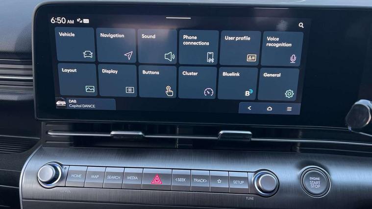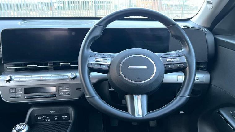 12.3" touchscreen centre console display satellite navigation with bluelink, live services and mapcare, Bluetooth connectivity with voice recognition, Cruise control, Digital clock, Driver status monitor (DSM), Driver supervision instrument cluster with 12.3" LCD display, eCall emergency call system, Feature on demand - Enabled, Forward collision avoidance assist (FCA 1.5) - Car, pededstrian, cycle and junction turning, Front parking sensor, Intelligent speed limit assist, Lane follow assist, Lane keep assist, Leading vehicle departure alert (LVDA), Parking system with rear camera and guidance system, PAS, Rear parking sensor, Roadside assistance, Smartphone integration compatible with Apple CarPlay and Android Auto, Windscreen washer fluid sensor and warning indicator, 2 front USB C and 2 rear USB C charging points, DAB Digital radio, Speakers - Front, rear and tweeters, Steering wheel audio, phone and cruise controls, Auto dimming rear view mirror, Automatic headlights with dusk sensor, Automatic windscreen wipers with rain sensor, Black painted wheel arch inserts, Body colour bumpers, Body colour exterior door handles, Body coloured door mirrors, Door mirror LED indicator lights, Electric front windows with anti-trap mechanism and one touch control, Electric rear windows, Electrically adjustable and heated door mirrors, Full LED MFR headlights, LED daytime running lights, LED upper and lower rear lights, Power folding door mirrors, Rear roof spoiler with integrated LED brake light, Rear side wing doors, Rear skid plate - silver, Rear wiper, Roof rails, Tinted glass in front and rear doors, Windscreen auto defog function, 12V power outlet in front console, 2 zone climate control, 3 seat bench in 2nd row, 60/40 split folding rear seat, Adjustable head restraints, Cloth upholstery, Driver and passenger front seat pockets, Driver's seat lumbar support, Driver/passenger manual seat height adjustment, Driver/passenger sunvisors and illuminated vanity mirrors, Floor mats, Height/reach adjustable steering column, Isofix rear child seat fastenings, Leather wrapped steering wheel and gear knob, LED centre interior light, LED front interior light, Luggage compartment LED lighting, Luggage shelf, Metal paint effect interior door handles, Parcel shelf, Rear centre armrest, Rear centre console with air vents, Single front passenger seat, Vertical adjustment rear head restraints, Trailer wiring package - Kona, Airbag - front, front side, curtain and centre front airbag, Anti-lock brake system (ABS), Childproof rear door locks, Downhill brake control, EBD + Brake Assist, Electric parking brake, Electronic stability control, Fasten seatbelt reminder, Fixed 3 point for second row centre passenger seatbelt, Front seatbelt pretensioners, Height adjustable front seatbelts, Hill start assist control (HAC), Passenger airbag deactivate switch, Rear seat alert, Traction control, Tyre pressure monitoring system, Alarm/immobiliser, Deadlocks, Folding key, Locking wheel nuts, Remote central locking, Smart key with keyless entry and engine start/stop button, Five year annual vehicle health checks, 17" Alloy wheels, Temporary mobility kit (TMK),