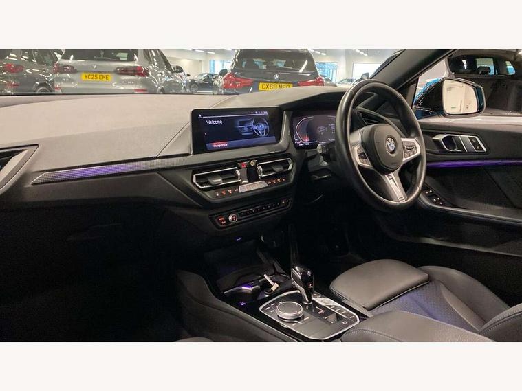 Active guard plus, Attentiveness assist, Auto start-stop, BMW Intelligent Personal Assistant, BMW Live Cockpit Professional with 10.25" high resolution instrument and control display, BMW Online services, BMW operating system with 7.0 mid interface, BMW Teleservices, Check Control warning system for monitoring of lights and door/luggage compartment open warning, Cruise control with braking function, iDrive controller with 7 short cut favourite buttons on centre console, Integrated navigation data with map data via USB +features such as 3D landmarks and micro city models, Integrated owners handbook, Intelligent voice assistant, Lane departure warning system, M Sports steering, On board computer - average speed+fuel consumption, service interval, clock/date, odometer/trip meter, outside temperature display and ice warning, Optimum shift indicator, Personal Profile, Pull away assistant, Speed limiting function, Aluminium lightweight construction, Balancer shaft, Double VANOS, Drive performance control with ECO PRO comfort + sport mode, Dual clutch automatic transmission, Electronic differential lock, High precision injection, M Sport suspension with stiffer spring/damper set-up and vehicle lowered by 10mm + twin tube gasfilled shock absorbers and Anti roll bars, Performance Control, Petrol Particulate Filter, VALVETRONIC engine management, 2x USB Type C ports (for charging and data transfer), 4G LTE Connectivity with hard wied 4G network sim card, DAB digital radio, MP3 players and RDS double tuner, Auto wipers, Automatic headlight beam throw control, Automatically dimming rear view mirror, Body colour door handles, Body colour mirror caps, Chrome 'M' logo side designation, Chrome exhaust single tailpipe, round, Direction indicator side lights integrated exterior mirrors, Electric windows - front and rear, with open/close fingertip control and trap release, Exterior mirrors - electrically folding with anti-dazzle, Fading support, Follow me home headlights, Front and rear bumper system with replaceable deformation elements, Front door sill finishers in black plastic with M designation in metallic look, Heated, electrically adjustable exterior mirror aspheric on driver side, convex on passenger side, High gloss black B pillar finish, High gloss shadow line exterior trim, High level third brake light, LED daytime running lights, LED front fog lights, LED Headlights, Lightweight engineering, Model designation on right side of tailgate, Preparation for high beam assistant, Rain sensor with automatic headlight activation, Rear boot, Rear fog lights, Rear side wing doors, Reversing light in rear light cluster, Welcome lighting, 12V power socket in centre console, 2 cupholders in front centre console, 3 rear seat head restraints, 3 rear seats, 3 spoke M sports design leather steering wheel finished in nappa leather with specific M badge, Anthracite finished floor mats with contrasting surround, Anthracite headlining, Automatic two zone climate control air conditioning, Child seat ISOFIX attachment for two outer rear seats and front passenger seat with anchorage points, Conditioned based service, Driver and front passenger seat heating, Front and rear door pockets including bottle trays, Front and rear side armrests integrated into door trim, Front armrest foldable with integrated storage compartment, Front centre interior light over interior mirror and rear centre automatic interior light when door is opened/ignition switched off or via remote key, Front head restraints, Front passenger seat, Front sports seats with electric side bolster adjustment, Glove compartment, Glovebox with light, Luggage compartment lighting, Manually adjustment steering wheel column, Multi-function controls for steering wheel, Sun visors with vanity mirrors and insert tab, Through loading system with 40/20/40 split folding rear seat, Two lashing eyes, Additional interior lighting pack - 2 Series Gran Coupe, Extended storage pack - 2 Series Gran Coupe, M Sport exterior styling aerodynamics pack - 2 Series Gran Coupe, 2 tone horn, Airbag - Front driver and passenger, front and rear head, front side, curtain head protection, manual deactivation of front passenger airbag possible, Anti lock braking system (ABS) with cornering brake control, BMW emergency call, Brake drying, Braking readiness, City braking function, Crash sensor activating of airbags, Unlocking doors, hazard warning lights, interior light, safety battery terminal, Dynamic stability control + (DSC+), Dynamic Traction Control - DTC, Electrically operated hand brake, Rear brake discs, Rear child proof door locks, Seat belt security check for driver and front passenger, Seatbelt warning, Side impact protection, Three point seat belts on all seats including front belt stopper, pyrotechnic belt tensioners and belt force limiters, Trailer stability control, Tyre pressure monitoring system, Ventilated front disc brakes, Warning triangle and first aid kit, Central locking switch for all doors, fuel filler cap and luggage compartment, Deadlocking function system to all doors, Drive away locking system on all doors and luggage compartment, Locking wheel bolts, Start/Stop button (illuminated) in centre console with keyless engine start and Auto Start-Stop deactivation button, Thatcham Cat.1 alarm and immobiliser, Two remote control key with integrated key - open/close doors/fuel flap/tailgate +1 button for unlock compartment with M design high gloss black inlay, Contrast stitching on instrument panel, 18" Burnished M double spoke bi-colour alloy wheels finished in orbit grey - style 819M, Reduced rolling resistance tyres,