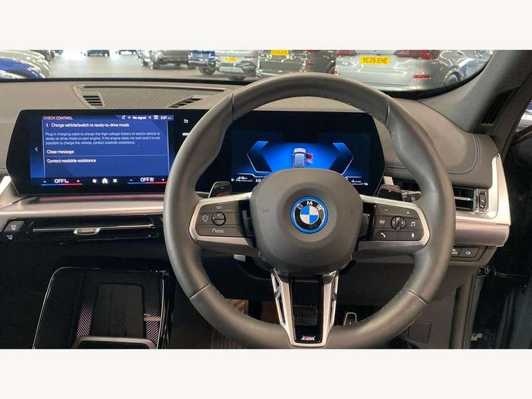 Attentiveness assist, Automatic start/stop function, BMW Live Cockpit Plus with 10.25" instrument cluster and 10.7" display, BMW Operating system 9 with BMW Maps, real-time traffic information, in-car experiences, remote services and smartphone integration, BMW Teleservices, Brake pad wear indicator, Condition based service, Connected eDrive Services, Drive off assistant, Electrically opening/closing tailgate with opening/closing with remote control and contactless opening and closing, iDrive controller, Language version English, My Modes, Parking Assistant with Reversing Assistant, active PDC, Lateral Parking Aid, Rear View Camera and Park Distance Control, Personal Profile - automatic lock when driving away selectable, Servotronic PAS, Tyre puncture warning system, Widescreen display, 11 kW AC charging power, eDrive exterior sound, EU6 emissions management, Fast charging cable professional mode 3 for public charging, M Adaptive suspension, Performance Control, Petrol Particulate Filter, Steptronic transmission with double clutch and gear shift paddles, xDrive intelligent four wheel drive system, BMW Personal eSim, DAB Digital radio, Badge on engine compartment lid and tailgate, Body colour door mirrors, Dynamic brake lights, Electric adjustable heated door mirrors, Electric windows - front and rear, with open/close fingertip control, anti-trap facility and comfort closing, Folding door handles integrated flush with surface, Follow me home headlights, Front and rear bumper panel with M specific design, in body colour with inserts in black high gloss, Front door exit lights, Heated rear window, High gloss shadowline, Invisible exhaust tailpipe, Key with M identification, LED 3rd brake light integrated in rear spoiler, LED daytime running lights, LED number plate light, M identification on the sides, M roof rails high gloss shadow line, M specific radiator grille in satinated aluminium, Matt black roof strips, Model inscription on right tailgate, Rain sensor including auto headlights activation, Rear side wing doors, Rear wiper, Sill cover in body colour, Trailer stabilisation logic, Windscreen washer nozzle for rear view camera, Windscreen wipers front with heated washer nozzles, 12V - Power sockets with front centre console and luggage compartment, 2 bag hooks in luggage compartment, 2 cup holders in front, 2 x USB Type C ports for charging in front centre console + 1 x USB Type C ports for charging in rear centre console, 3 rear headrests, 3 seat bench in 2nd row, 3 upper retaining strap clips integrated into rear panels of seat backrests, 4 grab handles, 40:20:40 split folding rear seats, Ambient interior lighting, Anthracite headlining, Anthracite Velour front and rear floormats, Bottle trays in all doors, Child seat ISOFIX attachment for two outer rear seats and front passenger seat with anchorage points, Clothes hook rear, Driver and front passenger heated seats, Dual zone automatic air conditioning, Front and rear door pockets, Front and rear footwell lighting, Front centre console storage compartment, Front/rear adjustable head restraints, Glove compartment, Interior door handle recess light on all doors, Light on right in luggage compartment, M sport leather steering wheel, Manual steering column height and depth adjustment, Middle centre console storage compartment, One piece parcel shelf opens together with tailgate and removable, Rear armrest in door trim panel, Single front passenger seat, Sport leather multifunction steering wheel with thumbrests and operation of instrument display, audio, telephone and driver assistance, Storage compartment net in left side trim panel, Storage compartment with folding cover under centre console armrest cushion, Storage tray in right side trim panel, Tilt adjustment incl. cargo function of 2nd row of seats, Vanity mirror lights, ABS/EBD, Automatic hold function, Automatic Stability Control (ASC), BMW emergency call, Braking readiness, Cornering brake control (CBC), Crash Sensor - activates hazard/interior lighting + unlocks doors, Driver/Front Passenger airbags, Driver/front passenger side airbags, Dry braking, Dynamic brake control, Dynamic stability control + (DSC+), Electromechanical parking brake, Energy recovery system, First aid kit, Front and rear brake discs, Front and rear head airbags, Front passenger airbag deactivation, Integrated brake system, PC iBrake PostCrash approach control warning with light braking function, Rear door child safety locks, Three point seat belts in all seats, Tyre pressure monitor, Warning triangle, Alarm system with tilt sensor, monitoring doors, bonnet interior and tailgate, Closing system with central locking, Locking wheel bolts, Luxury instrument panel, Tyre repair kit plus,
