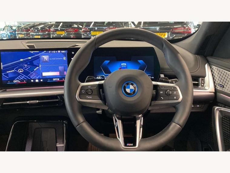 Attentiveness assist, Automatic start/stop function, BMW Live Cockpit Plus with 10.25" instrument cluster and 10.7" display, BMW Operating system 9 with BMW Maps, real-time traffic information, in-car experiences, remote services and smartphone integration, BMW Teleservices, Brake pad wear indicator, Condition based service, Connected eDrive Services, Drive off assistant, Electrically opening/closing tailgate with opening/closing with remote control and contactless opening and closing, iDrive controller, Language version English, My Modes, Parking Assistant with Reversing Assistant, active PDC, Lateral Parking Aid, Rear View Camera and Park Distance Control, Personal Profile - automatic lock when driving away selectable, Servotronic PAS, Tyre puncture warning system, Widescreen display, 11 kW AC charging power, eDrive exterior sound, EU6 emissions management, Fast charging cable professional mode 3 for public charging, M Adaptive suspension, Performance Control, Petrol Particulate Filter, Steptronic transmission with double clutch and gear shift paddles, xDrive intelligent four wheel drive system, BMW Personal eSim, DAB Digital radio, Badge on engine compartment lid and tailgate, Body colour door mirrors, Dynamic brake lights, Electric adjustable heated door mirrors, Electric windows - front and rear, with open/close fingertip control, anti-trap facility and comfort closing, Folding door handles integrated flush with surface, Follow me home headlights, Front and rear bumper panel with M specific design, in body colour with inserts in black high gloss, Front door exit lights, Heated rear window, High gloss shadowline, Invisible exhaust tailpipe, Key with M identification, LED 3rd brake light integrated in rear spoiler, LED daytime running lights, LED number plate light, M identification on the sides, M roof rails high gloss shadow line, M specific radiator grille in satinated aluminium, Matt black roof strips, Model inscription on right tailgate, Rain sensor including auto headlights activation, Rear side wing doors, Rear wiper, Sill cover in body colour, Trailer stabilisation logic, Windscreen washer nozzle for rear view camera, Windscreen wipers front with heated washer nozzles, 12V - Power sockets with front centre console and luggage compartment, 2 bag hooks in luggage compartment, 2 cup holders in front, 2 x USB Type C ports for charging in front centre console + 1 x USB Type C ports for charging in rear centre console, 3 rear headrests, 3 seat bench in 2nd row, 3 upper retaining strap clips integrated into rear panels of seat backrests, 4 grab handles, 40:20:40 split folding rear seats, Ambient interior lighting, Anthracite headlining, Anthracite Velour front and rear floormats, Bottle trays in all doors, Child seat ISOFIX attachment for two outer rear seats and front passenger seat with anchorage points, Clothes hook rear, Driver and front passenger heated seats, Dual zone automatic air conditioning, Front and rear door pockets, Front and rear footwell lighting, Front centre console storage compartment, Front/rear adjustable head restraints, Glove compartment, Interior door handle recess light on all doors, Light on right in luggage compartment, M sport leather steering wheel, Manual steering column height and depth adjustment, Middle centre console storage compartment, One piece parcel shelf opens together with tailgate and removable, Rear armrest in door trim panel, Single front passenger seat, Sport leather multifunction steering wheel with thumbrests and operation of instrument display, audio, telephone and driver assistance, Storage compartment net in left side trim panel, Storage compartment with folding cover under centre console armrest cushion, Storage tray in right side trim panel, Tilt adjustment incl. cargo function of 2nd row of seats, Vanity mirror lights, ABS/EBD, Automatic hold function, Automatic Stability Control (ASC), BMW emergency call, Braking readiness, Cornering brake control (CBC), Crash Sensor - activates hazard/interior lighting + unlocks doors, Driver/Front Passenger airbags, Driver/front passenger side airbags, Dry braking, Dynamic brake control, Dynamic stability control + (DSC+), Electromechanical parking brake, Energy recovery system, First aid kit, Front and rear brake discs, Front and rear head airbags, Front passenger airbag deactivation, Integrated brake system, PC iBrake PostCrash approach control warning with light braking function, Rear door child safety locks, Three point seat belts in all seats, Tyre pressure monitor, Warning triangle, Alarm system with tilt sensor, monitoring doors, bonnet interior and tailgate, Closing system with central locking, Locking wheel bolts, Luxury instrument panel, Tyre repair kit plus,
