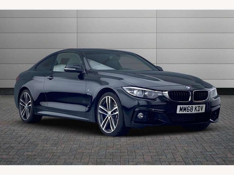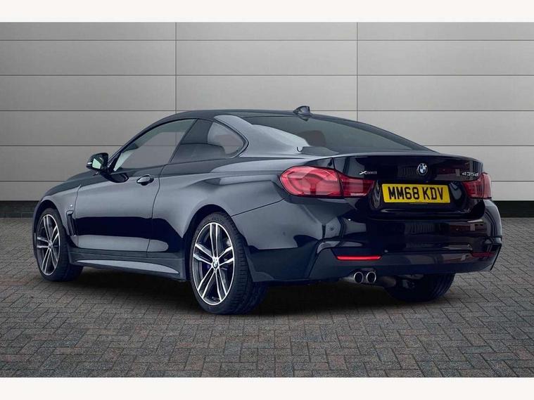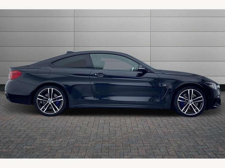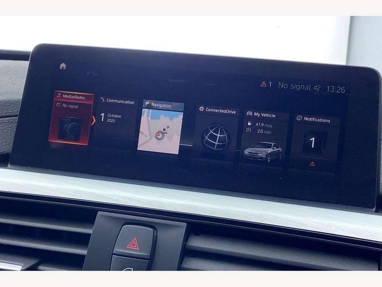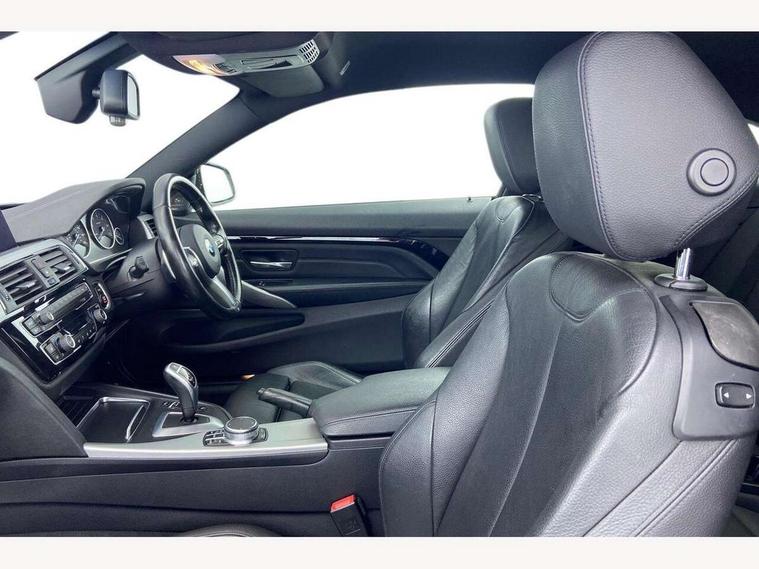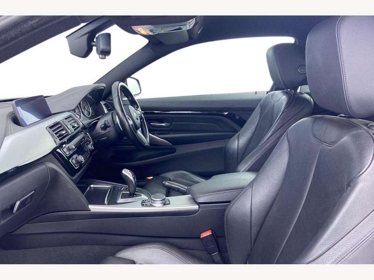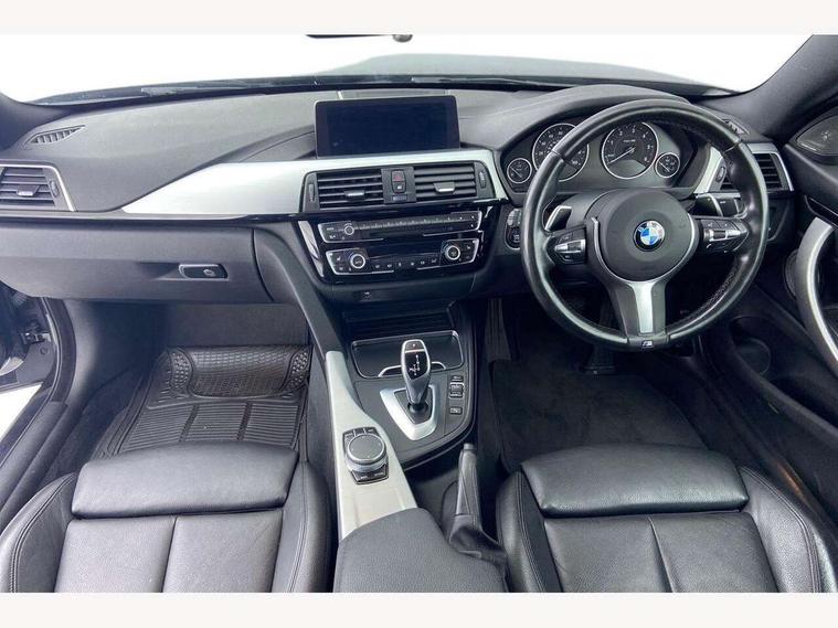 Auto start-stop, BMW Online services, BMW remote services, BMW Teleservices, Brake pad wear indicator warning light, Check Control warning system for monitoring of lights and door/luggage compartment open warning, Control display - 6.5" colour display screen, Front/rear park distance control (PDC), iDrive Controller with 8 favourite buttons, Instrument cluster with speedometer with mph readout, tachometer, fuel gauge and oil temperature gauge, Lights on warning by audio warning signal when ignition is switched off, M Sport instrument cluster, On board computer - average speed, fuel consumption, outside temp display with acoustic warning, clock/date, service interval, odometer/trip meter, Optimum shift indicator, Personal Profile - automatic lock when driving away selectable, Run flat indicator, Aluminium front suspension, Diesel particulate filter, Drive performance control with ECO PRO comfort + sport mode, Electronic differential lock, Five link rear suspension, Incorrect fuelling protection, Sport automatic transmission with steering-wheel mounted gearshift paddles and launch control, DAB tuner, Auto dimming rear view mirror, Body colour door handles, Body colour front bumper, Body colour mirror caps, Body colour roof mouldings, Chrome kidney grille with extra wide black, high gloss black vertical slats, Direction indicator, side repeaters, integrated in exterior mirrors, Door sill finishers with M designation, Dual exhaust tailpipes in left with chrome finisher, Dynamic brake lights, Electric front windows with fingertip open/close + anti-trap facility, Follow me home headlights, Front air inlet with high gloss black finish, Front and rear bumper system, Green tinted heat protection glazing, Heated windscreen washer jets, Heated, electrically adjustable exterior mirror aspheric on driver side, convex on passenger side, High gloss black rear bumper insert, High gloss shadow line, High level third brake light, LED daytime running lights, LED direction indicator lenses, LED eyebrow light, LED front fog lights, LED tail lights with 3D L-shaped LED light design, Lightweight engineering, M aerodynamic bodystyling, M designation side badges, Rain sensor including auto headlights activation, Shark fin antenna, Two speed adjustable intervals windscreen wipers, Visible VIN plate, Welcome lighting, Windscreen with grey shadeband, 12V sockets in front centre console and passenger footwell, 3 spoke leather M sport multifunction sports steering wheel, 4 grab handles, Air conditioning and radio control panel in high gloss black, Anthracite headlining, Automatic air conditioning with two zone control, Chrome centre console panel highlight, Driver and front passenger seat heating, Folding front centre armrest with storage compartment, Folding storage compartment with glasses holder + coin tray, Front and rear side armrests integrated into door trim, Front door storage with bottle holder, Front head restraints, Front sports seats with electric side bolster adjustment, Glove compartment, Integrated rear head restraints, Interior lighting, front centre over interior mirror and rear centre automatic interior light activation when door is opened, ISOFIX child seat preparation+airbag deactivation, Load lashing eyes in luggage compartment, Reach + rake adjustable steering column, Rear centre armrest with 2 cupholders, Rear coded belt buckles, Storage compartment in rear centre console, Sunvisors with vanity mirrors and ticket pocket, Toolkit located in luggage compartment, Two front cup holders with a sliding lid, Velour floor mats, Extended lighting package - 4 Series, Media pack - Professional - 4 Series M Sport, Airbag - Front driver and passenger, front and rear head, front side, curtain head protection, manual deactivation of front passenger airbag possible, Anti lock braking system (ABS) with brake assist, Automatic seat belt handover for driver and front passenger, Automatic Stability Control (ASC), Battery safety cut-off, BMW emergency call, Brake drying, Brake energy regeneration, Brake pretensioning, Cornering brake control (CBC), Crash sensor activating central locking release, hazard warning lights, Dynamic brake control, Dynamic stability control + (DSC+), Dynamic Traction Control - DTC, Front and rear ventilated brake disc, Front seatbelt force limiters, Hill start assistant, Pyrotechnically pre-tensioned front seatbelts, Seat belt security check for driver, Side impact protection, Twin horns, Tyre pressure monitoring with three level warning strategy, Variable torque distribution, Warning triangle and first aid kit, Central locking switch for all doors, fuel filler cap and luggage compartment, Electronic engine immobiliser, Remote control integrated key with blue inset, Start/stop button with Comfort Go keyless engine start and auto Start/stop deactivation button, Thatcham category 1 alarm, Reduced rolling resistance tyres, Run flat tyres,