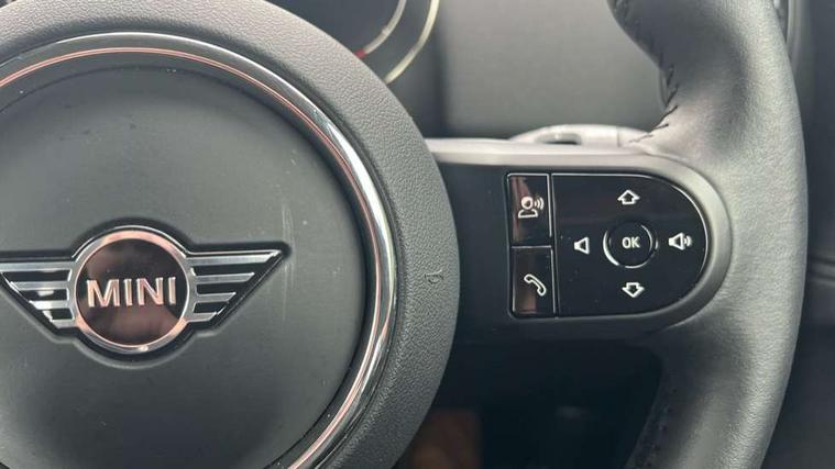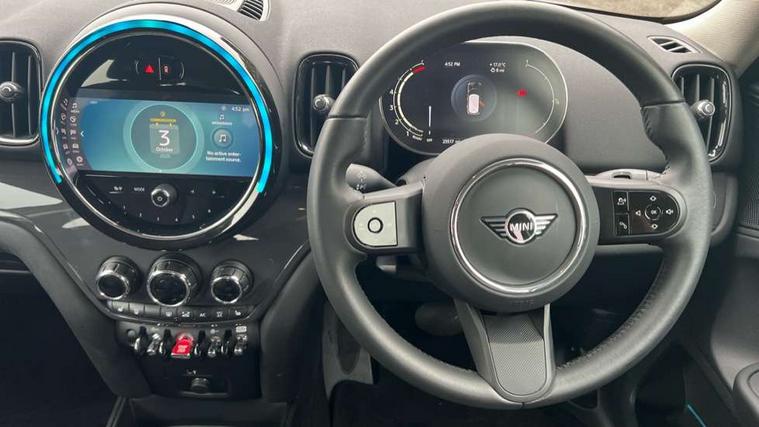 Active Guard incl speed limiting and lane departure functions with auto steering, and front collision warning with brake intervention, Automatic start/stop function with brake energy recuperation, Compatible mobile phone bluetooth with audio streaming, Cruise control with brake assist, Electro-mechanical speed dependant steering assistance, Instrument cluster, Mini E-call, On board computer, Rear parking distance control, 51 Litre fuel tank, Double Vanos system, Fully variable valve control, High precision injection, Performance Control, Steptronic transmission with double clutch, FM tuner and DAB digital radio, 3rd brake light, Body colour fuel filler cap, Day time driving lights, Door sill strips, Dynamic brake lights, Electric windows, Heated rear window, Heated windscreen washer jets, LED fog lights, LED Headlights, Left exhaust tailpipe with chrome finisher, Model logo, Model logo on Tailgate, Radiator grille, Rain sensor with auto headlights, Rear fog lights, Rear side wing doors, Rear window wiper, Side scuttle panel with integrated indicator, Split rear doors, Sun/heat protection glass, White indicator lenses, 12V socket in centre console, 3 seat bench in 2nd row, 3 spoke sport leather steering wheel + limiter function and audio controls, 360L luggage compartment capacity, 4 lashing eyes in luggage compartment, 40:20:40 split folding rear seats, Chrome interior highlights, Colour line - Carbon black, Cupholders, English handbook, Floor mats, Front headrests, Glove compartment, Headliner with grab handles and clothes hooks, Height and length steering column adjustment, Interior lighting with 12 basic colours selectable via toggle switch in roof, Isofix rear child seat preparation, Leather gearshift lever and handbrake gaiters, LED reading lights, vanity mirror lights, front foot well light and spotlight on front seats, Manual air conditioning, Mechanical seat adjustment, driver seat height adjust, forward/back and front seats backrest, Multifunction steering wheel, Passenger seat height adjuster, Rear headrests, Single front passenger seat, Storage compartments in doors, Sunvisors with vanity mirrors, Excitement pack - Countryman, Navigation pack - Countryman, 2 tone horn, 3 point seatbelts on all seats, 6 Airbags - front, side, head and seat belt tensioners, Anti-lock braking system (ABS), DSC - Dynamic Stability Control, Electronic handbrake, Front and rear disc brakes, Hill start assist, Manual rear child locks, Tyre pressure monitoring system, Alarm system with tilt sensor, monitoring doors, bonnet interior and tailgate, Auto drive away locking, Deadlocking function, Electronic vehicle immobiliser, Locking wheel bolts, Start/stop toggle with keyless go, Tool kit,